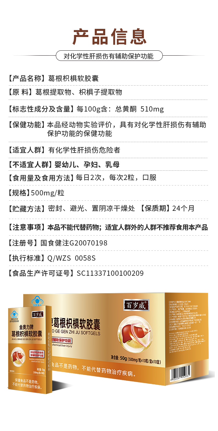 【呵护小心“肝”植物提取 蓝帽认证】恩威万百岁威葛根枳棋软胶囊 辅助保肝护肝解酒后不适 100粒