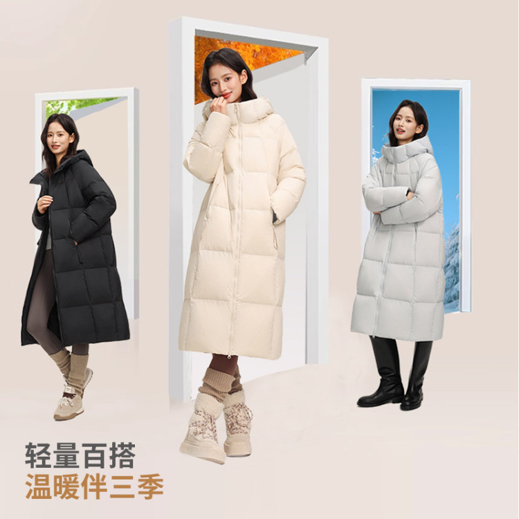 【团品】冬季泡芙羽绒服女宽松连帽长款过膝外套1052