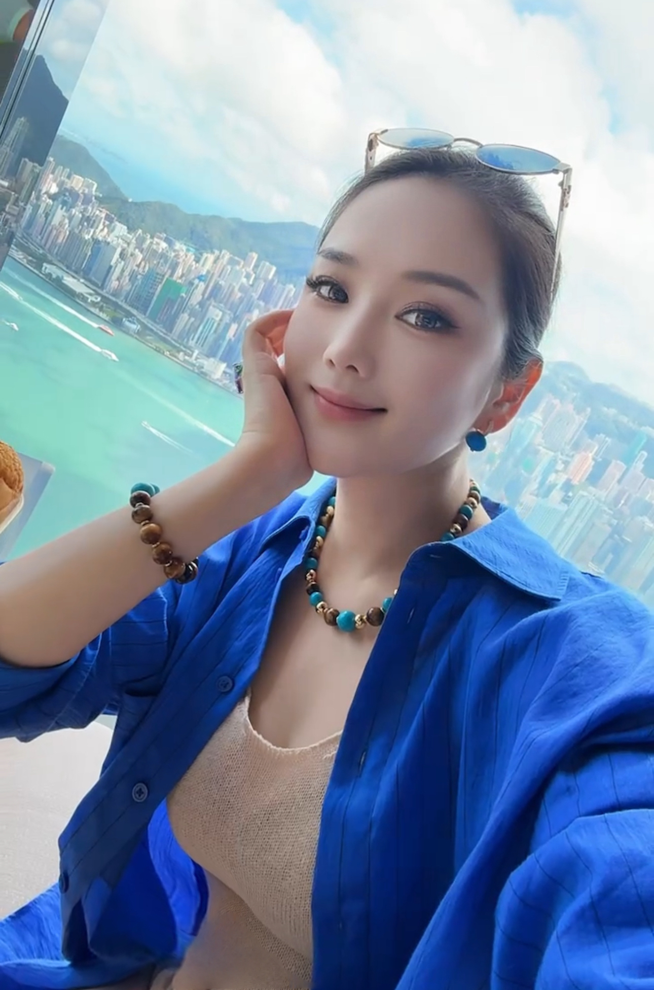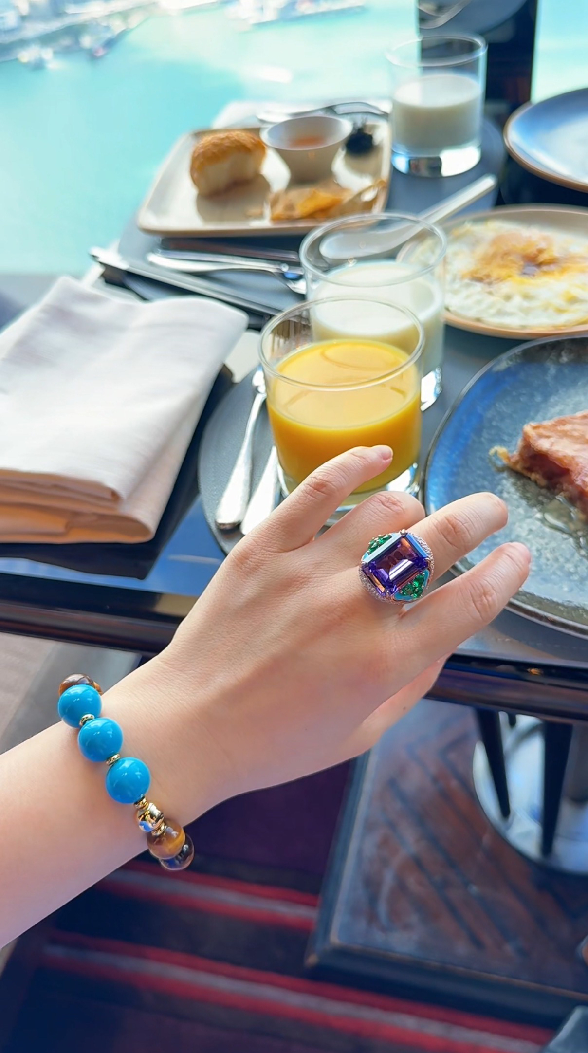 GAONAS 贵气新中式老钱蓝色珠金色耳环11948EB