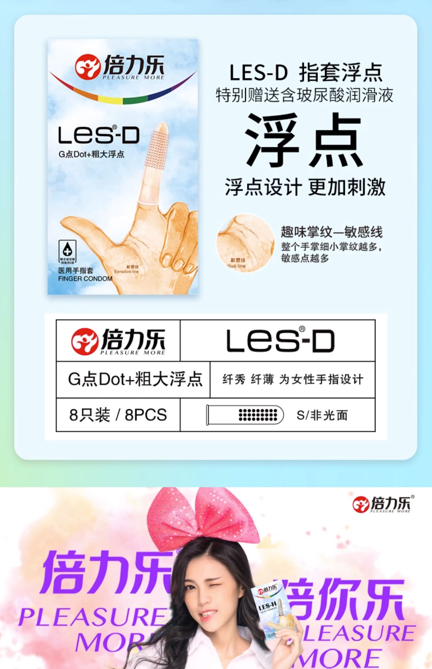 【年末亏本清仓】倍力乐LES-D G点Dot+粗大浮点女同手指套抠抠套 S/非光面型 8只装