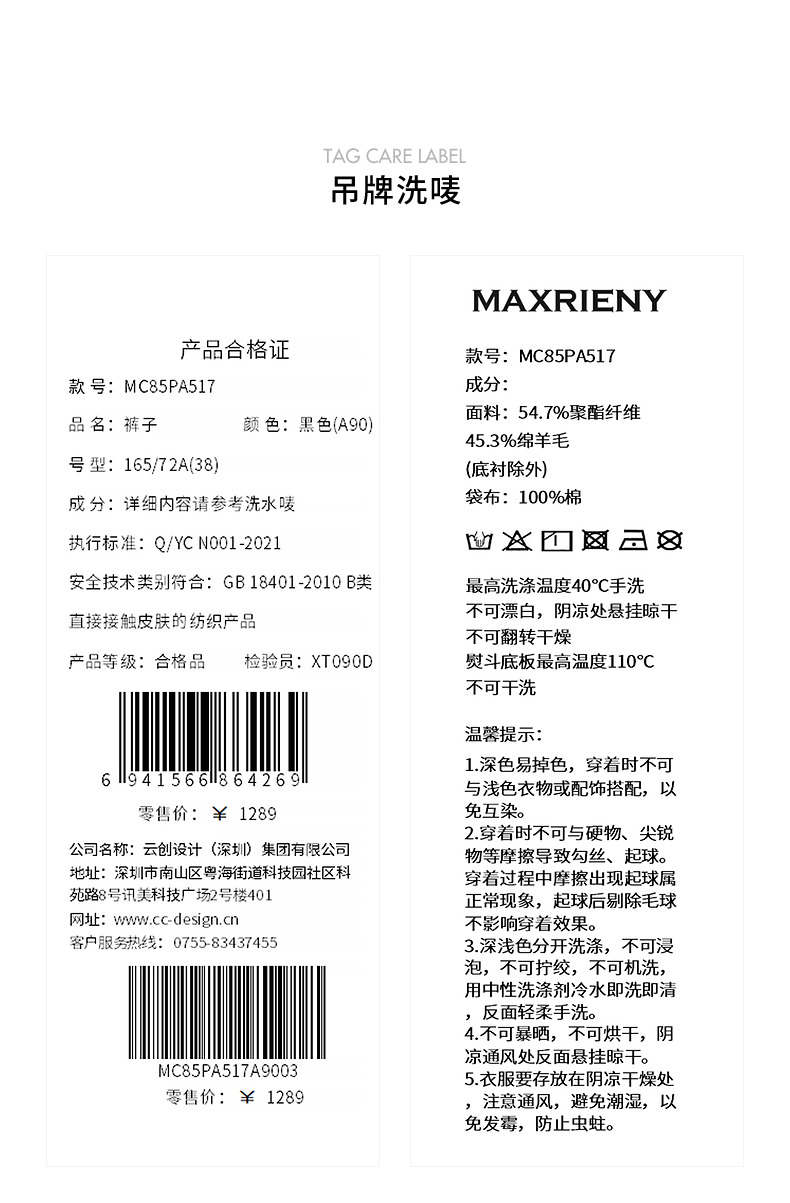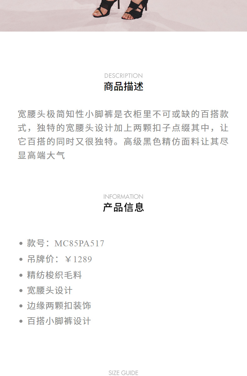 【贵雅日常-商场同款】MAXRIENY极简知性宽腰头小脚裤2024新款(货号:MC85PA517)