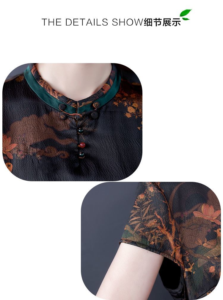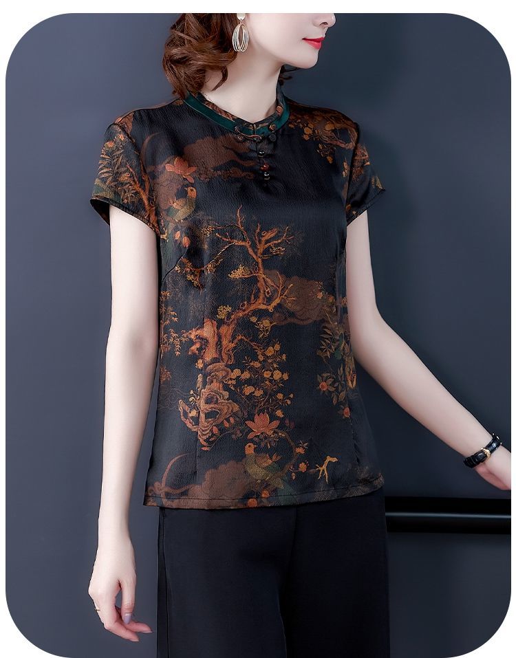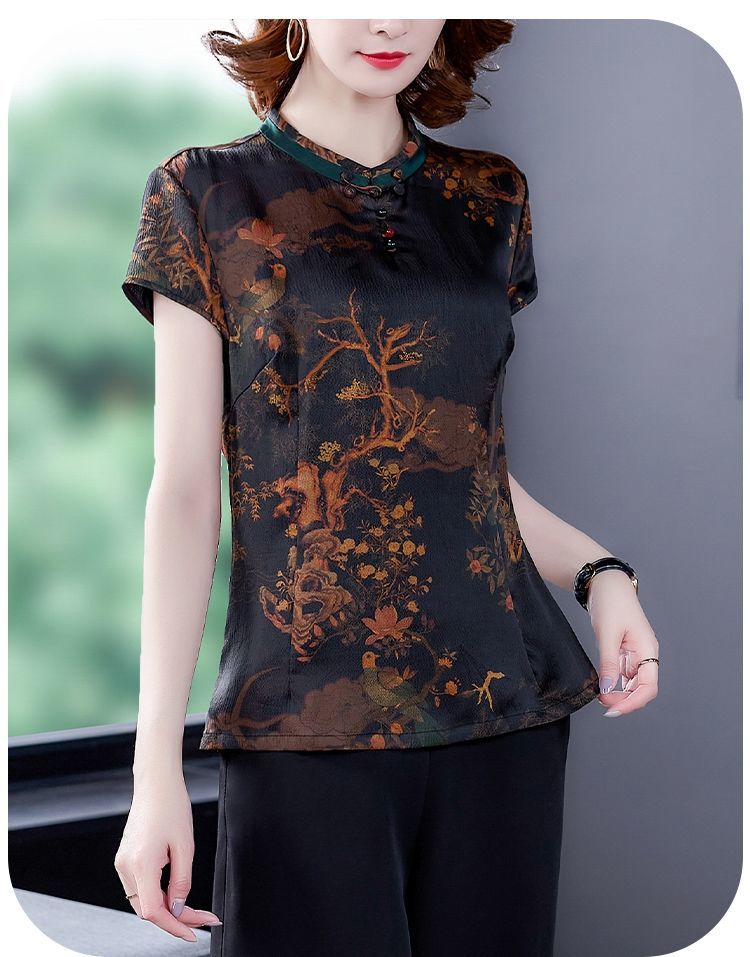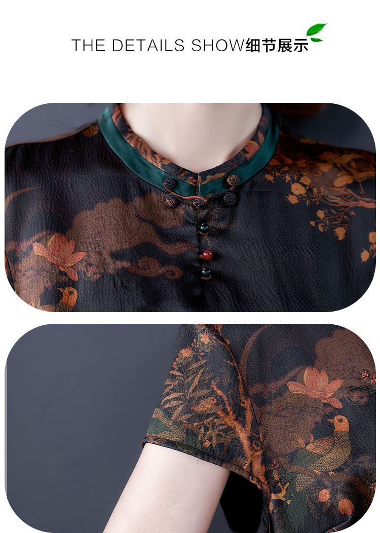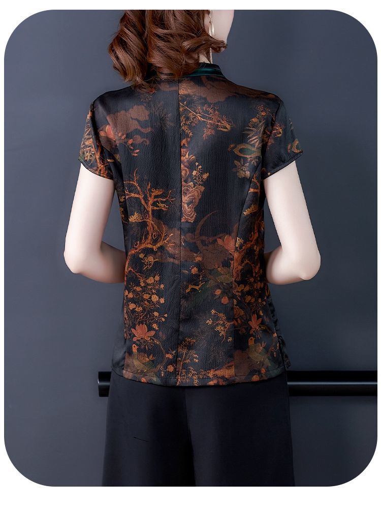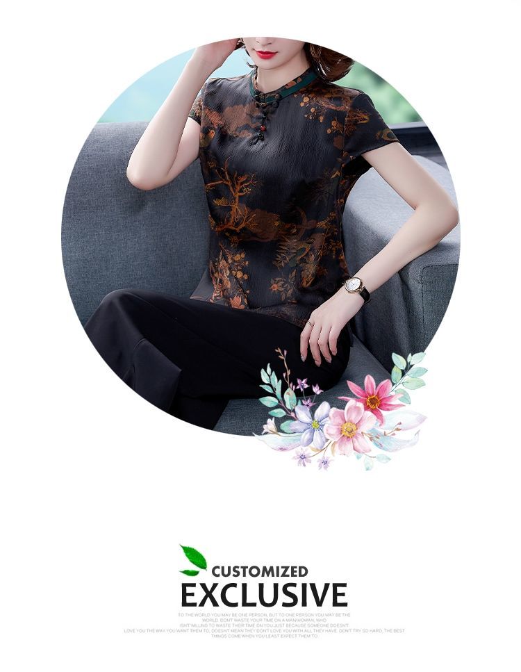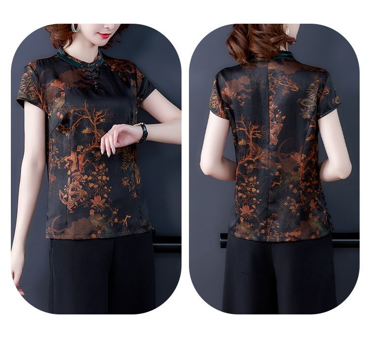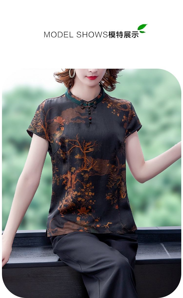 2022香云纱上衣女中式短袖中老年妈妈重磅真丝夏装桑蚕丝衬衫短款dp995