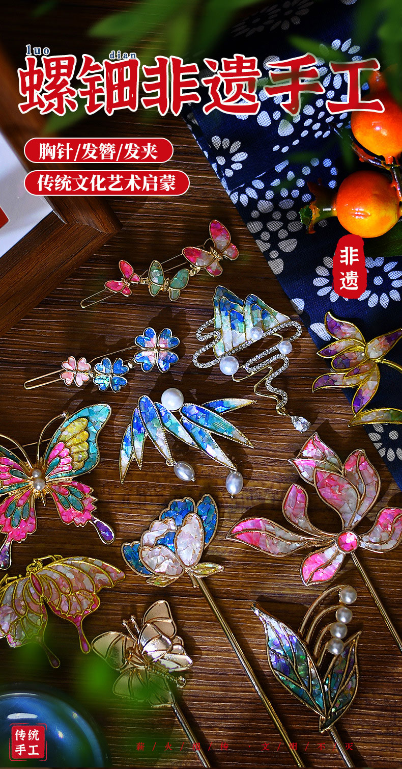 【春节不打烊】【国风非遗手工·螺钿】DIY手链胸针发簪材料包 团建手工成人亲子活动饰品配饰