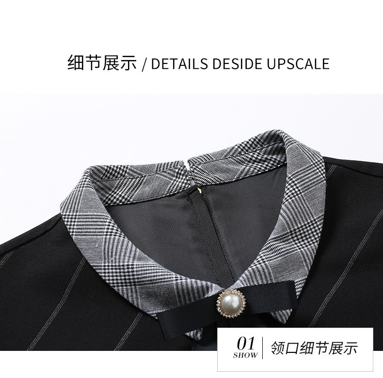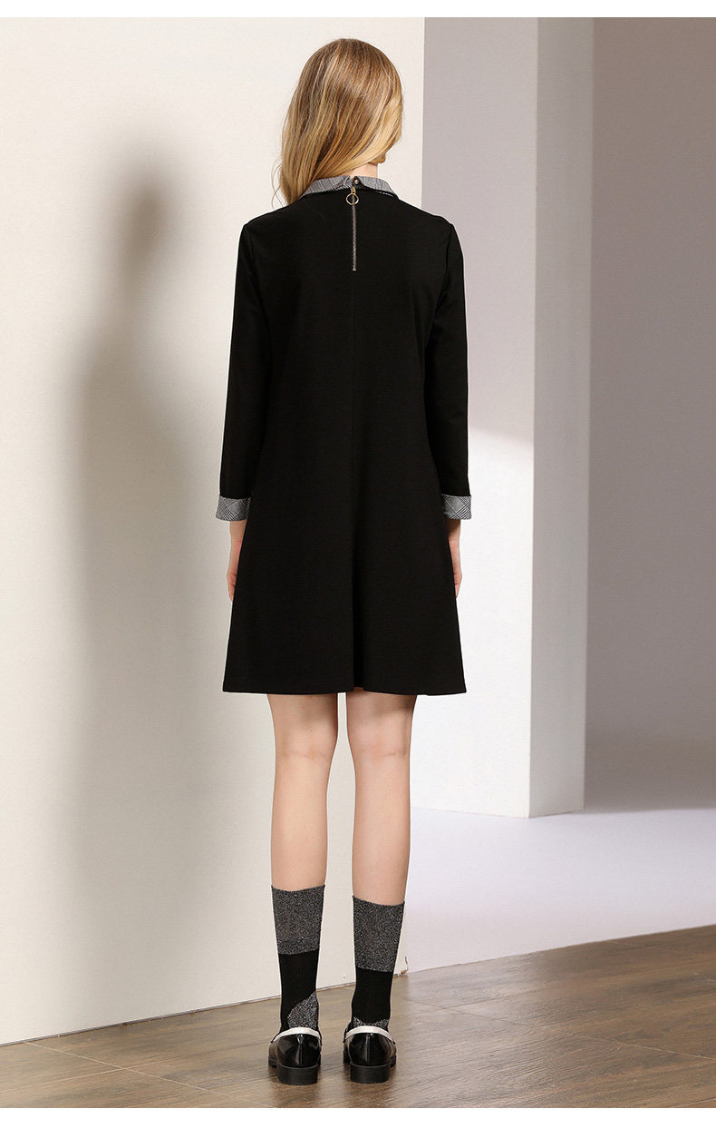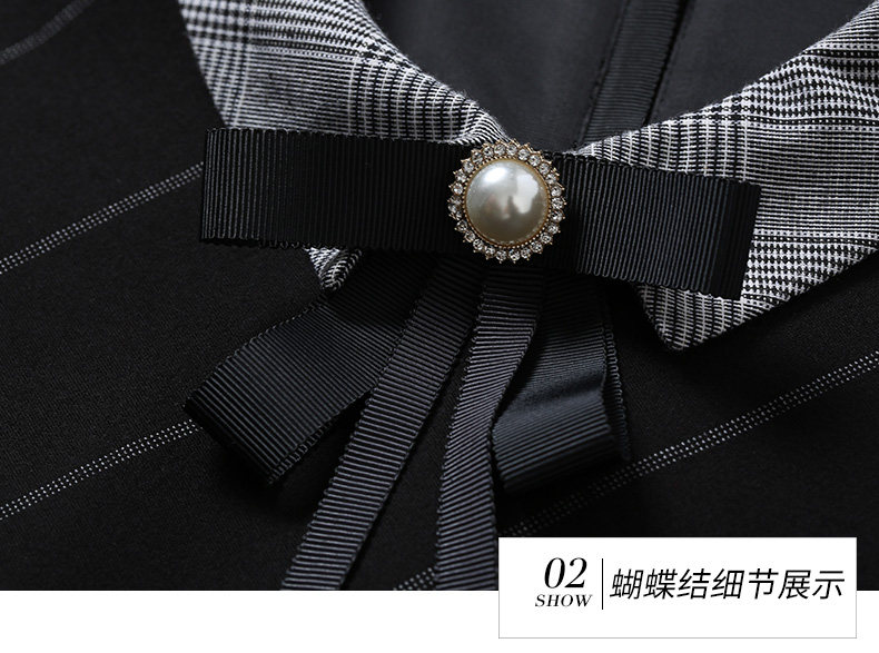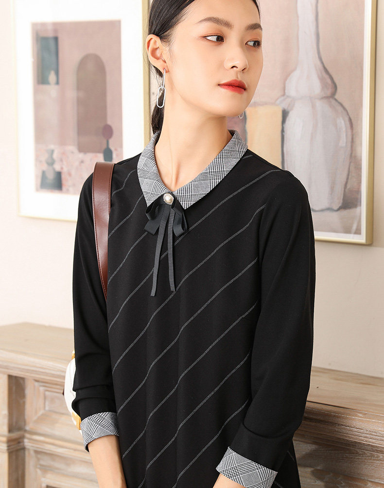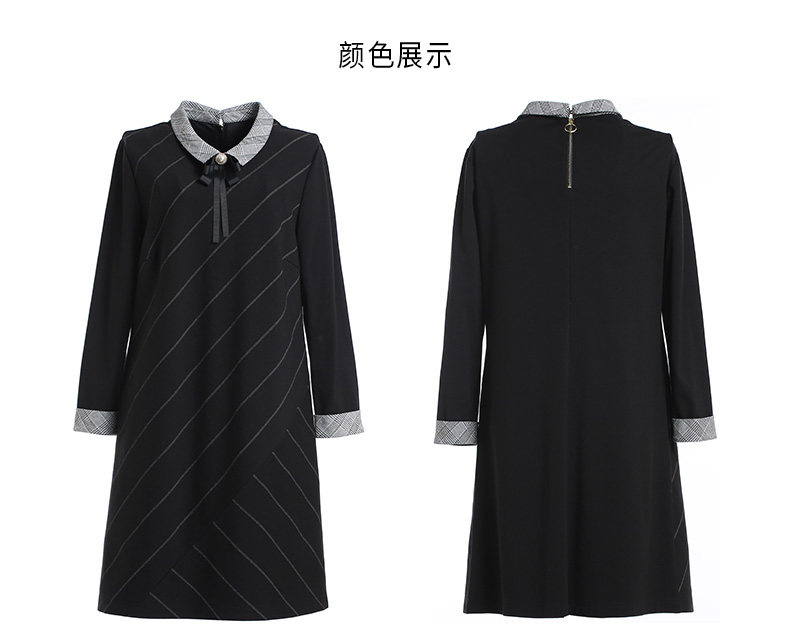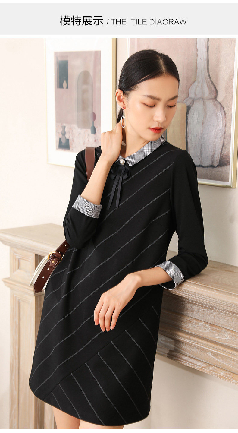 乔万尼秋装女春装宽松直筒显瘦气质黑色条纹长袖连衣裙EN3E380