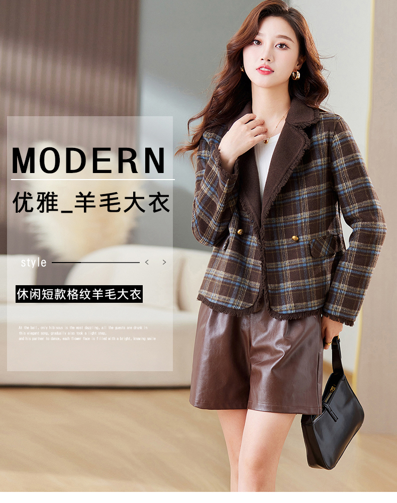 小个子短款羊毛短外套,女秋冬新款洋气西装领呢大衣HR-XXQ9939