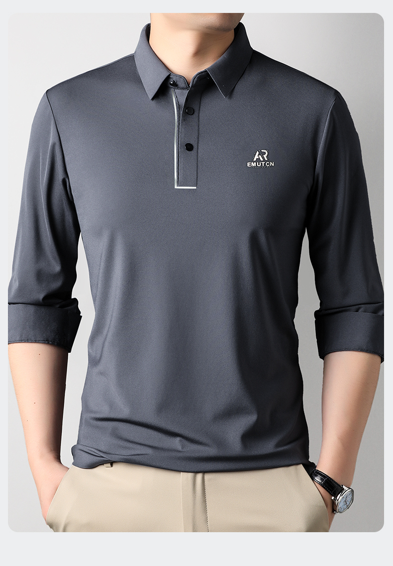 【高弹】【新款DDA】大依优型大码长袖Polo衫翻领加肥加大肥佬休闲商务宽松透气上衣打底弹力