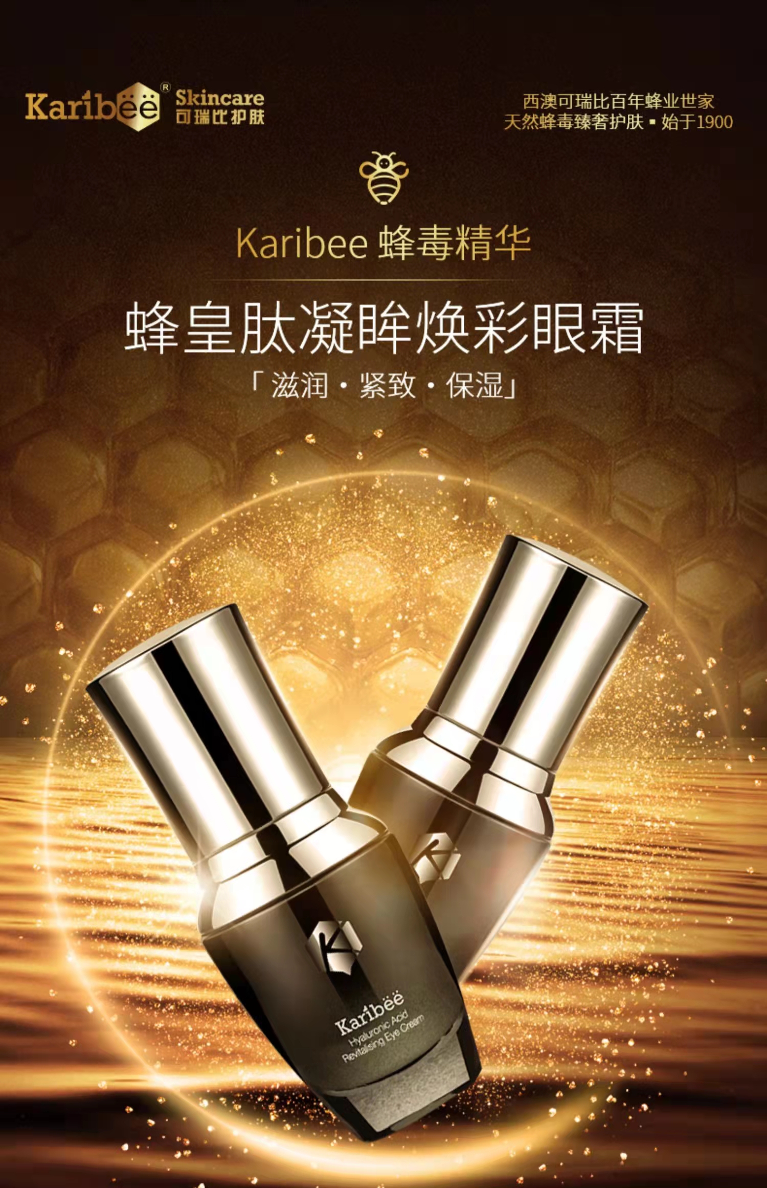Karibee可瑞比蜂毒淡化眼周细纹抗初老抗氧化提拉紧致眼霜套装
