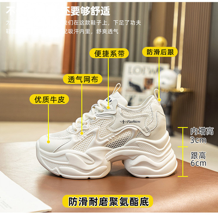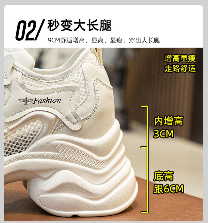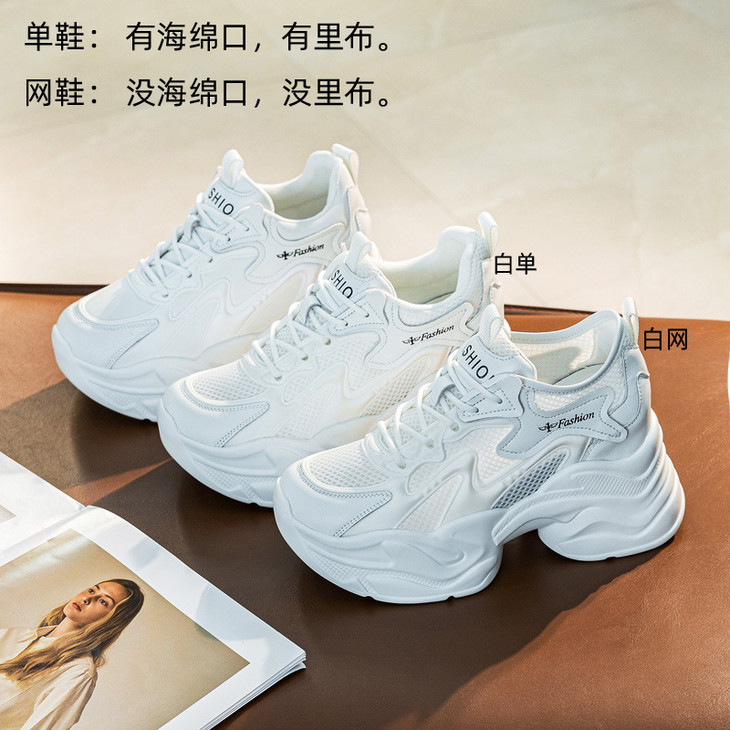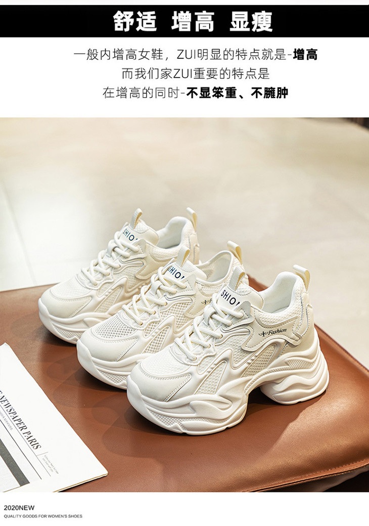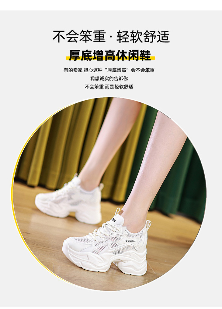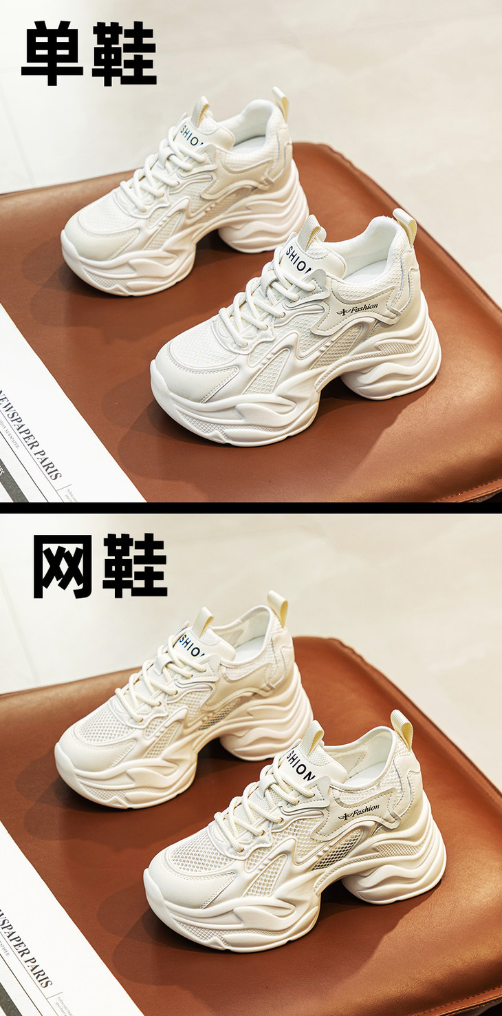 2025春季小个子内增高休闲老爹鞋小白鞋坡跟松糕厚底网鞋AM5351