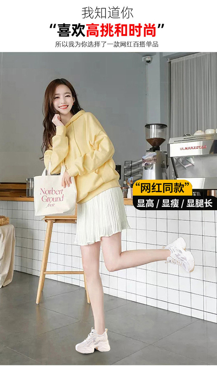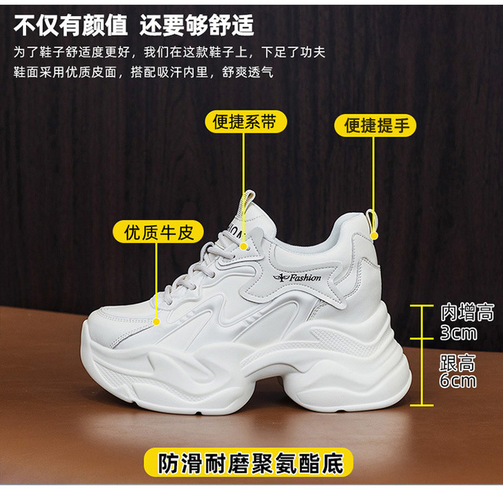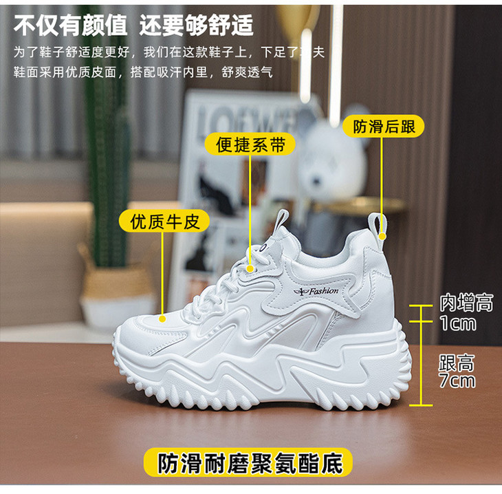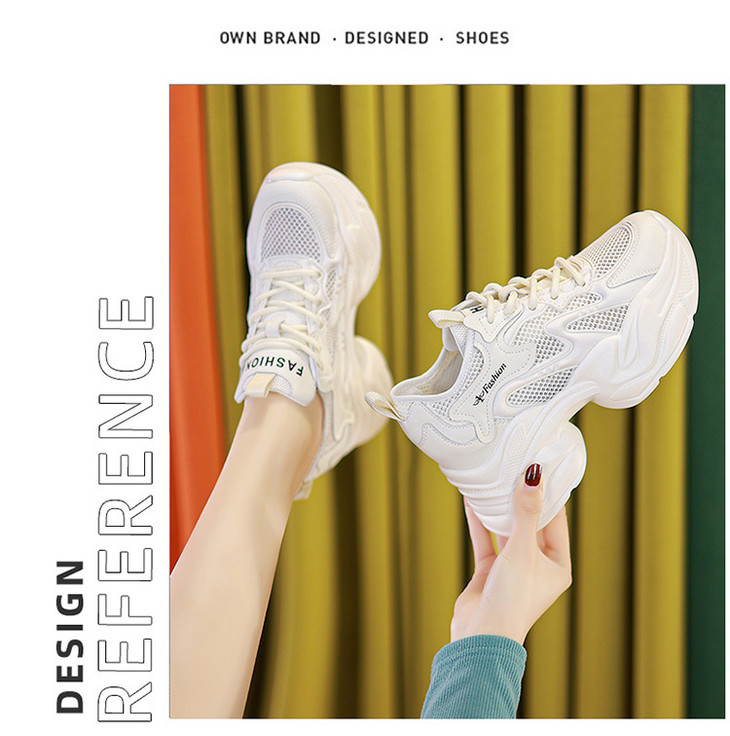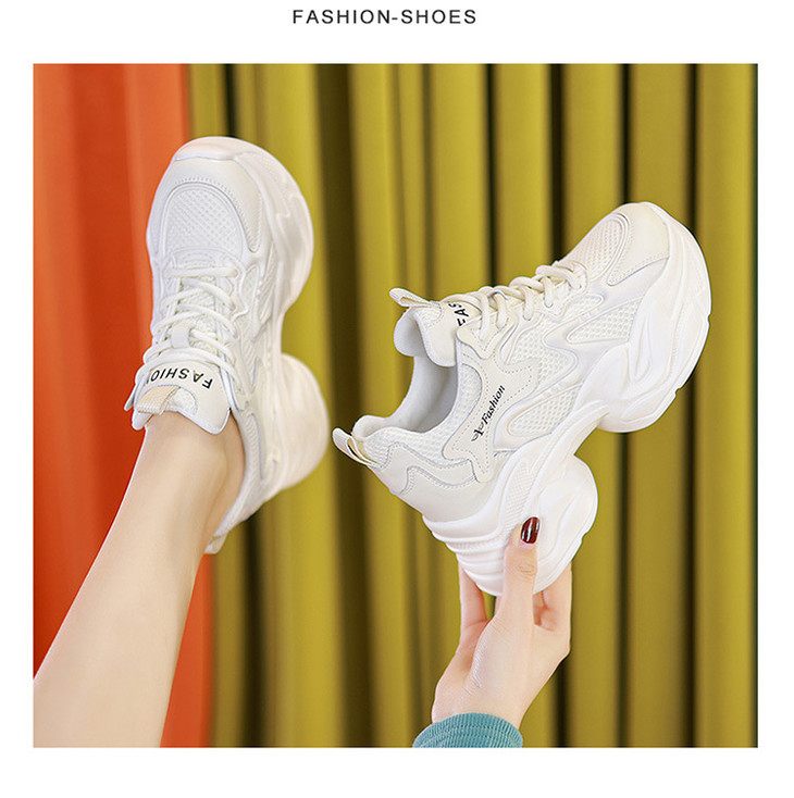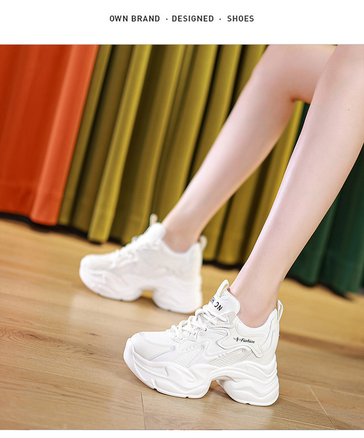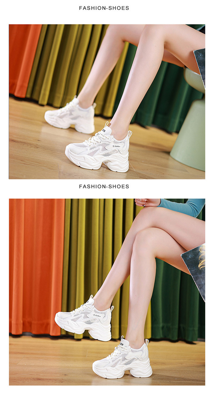 2025春季小个子内增高休闲老爹鞋小白鞋坡跟松糕厚底网鞋AM5351