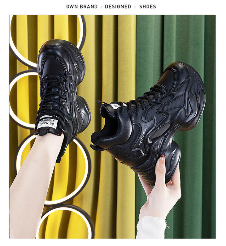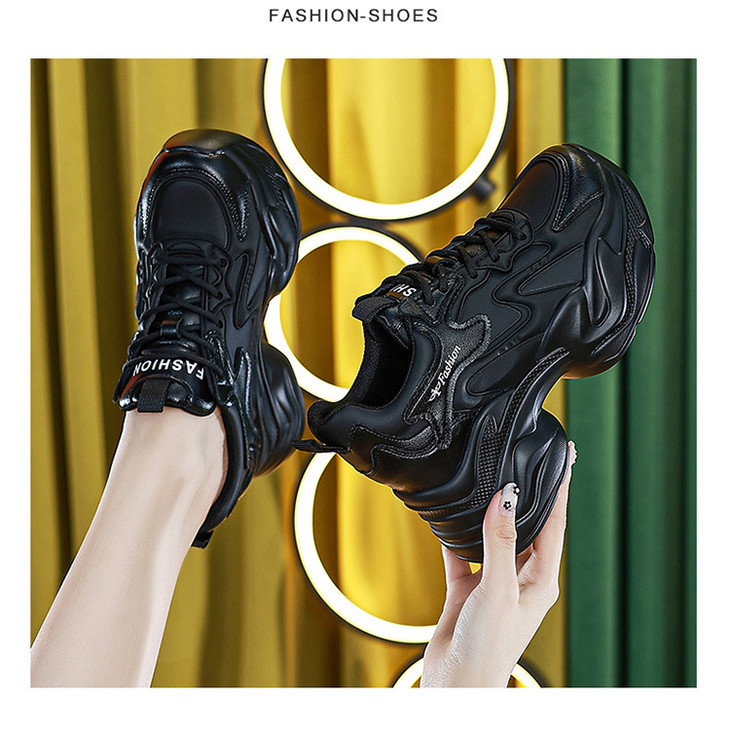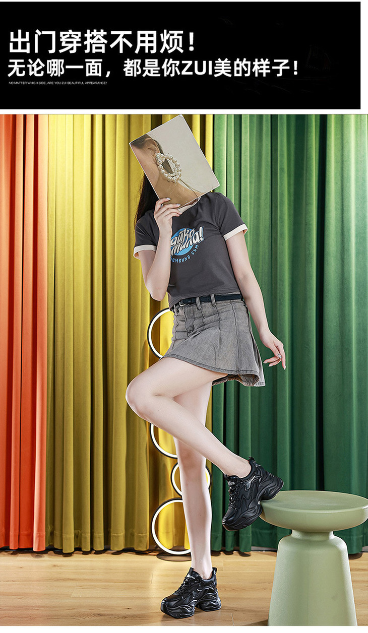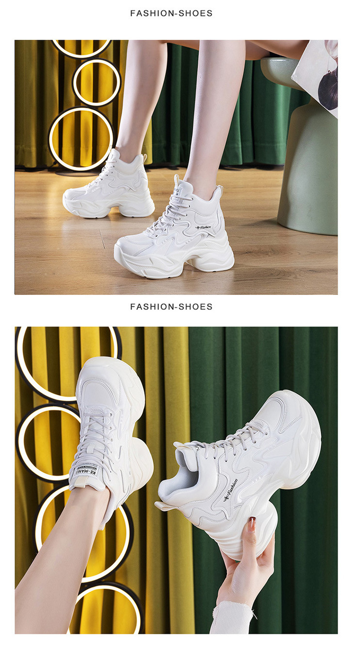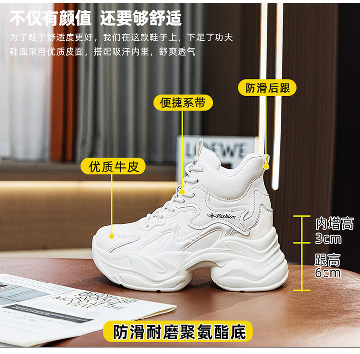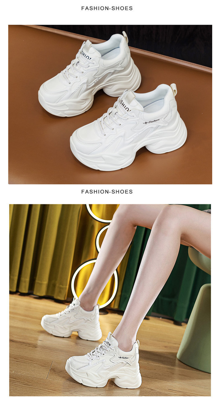 2025春季小个子内增高休闲老爹鞋小白鞋坡跟松糕厚底网鞋AM5351