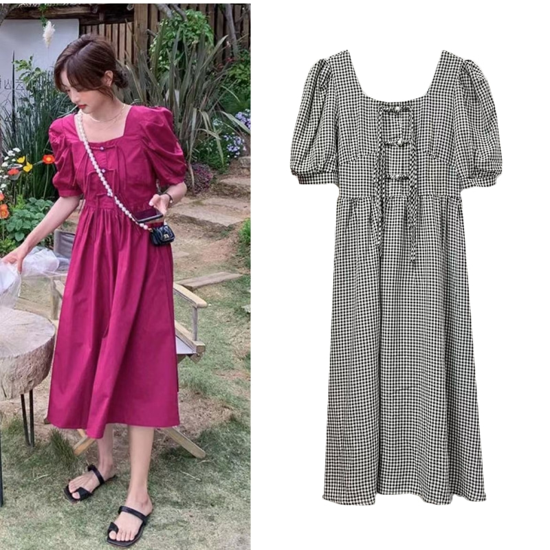 NO 退→样衣清仓(微瑕)!方领盘扣黑白格连衣裙—喜出