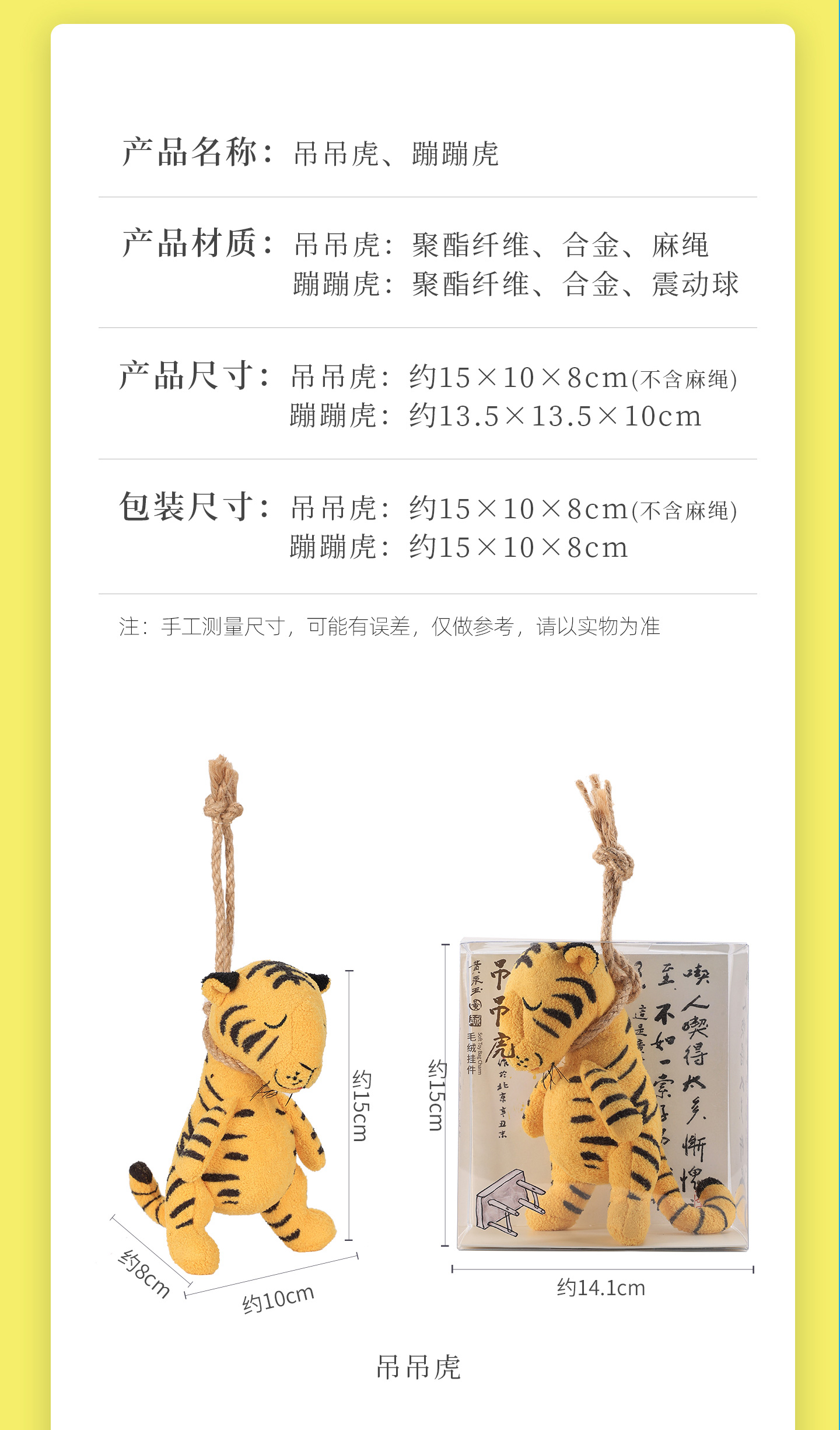苏州博物馆 黄永玉特展周边 蹦蹦虎/吊吊虎毛绒玩偶