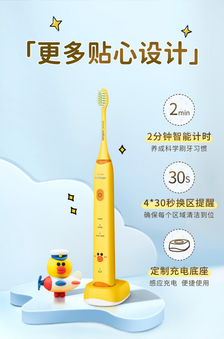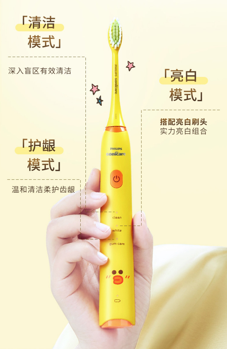 飞利浦PHILIPS电动牙刷 莎莉鸡IP联名款成人声波震动牙刷 3种模式HX2482
