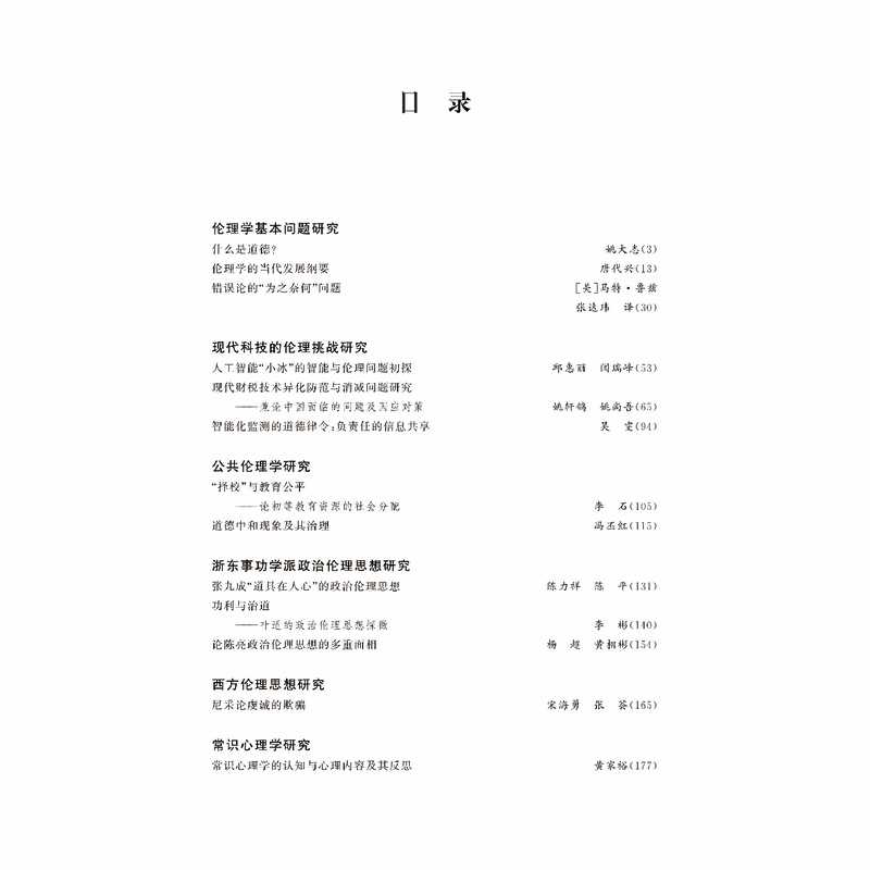 伦理学的本质是关于道德问题的科学,是道德思想观点的系统化、理论化。或者说,伦理学是以人类的道德问题作为自己的研究对象。《伦理学与公共事务(第9卷)》以伦理学为学科视域,分“马克思主义伦理学研究”“西方政治伦理学研究”“中国传统伦理问题研究”“伦理学前沿问题研究”等几个主题板块,集结数十位在伦理学领域深根的学者就元伦理学问题、文化自信中的伦理蕴意问题、《共产党宣言》中的伦理问题、中国传统文化中的女德问题、高等教育中个体与国家关系问题等面向进行了深入探讨。