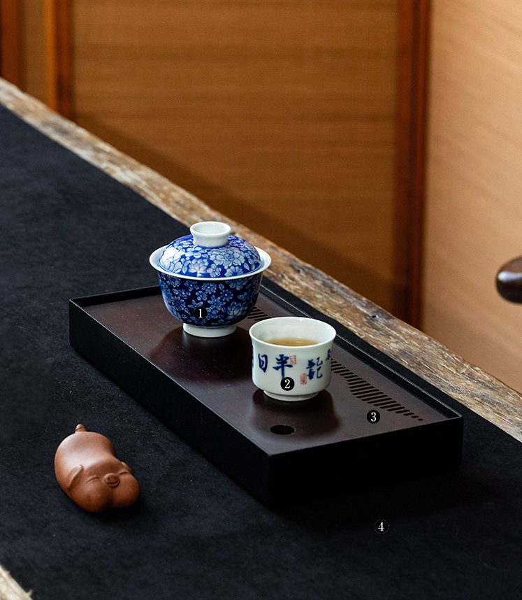 茶香记翎溪堂景德镇手绘青花万花小盖碗120ml陶瓷古典泡茶碗茶具