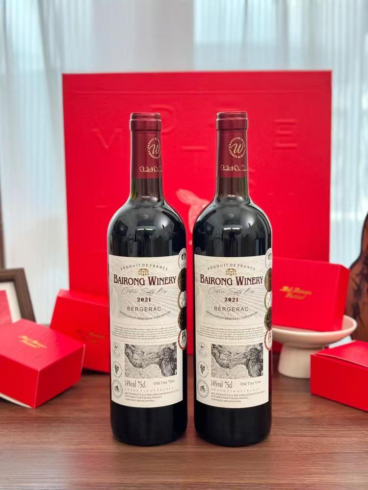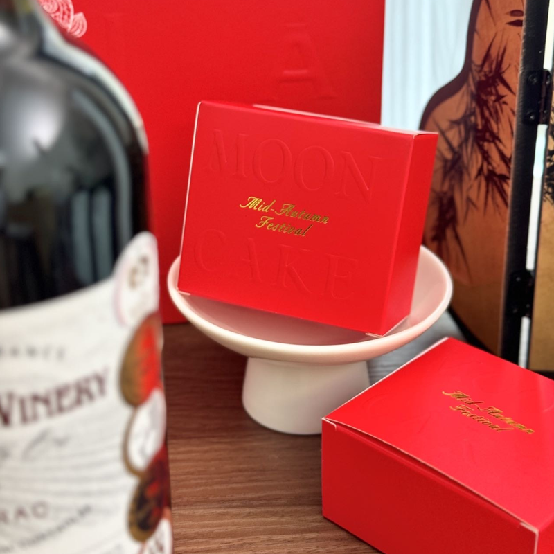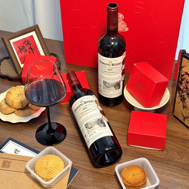 疯抢中!!中秋红金浮雕手提礼盒【柏榕酒庄老树藤干红月饼】法国进口干红+4款中式月饼 14%vol 750ml*2瓶
