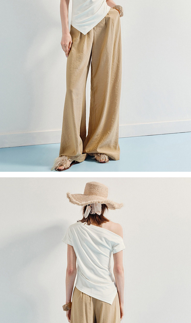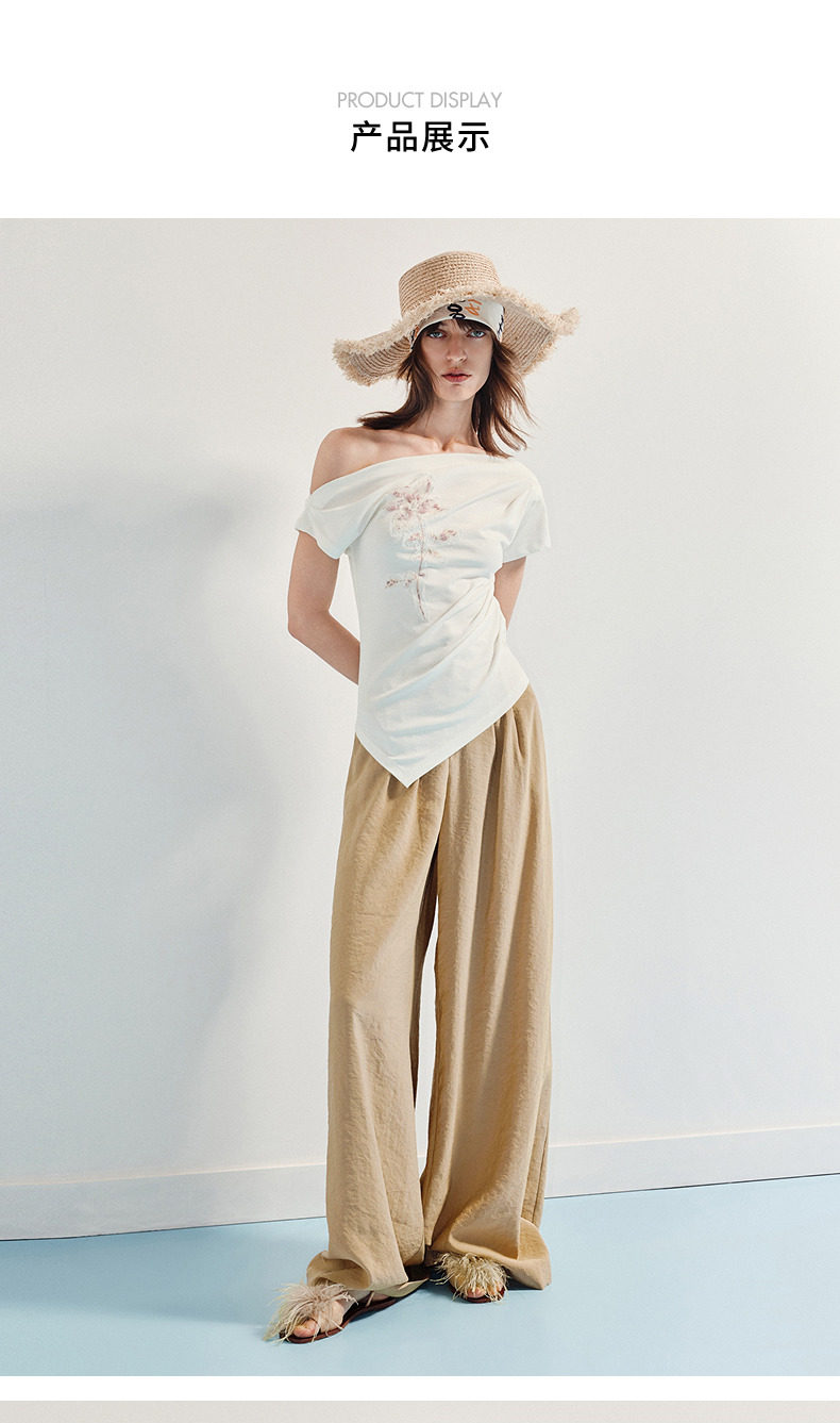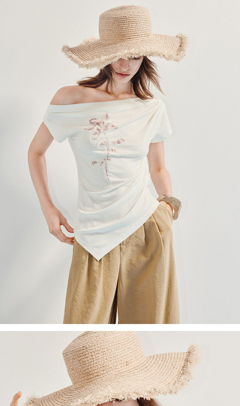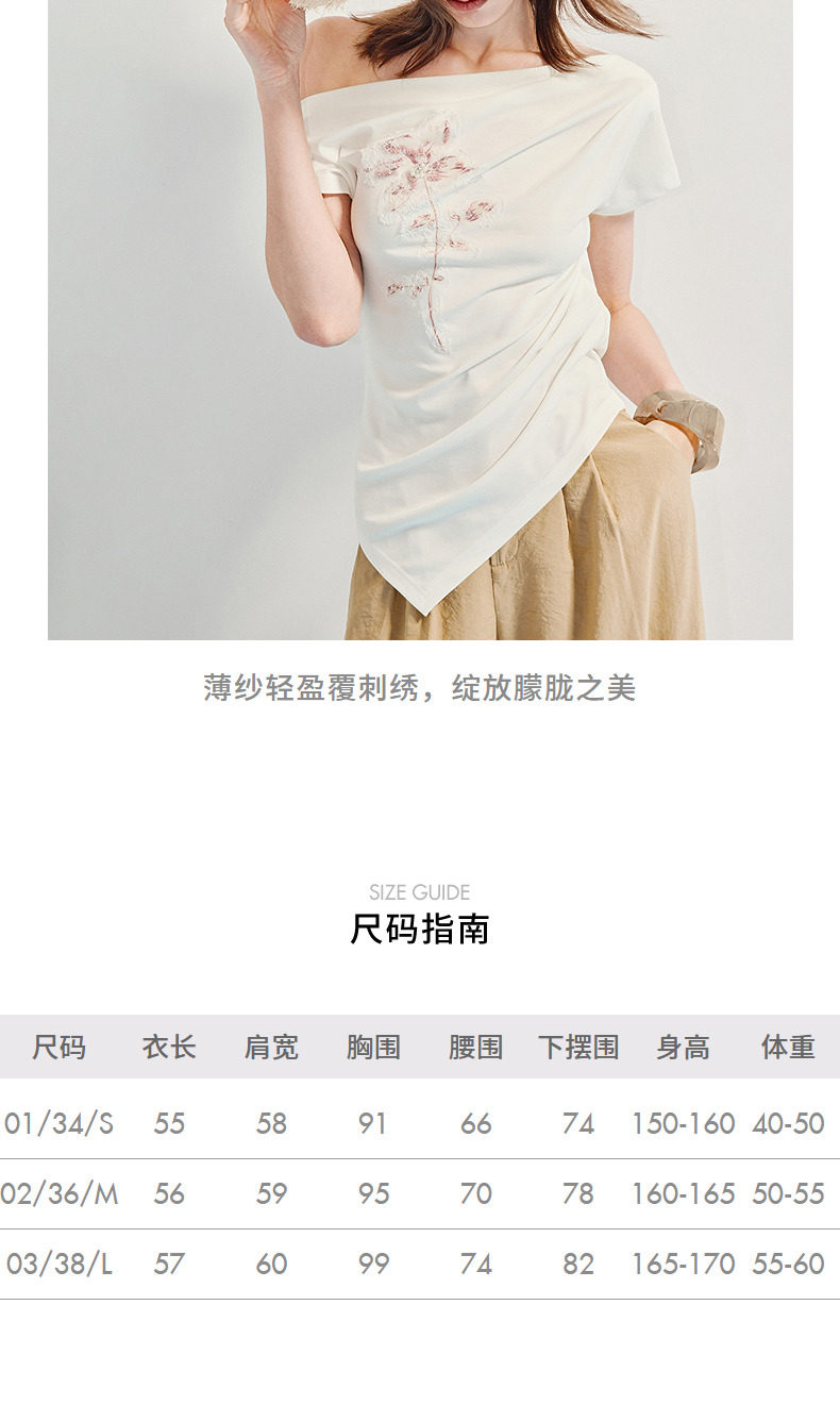 【商场同款】MAXRIENY小众设计感收腰不规则领口下摆立体珠绣T恤(货号:MC86TS256)