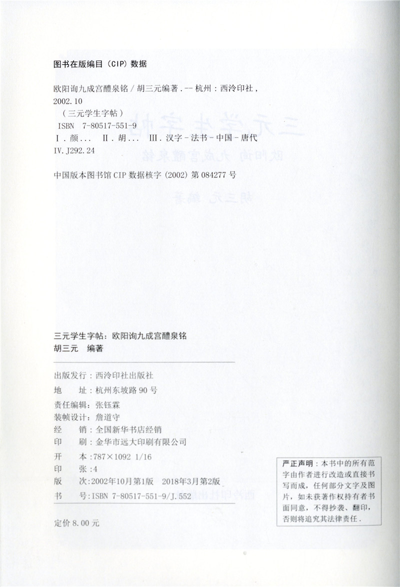 三元学生字帖3 欧阳询 九成宫】启功题签 三元字帖毛笔字入门
