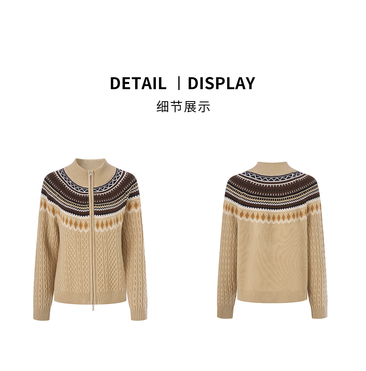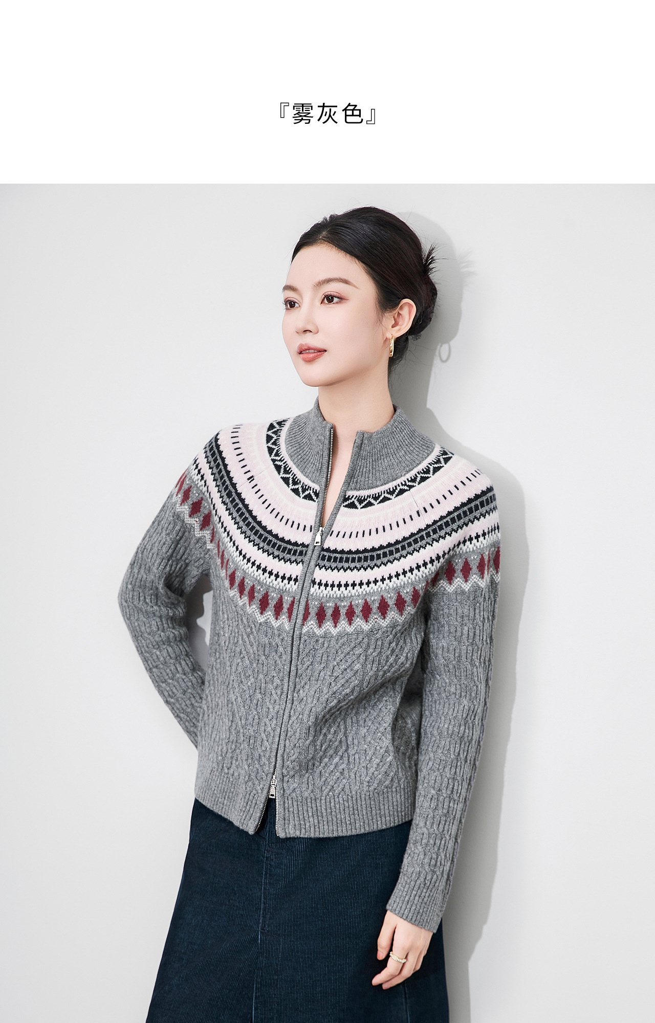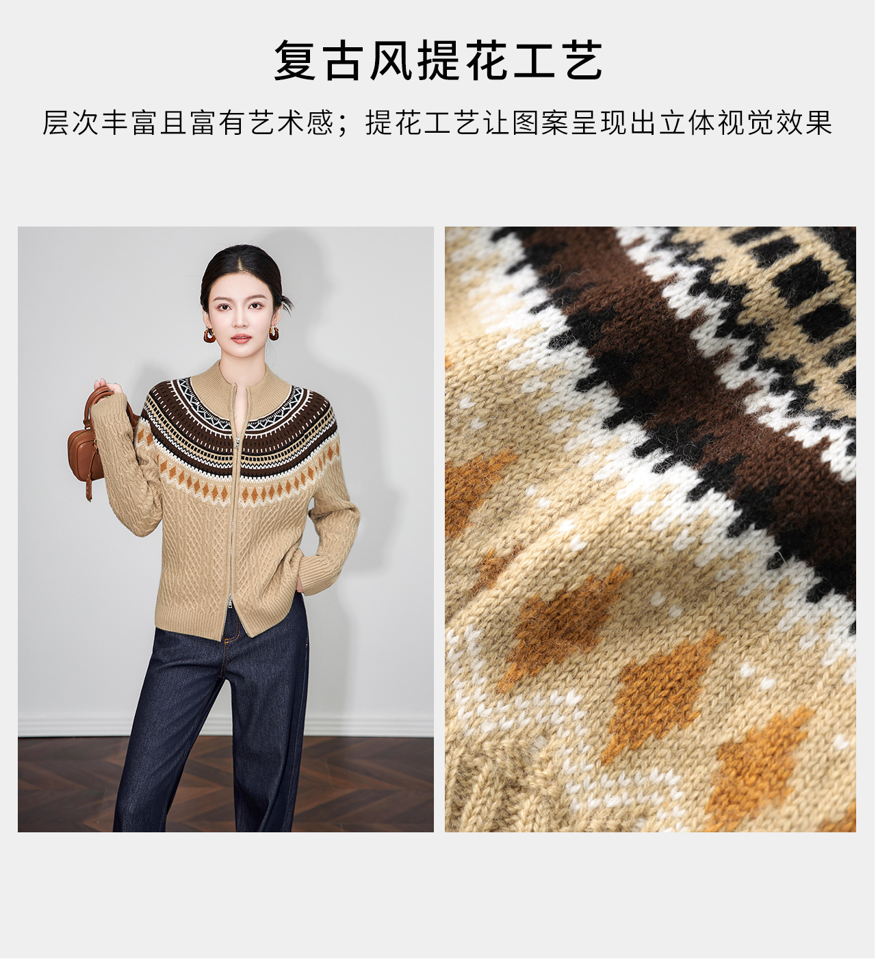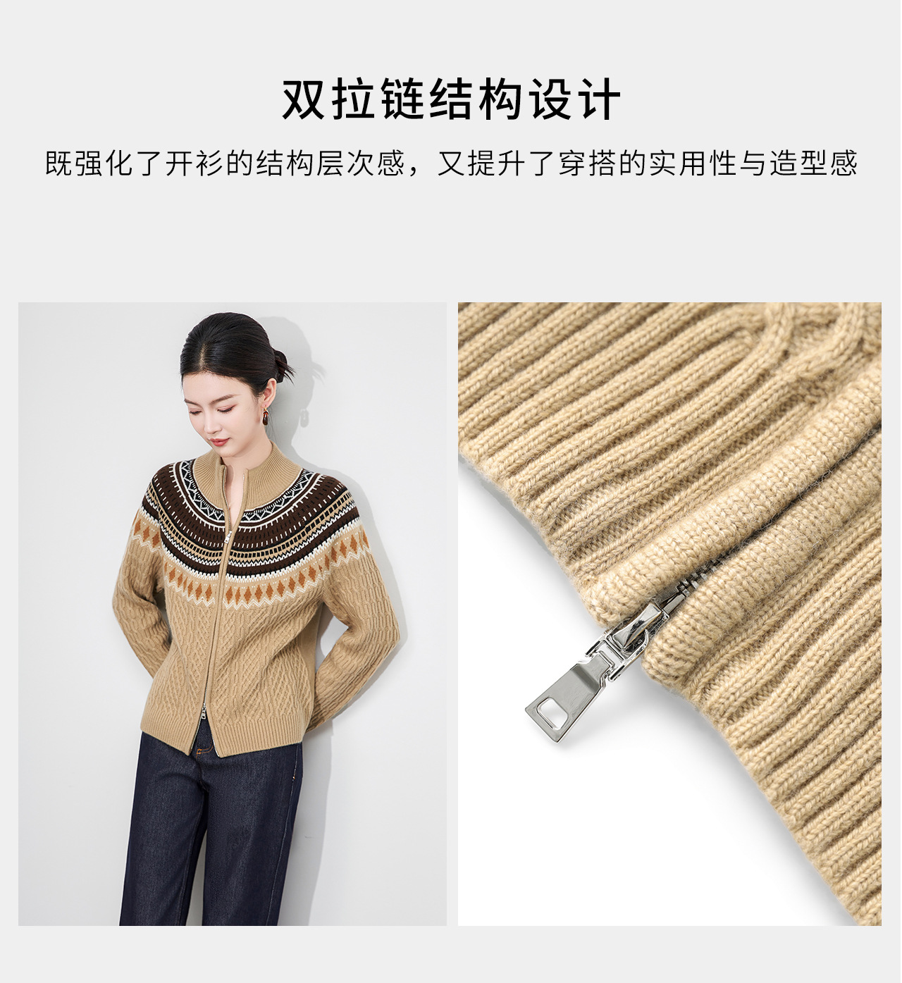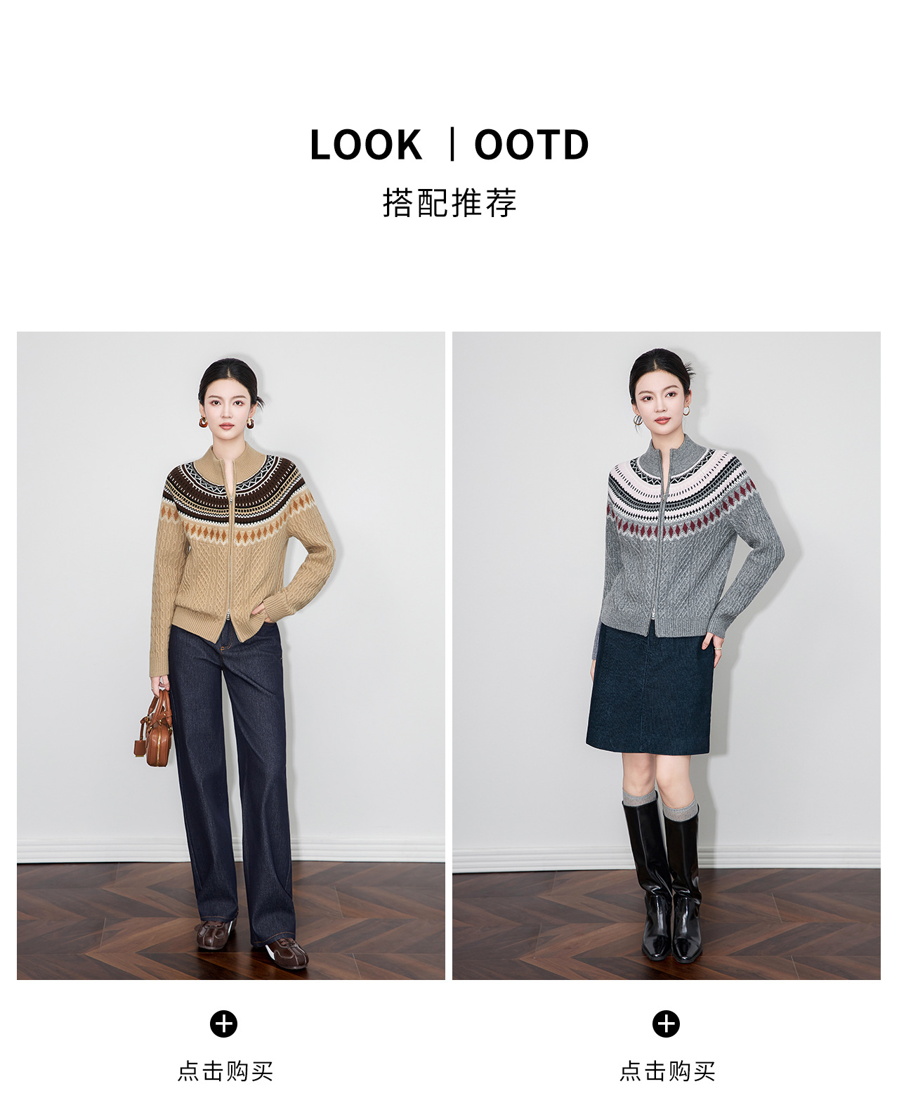 「高货wl」全新升级【铂金会员330/天猫439/差价109】(53803)洛诗琳美丽诺羊毛费尔岛提花毛衣2025秋冬加厚针织外套