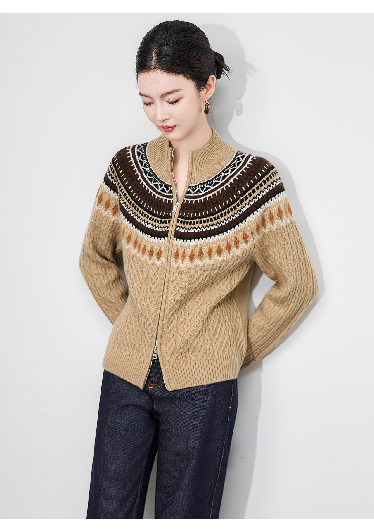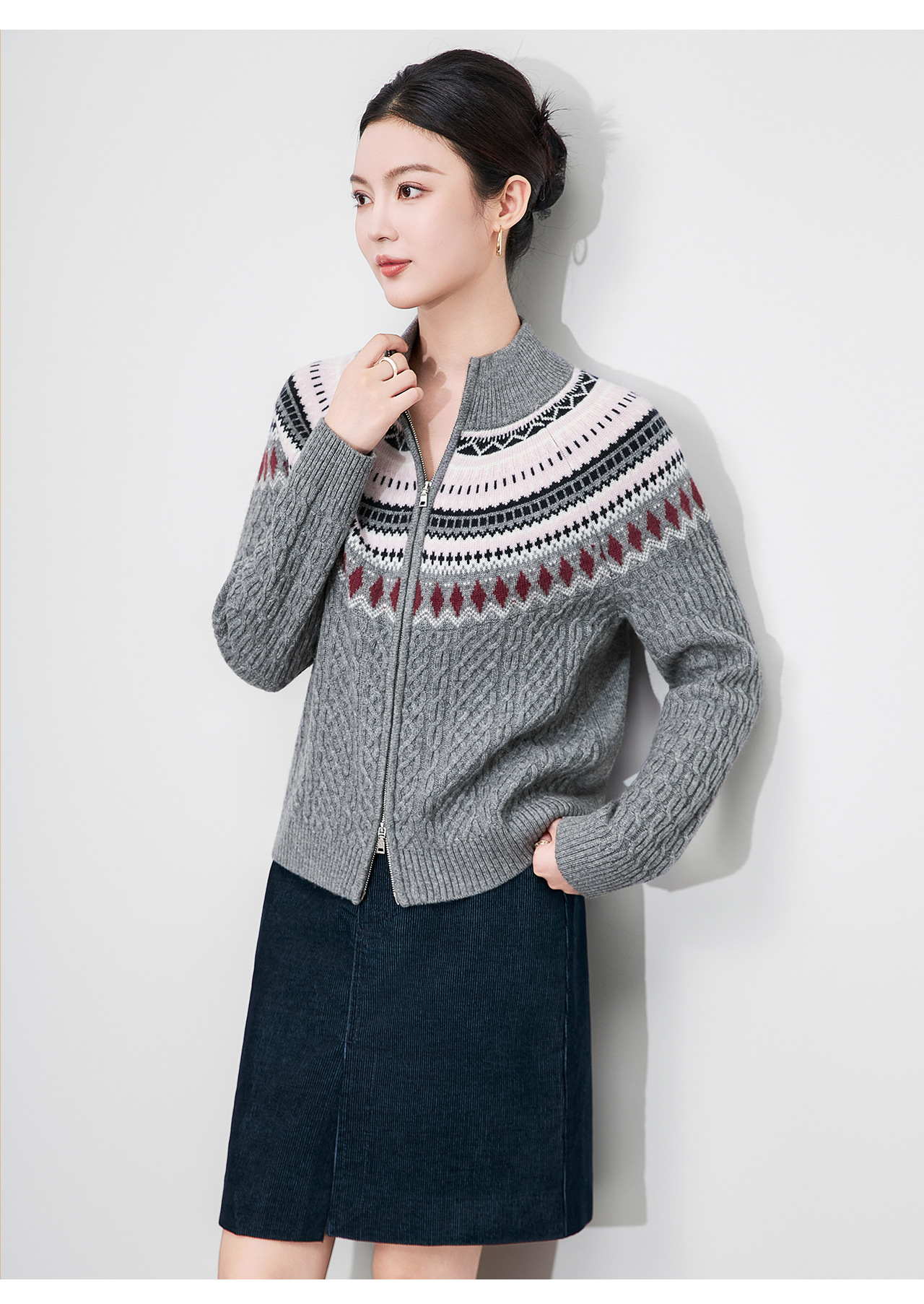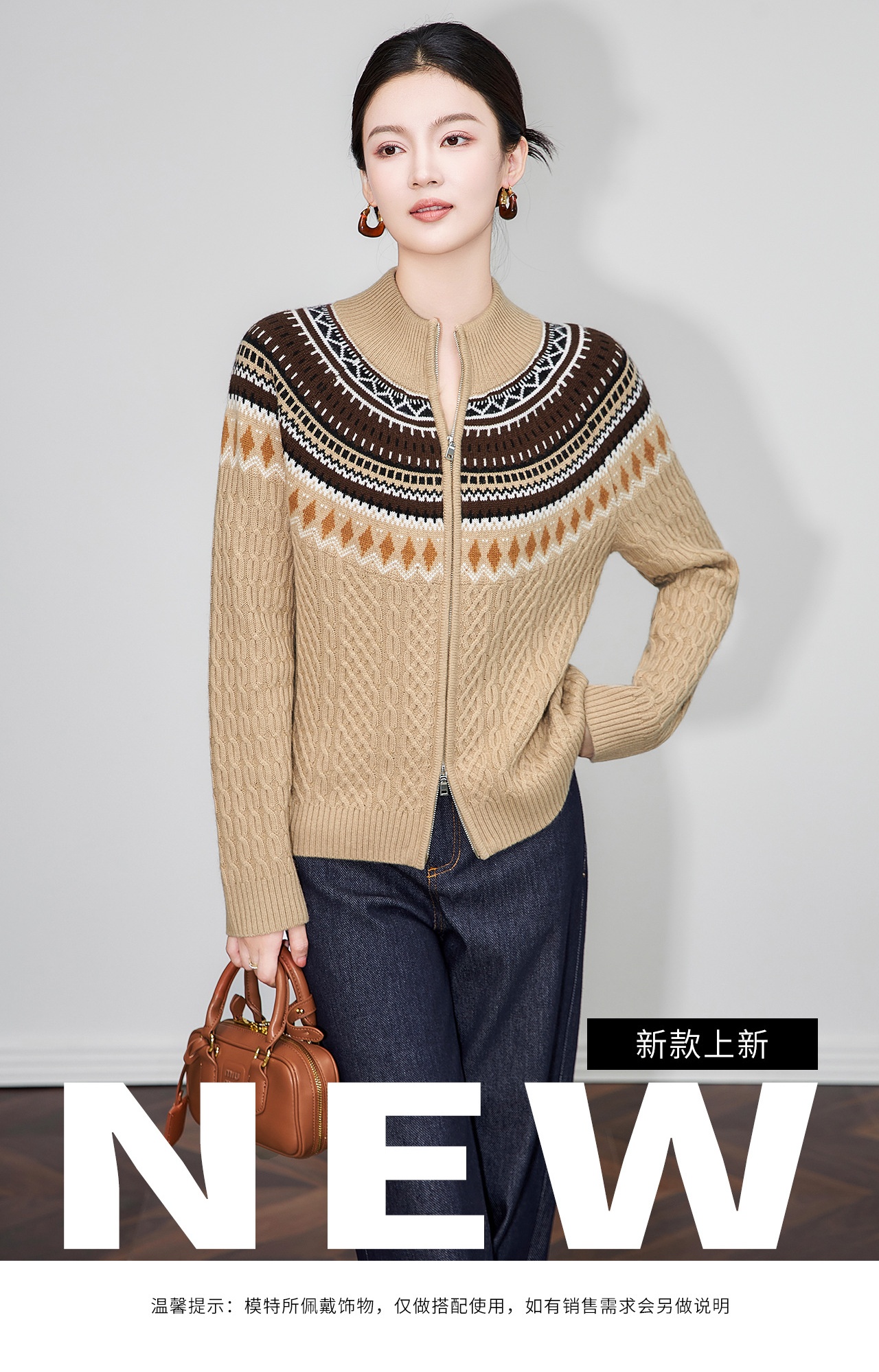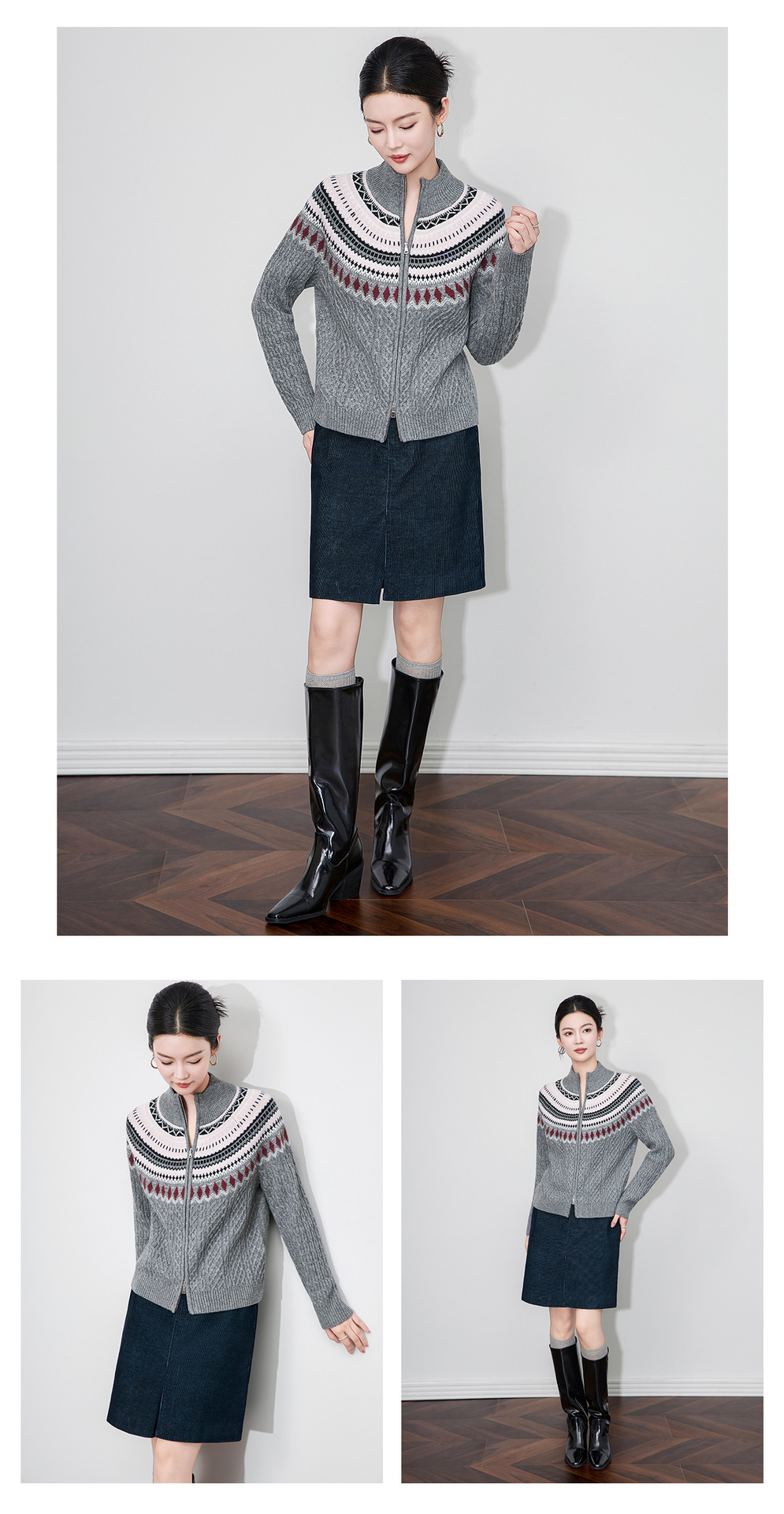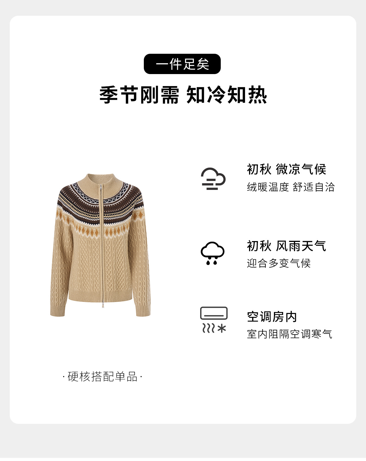 「高货wl」全新升级【铂金会员330/天猫439/差价109】(53803)洛诗琳美丽诺羊毛费尔岛提花毛衣2025秋冬加厚针织外套