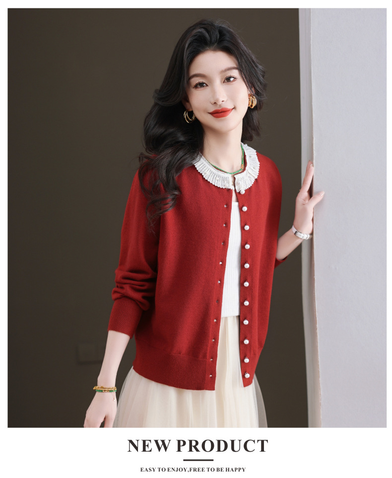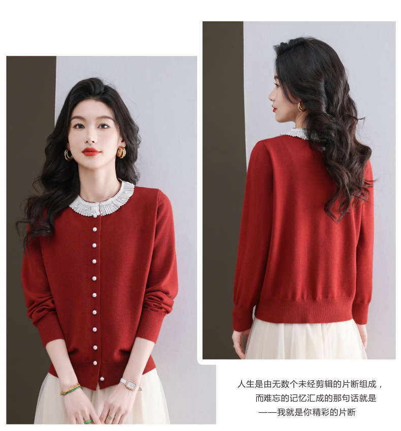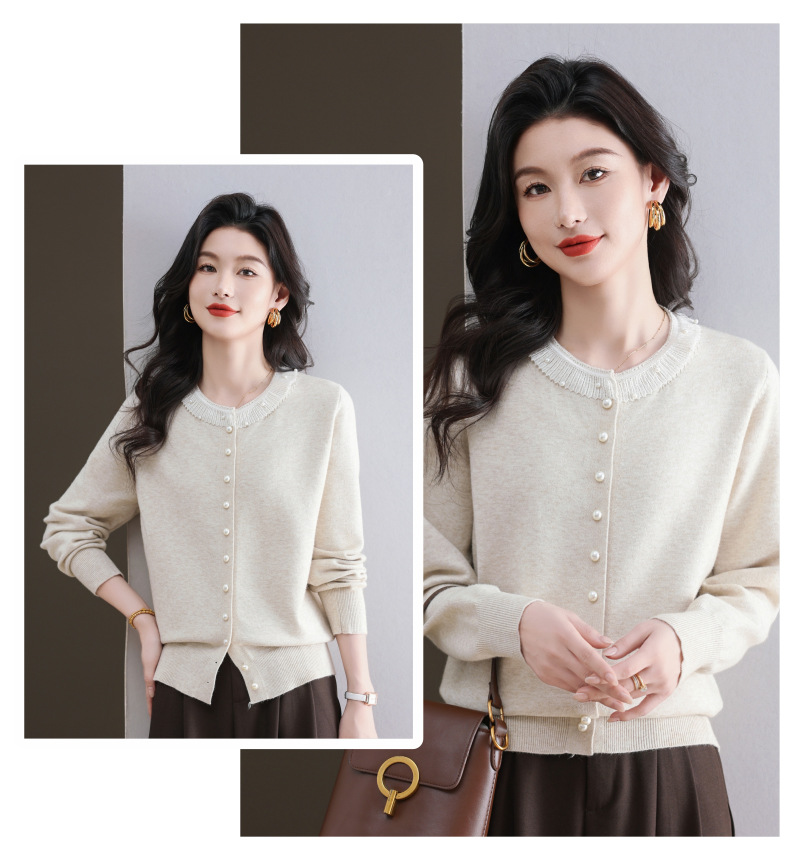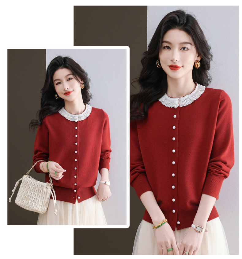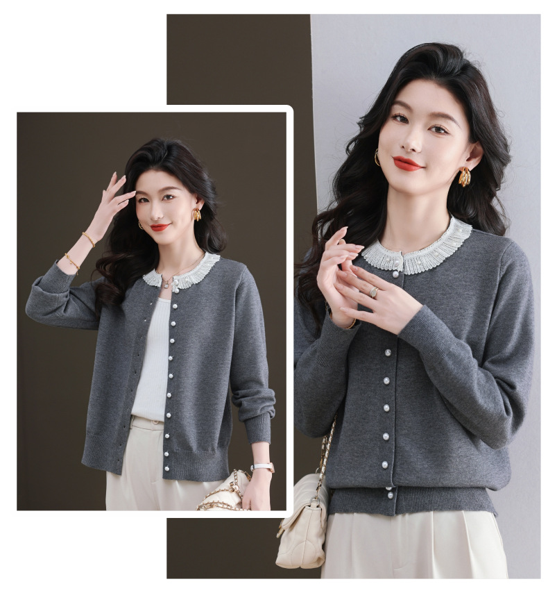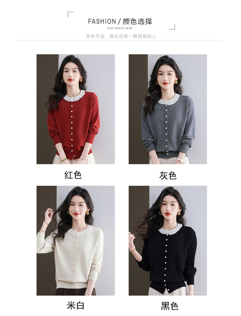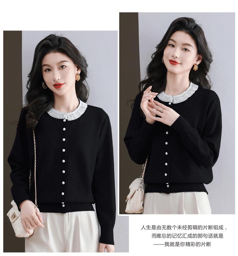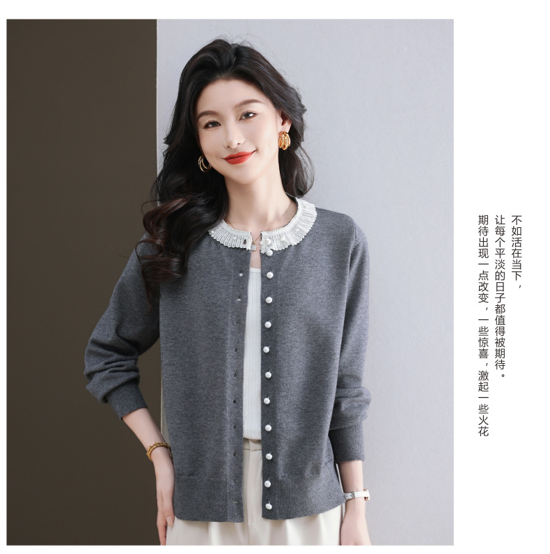 CC-11-9117小个子外套女士蕾丝花边针织开衫2025春秋装新款钉珠洋气短款上衣