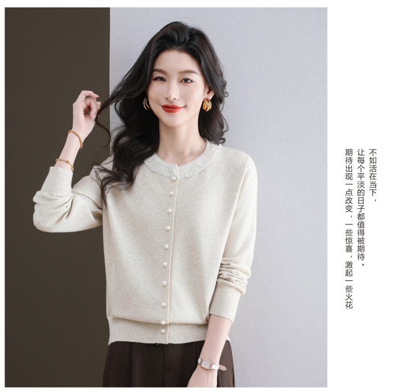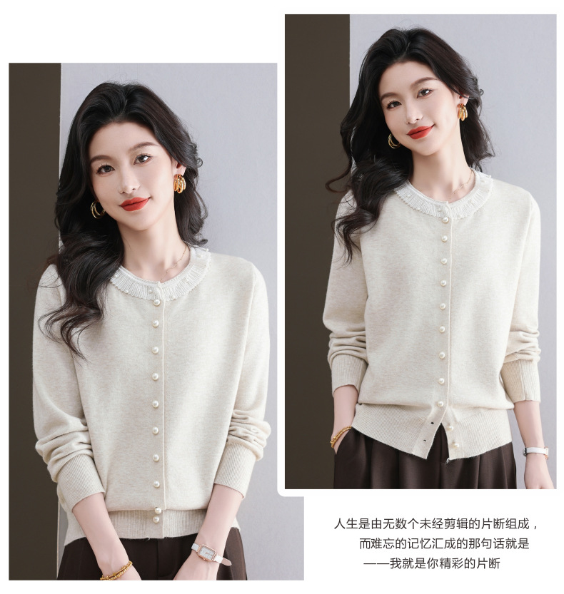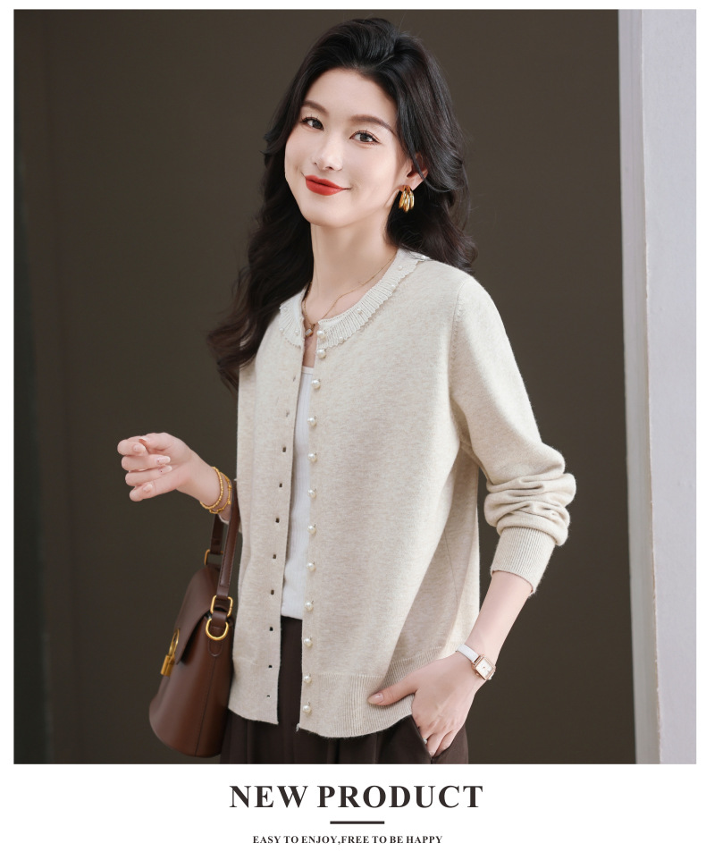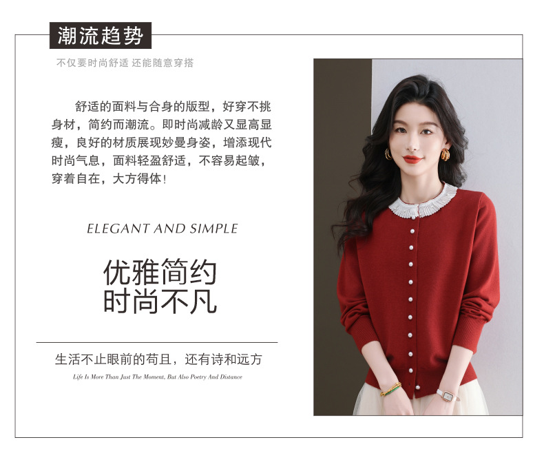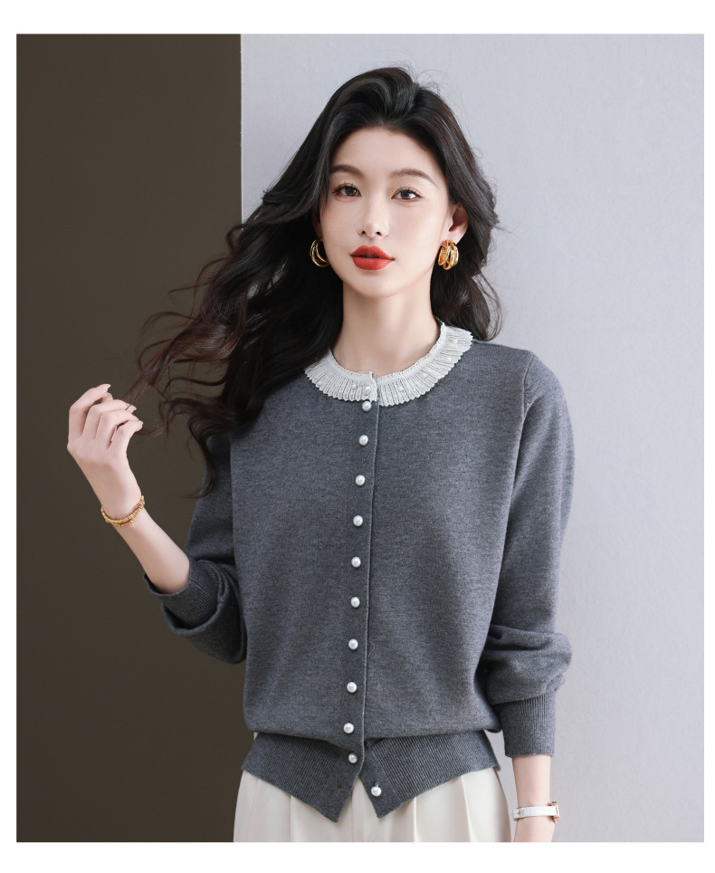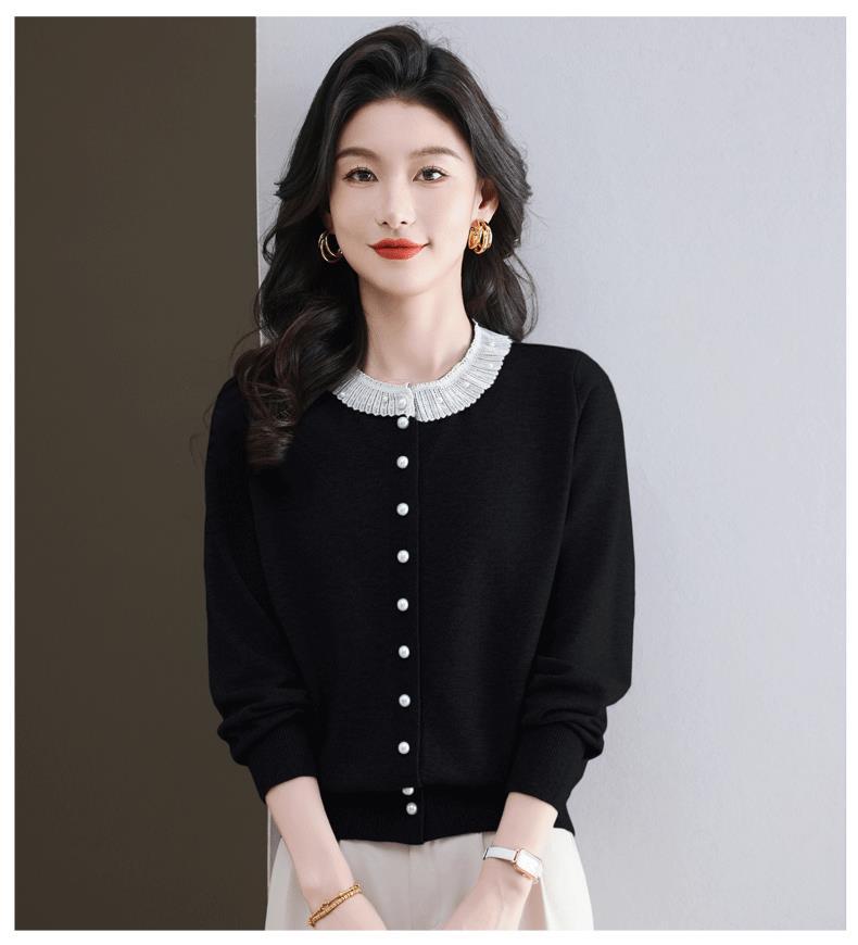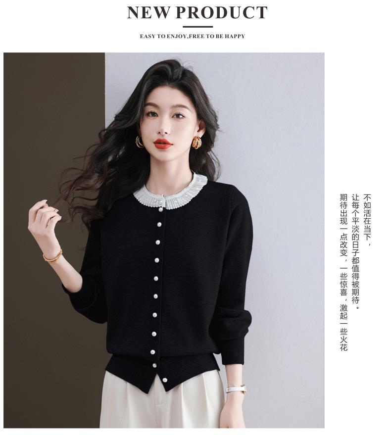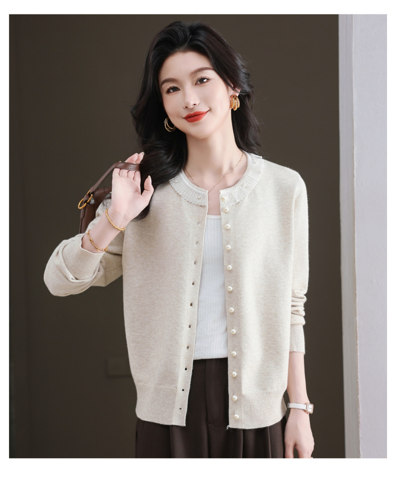 CC-11-9117小个子外套女士蕾丝花边针织开衫2025春秋装新款钉珠洋气短款上衣