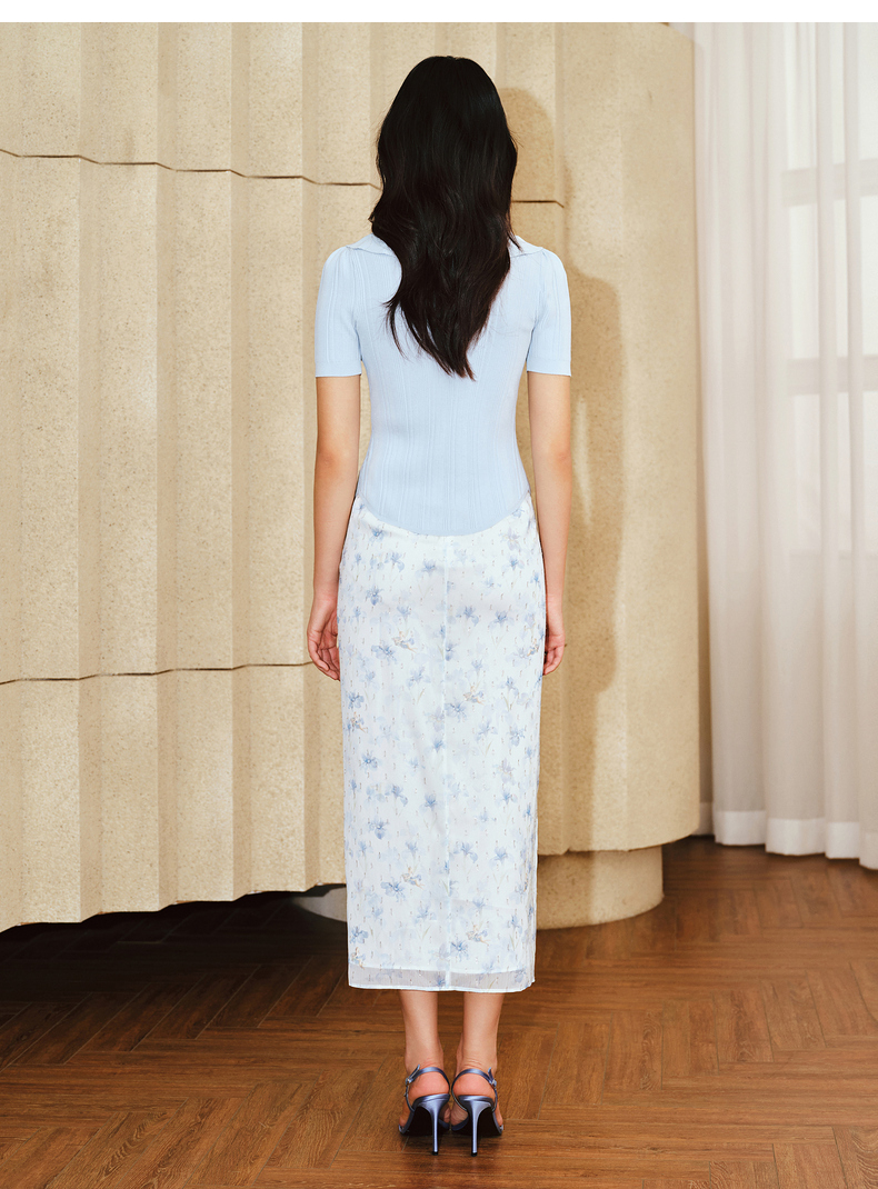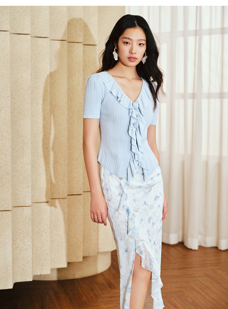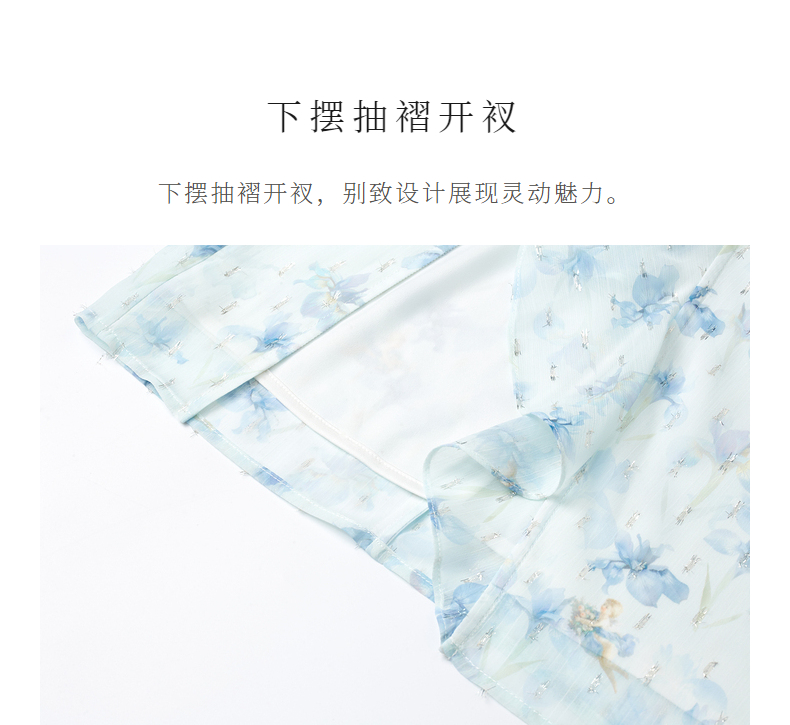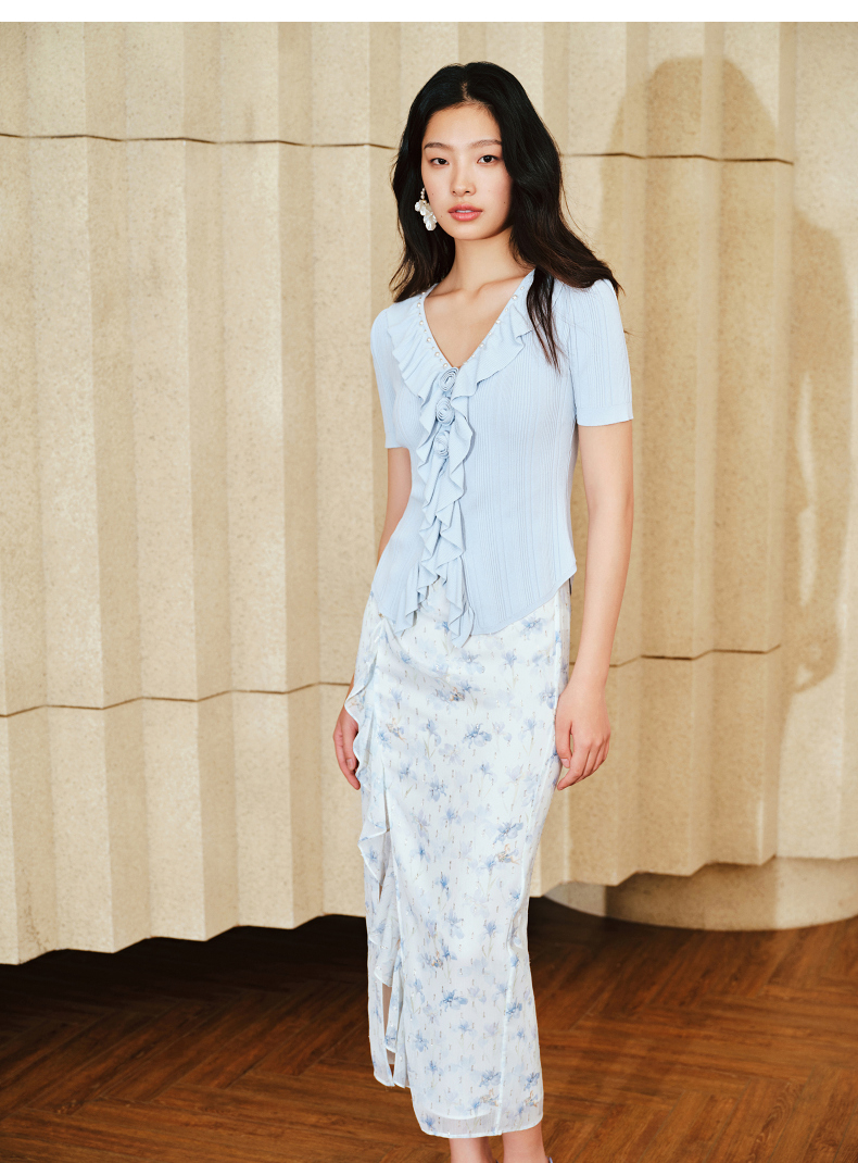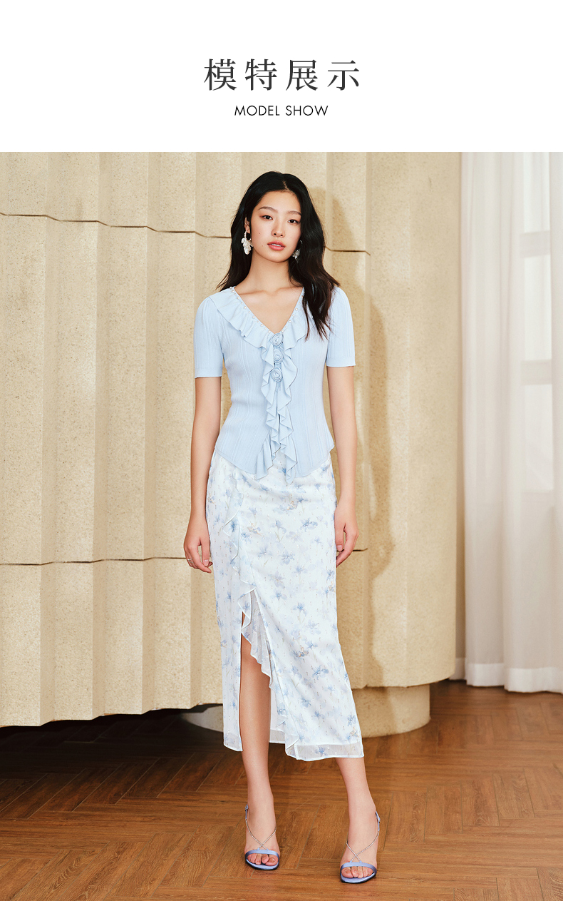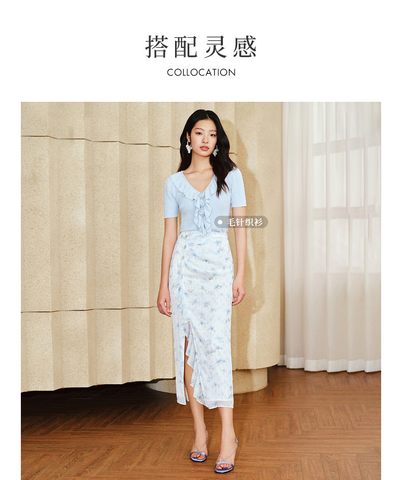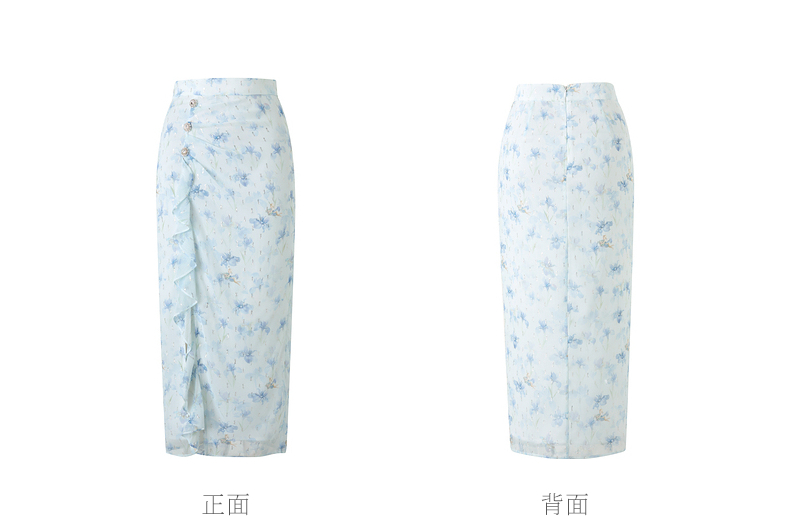 MAXRIENY浪漫感荷叶边开衩半裙雪纺印花半身裙子(货号:MS85SK011)