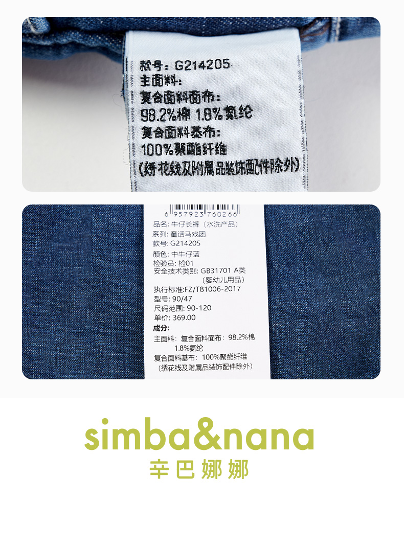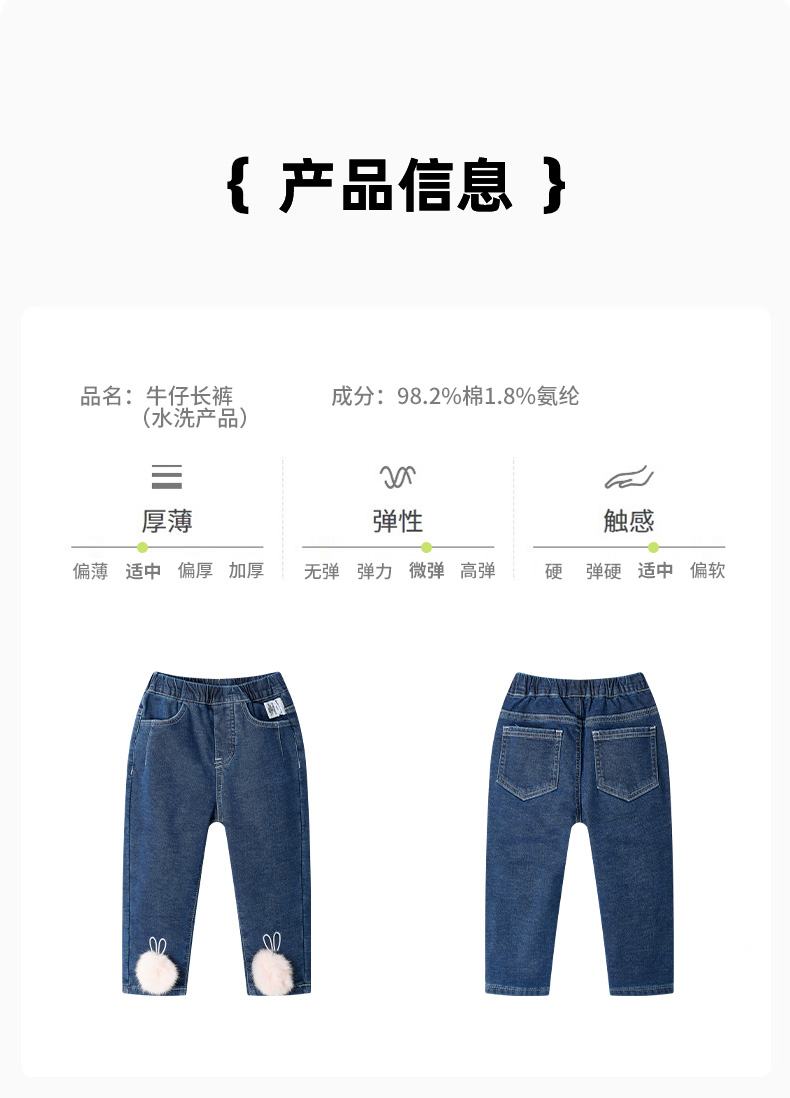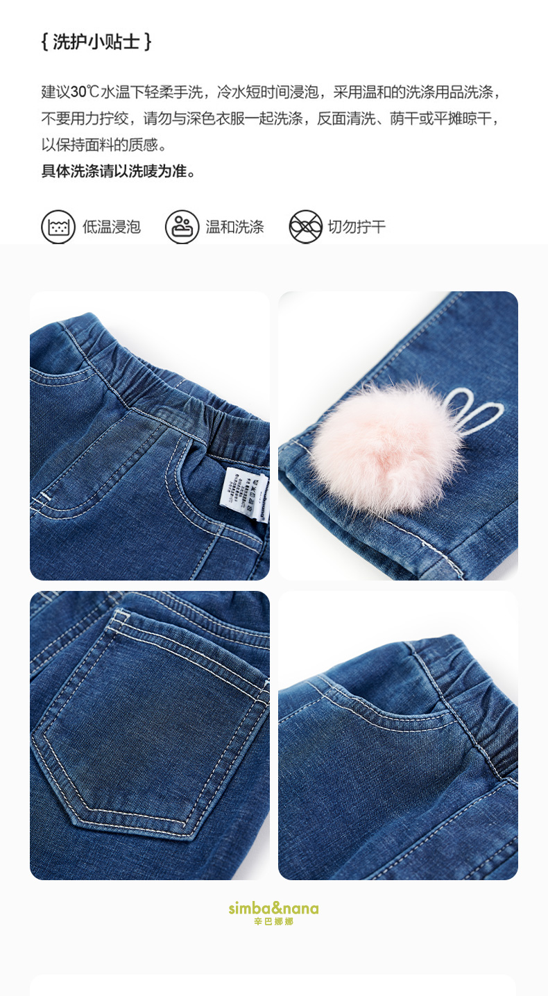 【辛巴娜娜】simbanana女童牛仔裤冬新款儿童休闲长裤子小童宝宝时尚潮