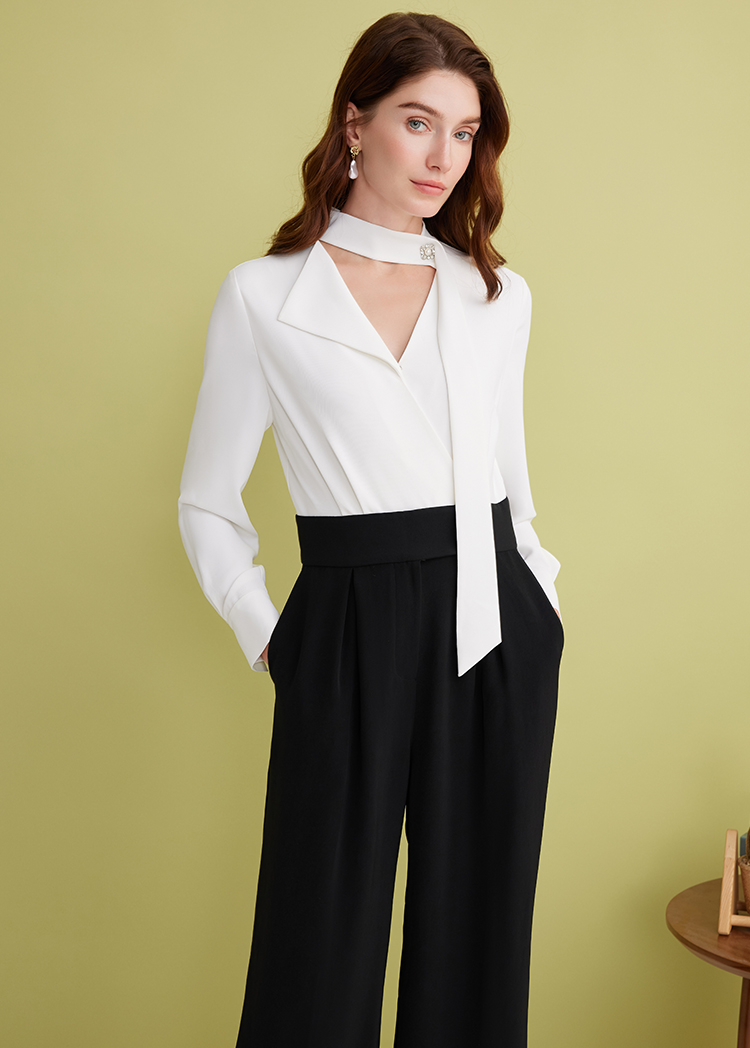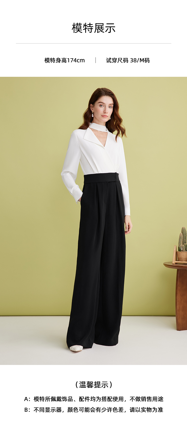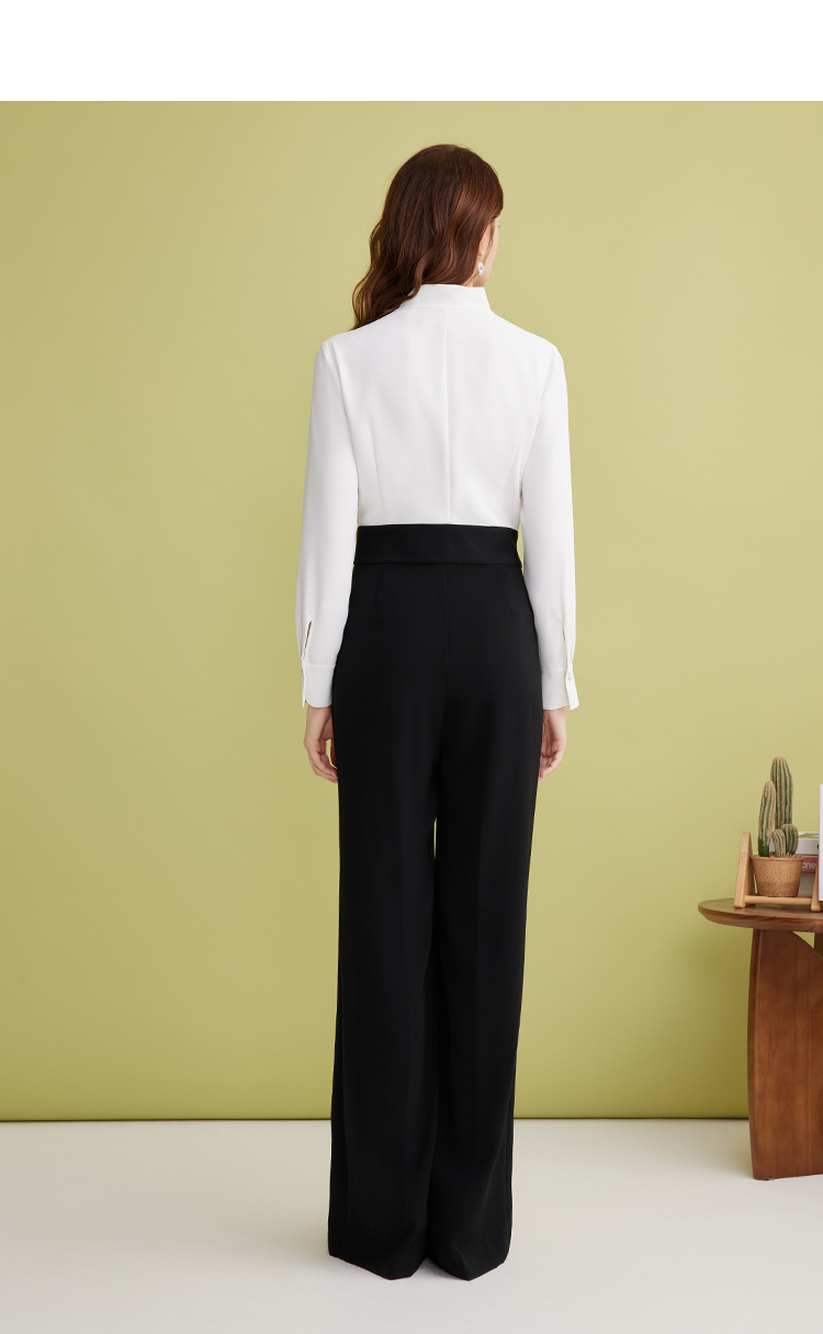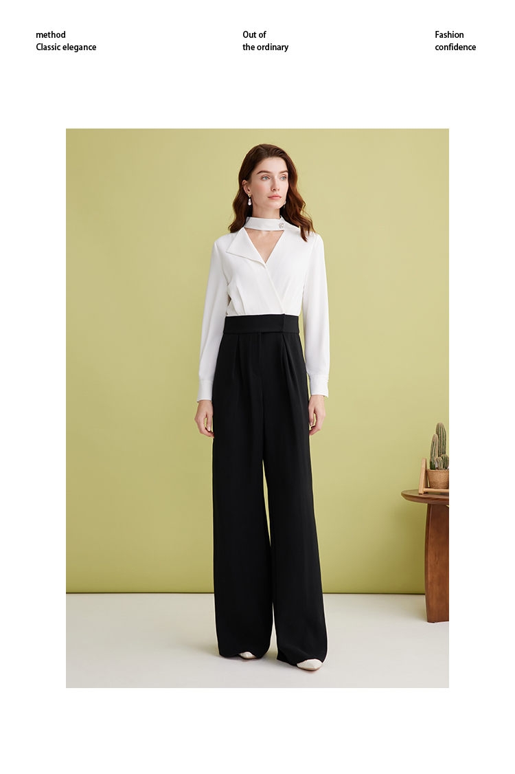 EITIE爱特爱气质飘带撞色收腰通勤显瘦阔腿连体裤2025春季新款A2512501