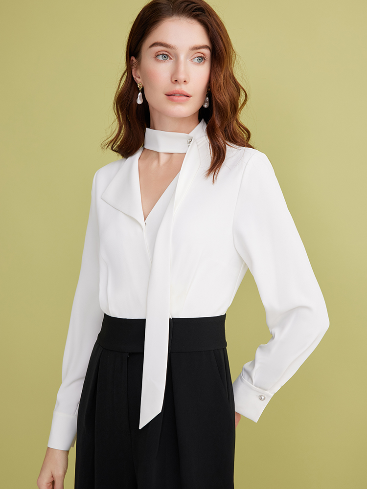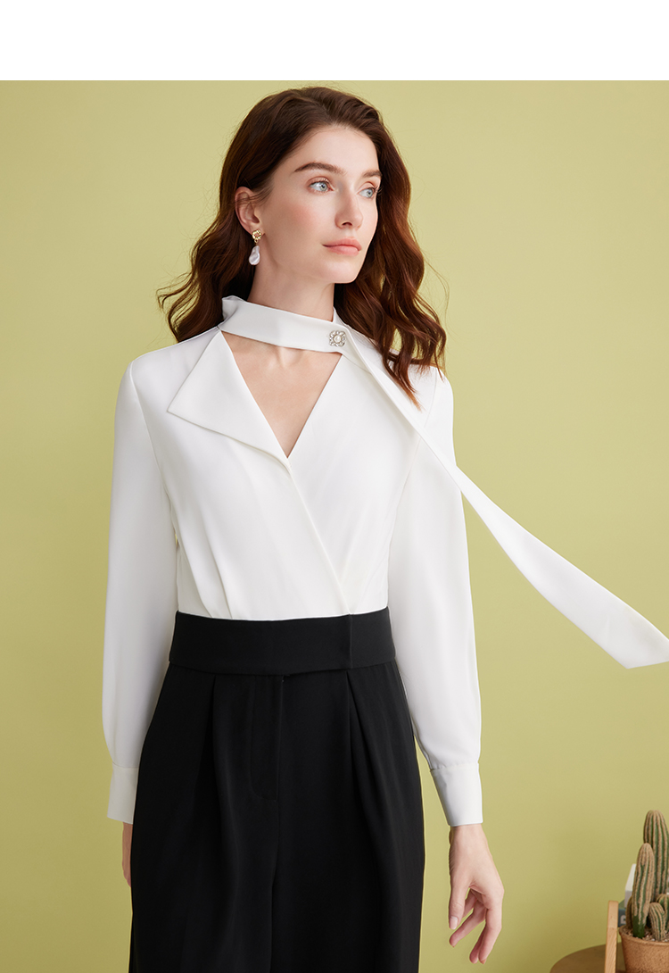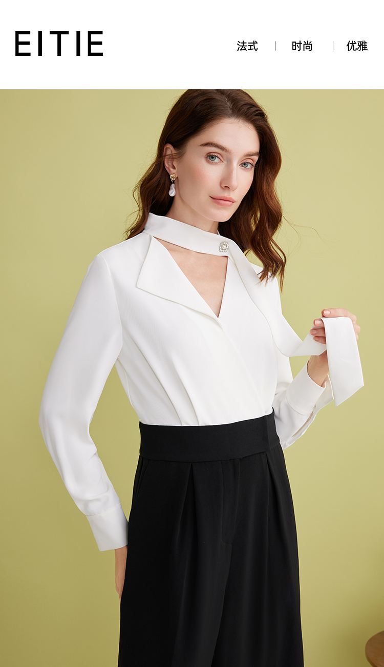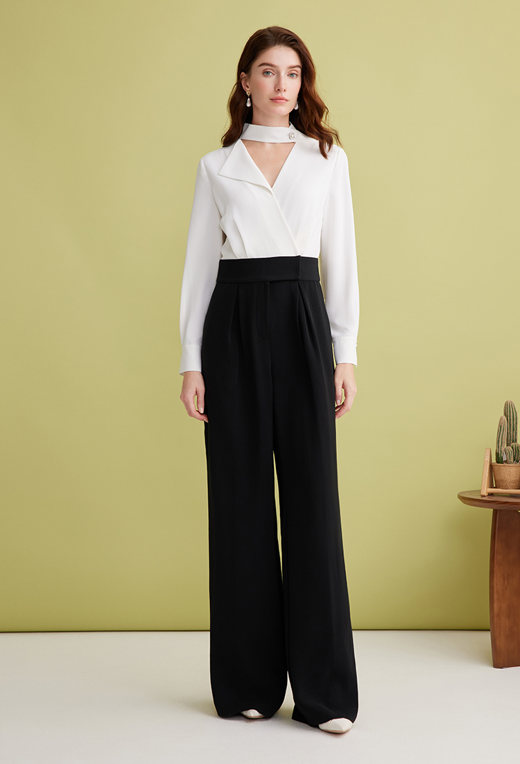 EITIE爱特爱气质飘带撞色收腰通勤显瘦阔腿连体裤2025春季新款A2512501