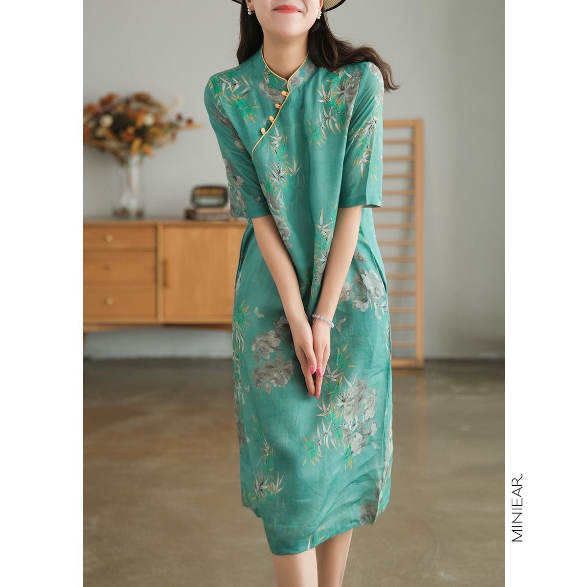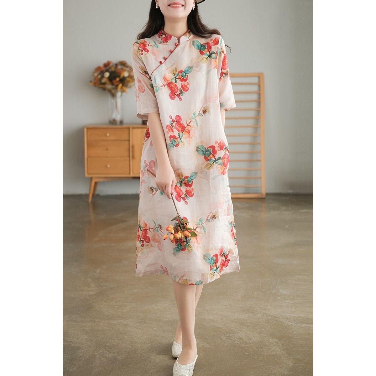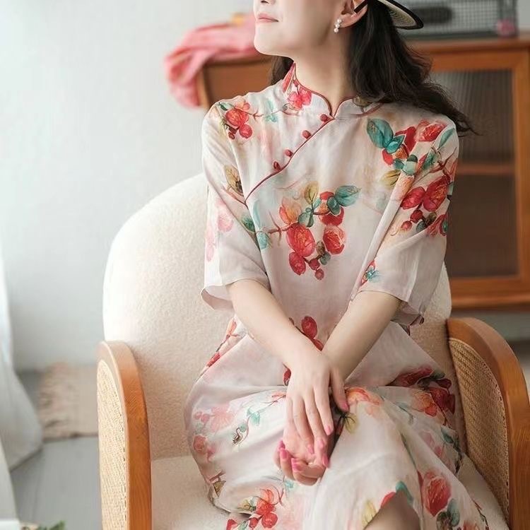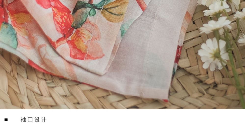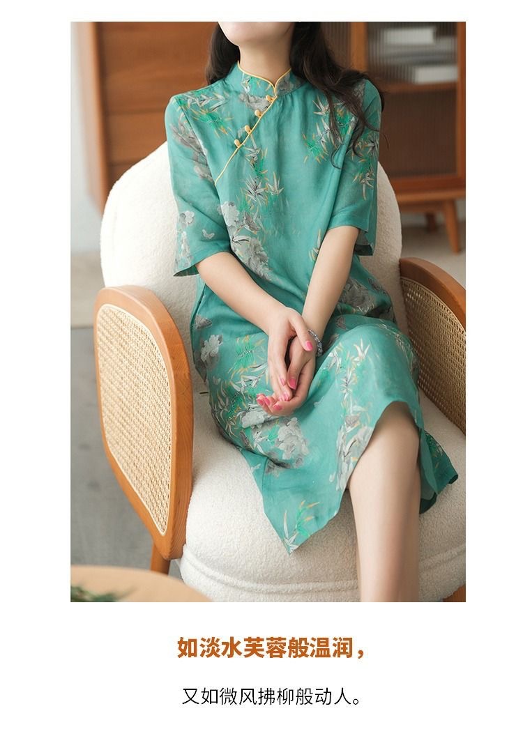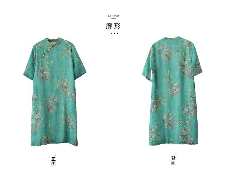 雀说 中式改良盘扣旗袍裙夏季棉麻立领文艺连衣裙复古印花棉麻旗袍4ZF-41502