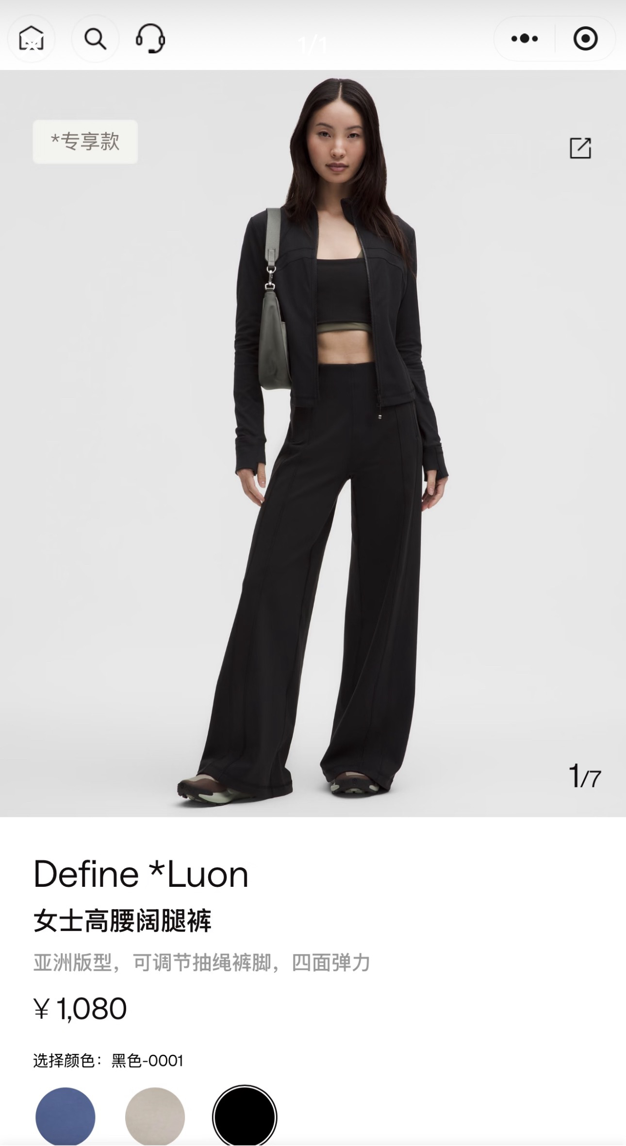 全网都是一致的好评!高腰➕流畅的阔腿版型 超显腿长并且不会有卡裆等问题,舒适性超棒,两侧的经线设计 完美修饰腿型 有效解决假胯宽腿粗等问题!小姐姐讲解视频欣赏~相对其他系列Luon包裹感会很好 裤型不仅有垂感还会更挺拔,可调节抽绳裤脚打造利落造型!