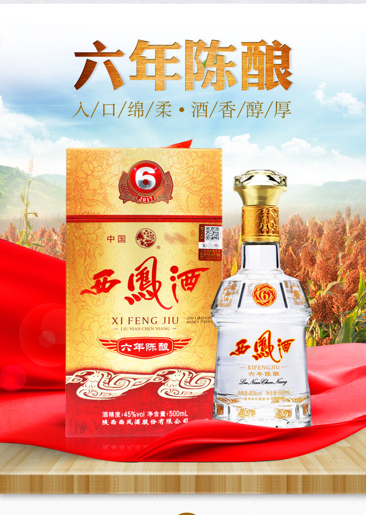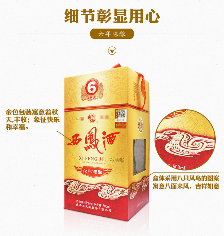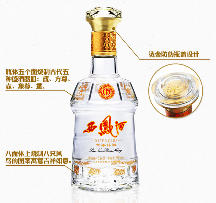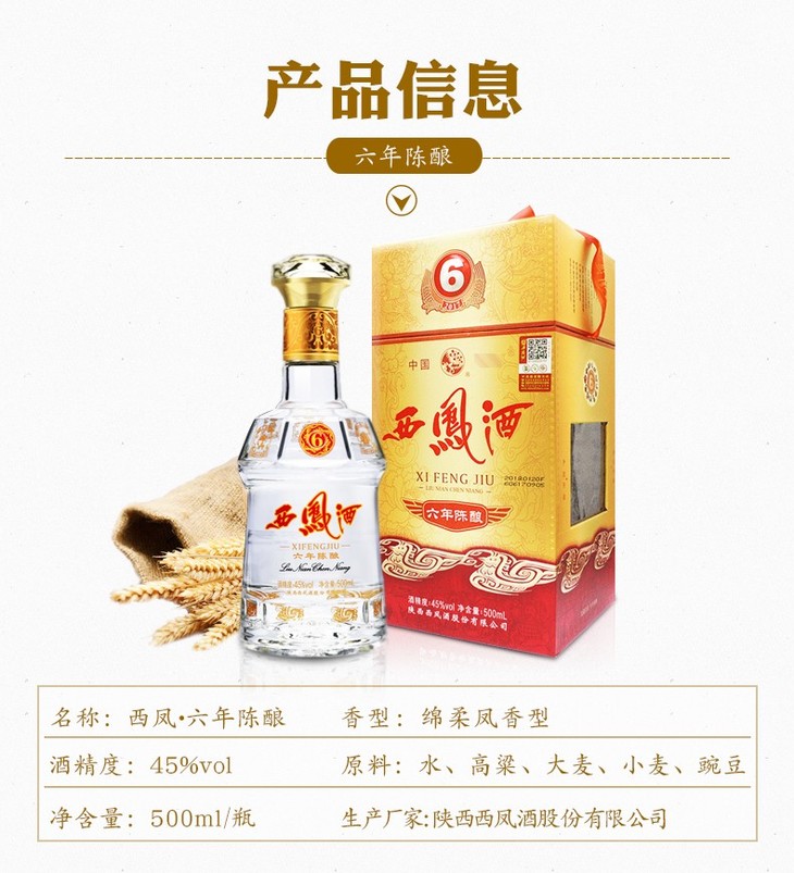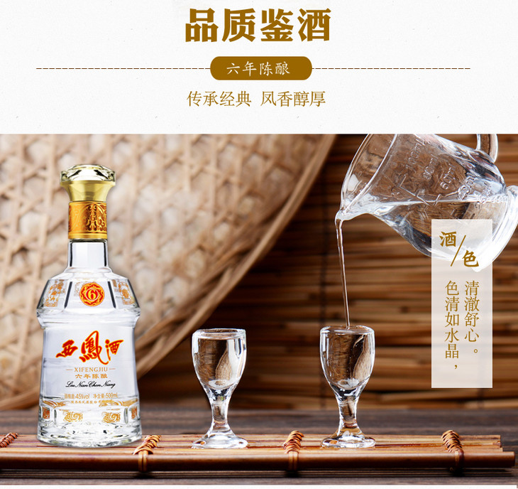 【推荐】西凤酒6年45度六年陈酿绵柔凤香型白酒整箱 500mL*6瓶