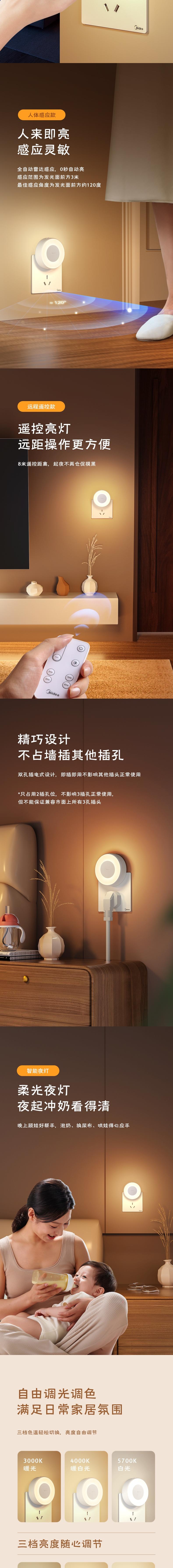 Midea美的 暮光2002人感小夜灯0.4W白色 MTD04-MK-03