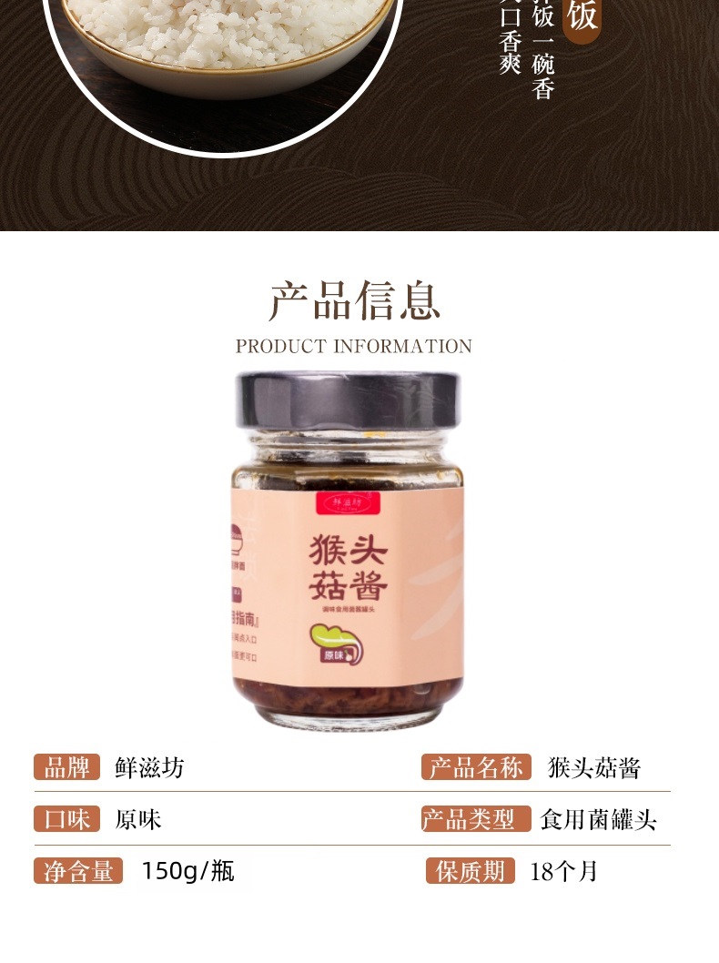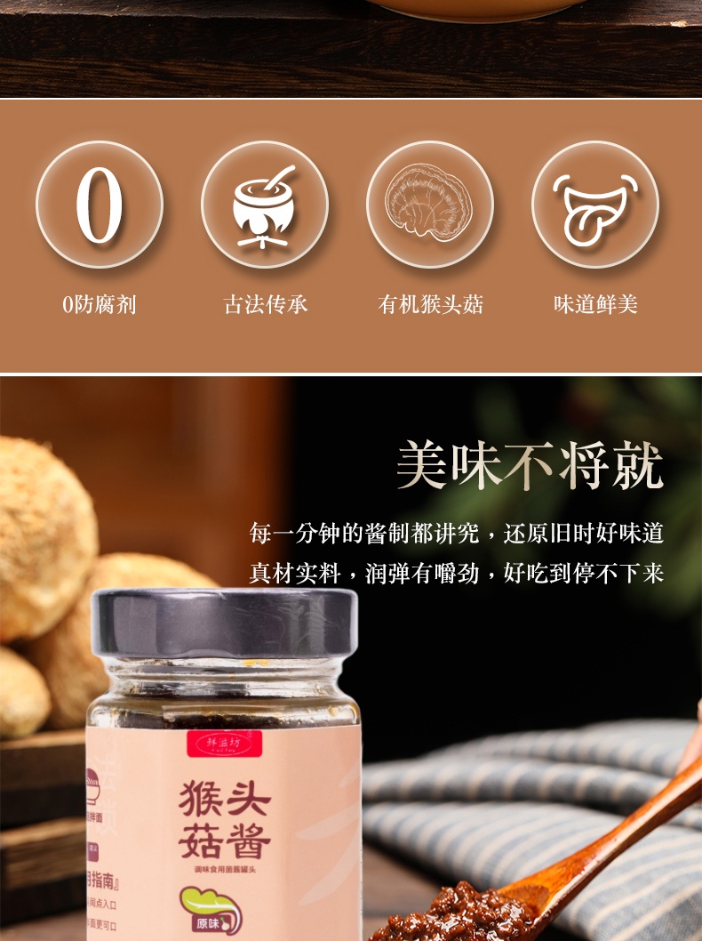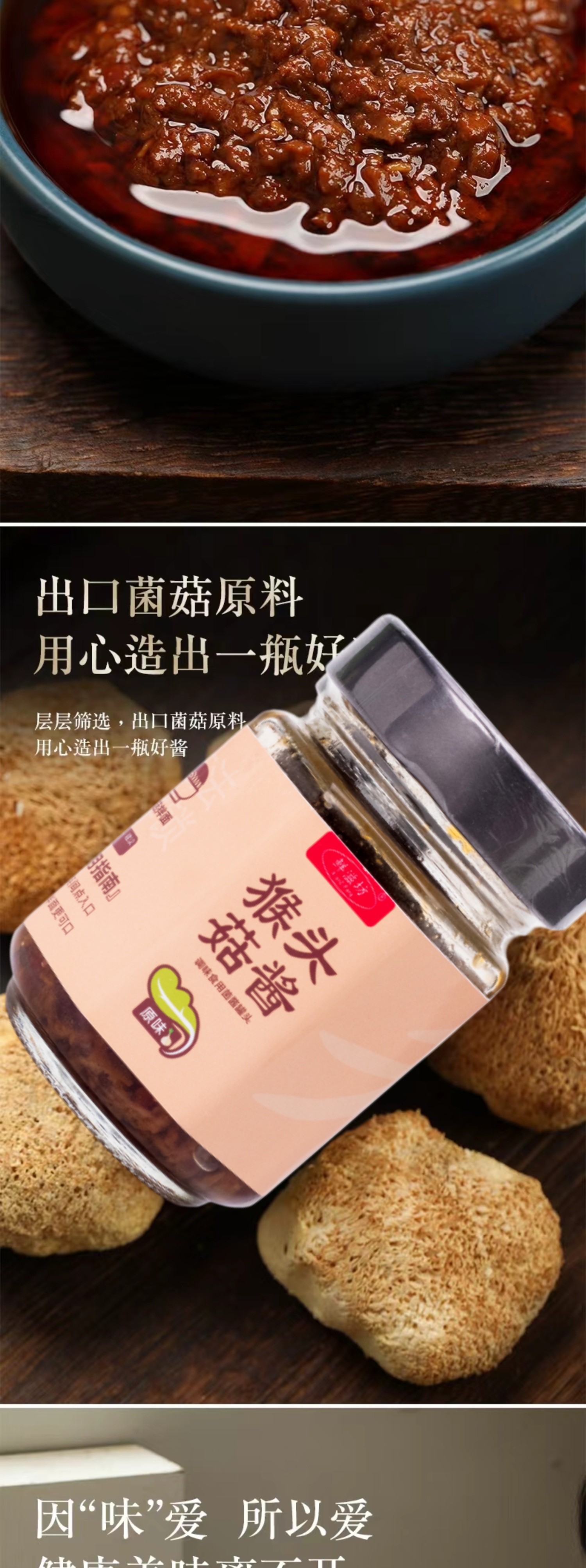 【2份减10元】猴头菇酱原味 甄选有机猴头菇 Q弹有嚼劲 古法传承 美味不将就 下饭拌面神器 营养美味 150克/瓶