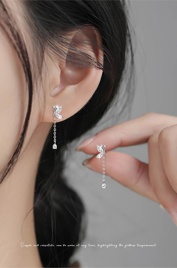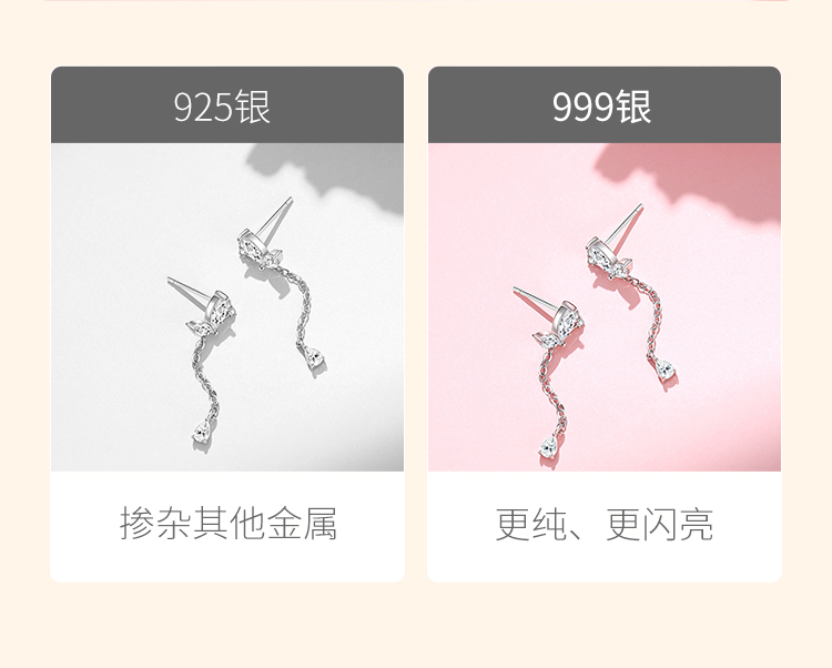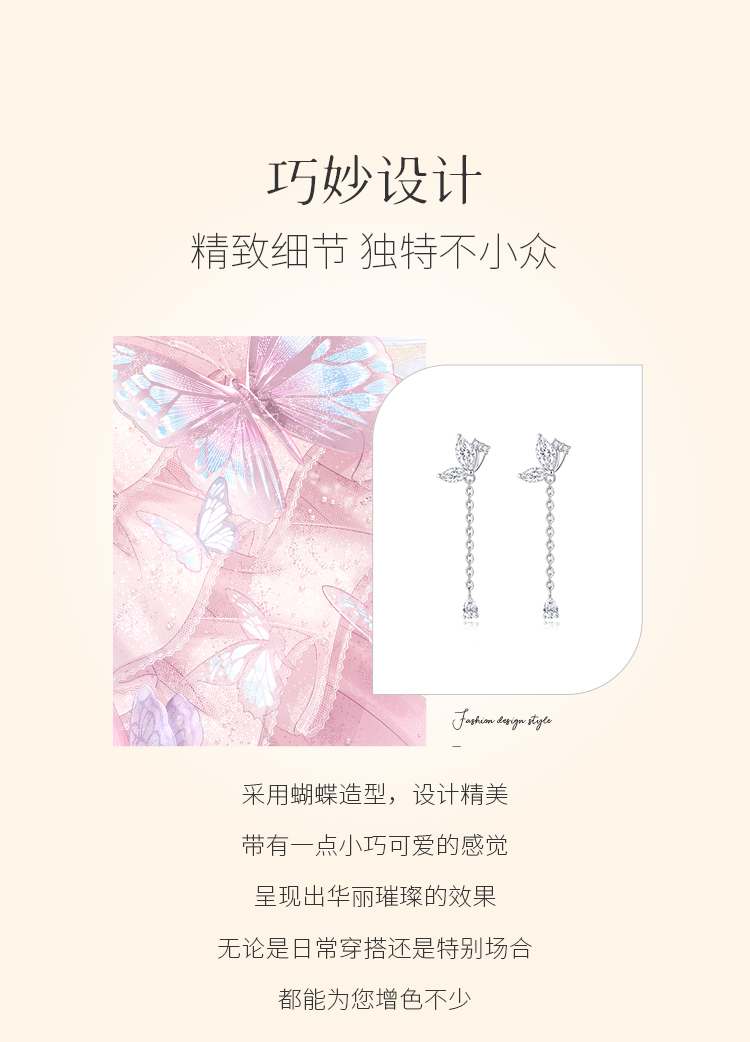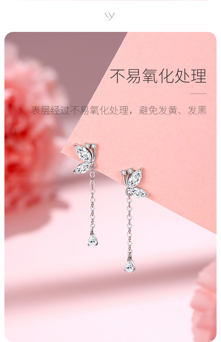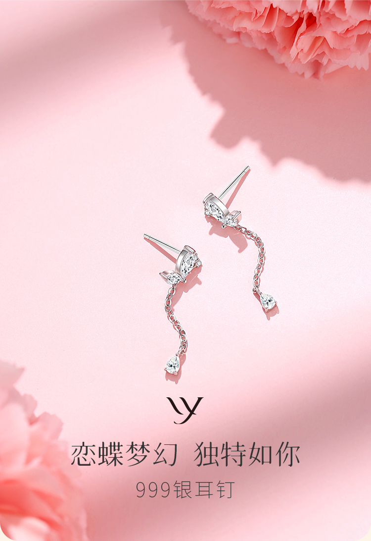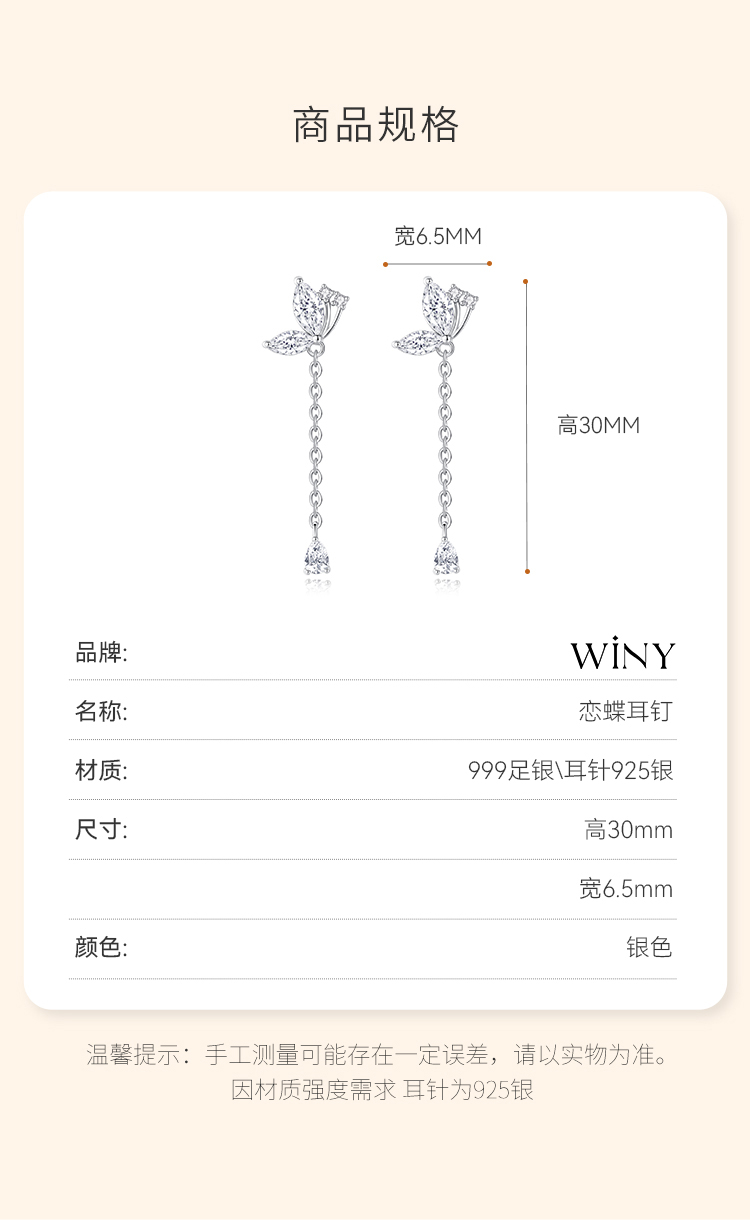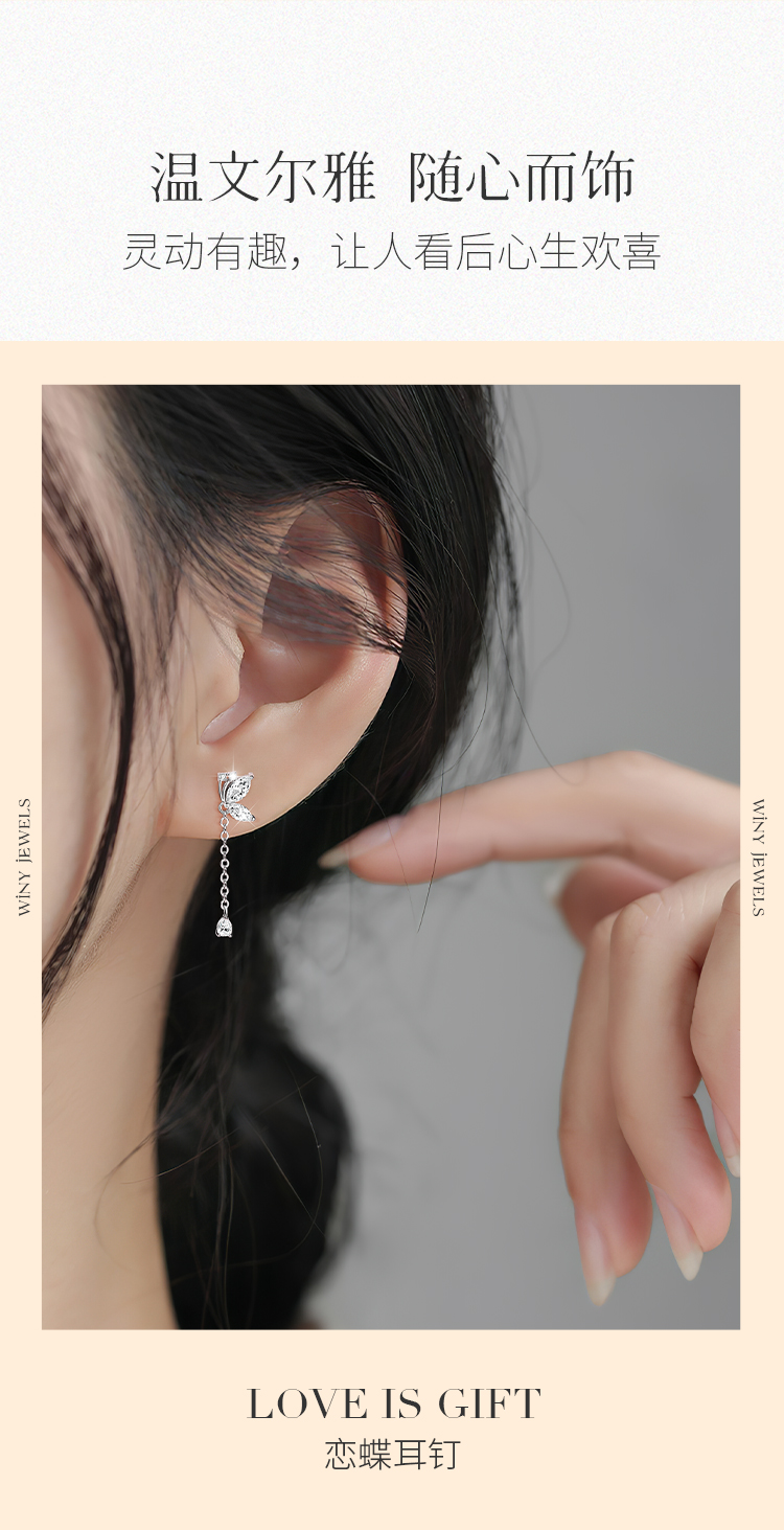 Winy 足银999耳针s925恋蝶耳钉配证书送女友闺蜜节日生日礼物
