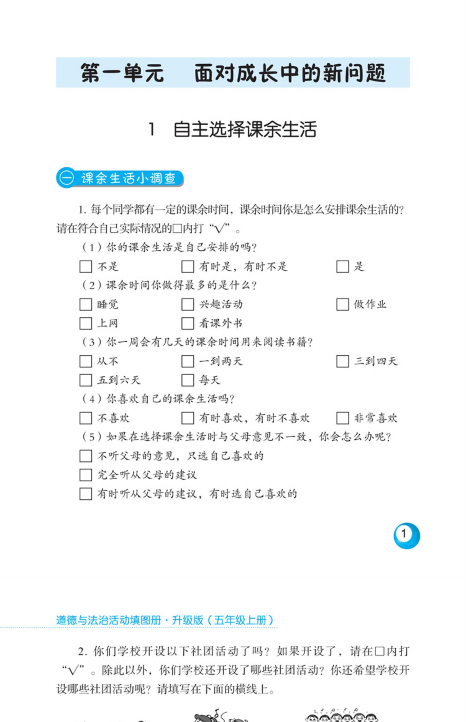 2025年秋 道德与法治 活动填图册 五年级上册 5上 升级版 人教版 统编版 含参考答案 江苏凤凰教育出版社