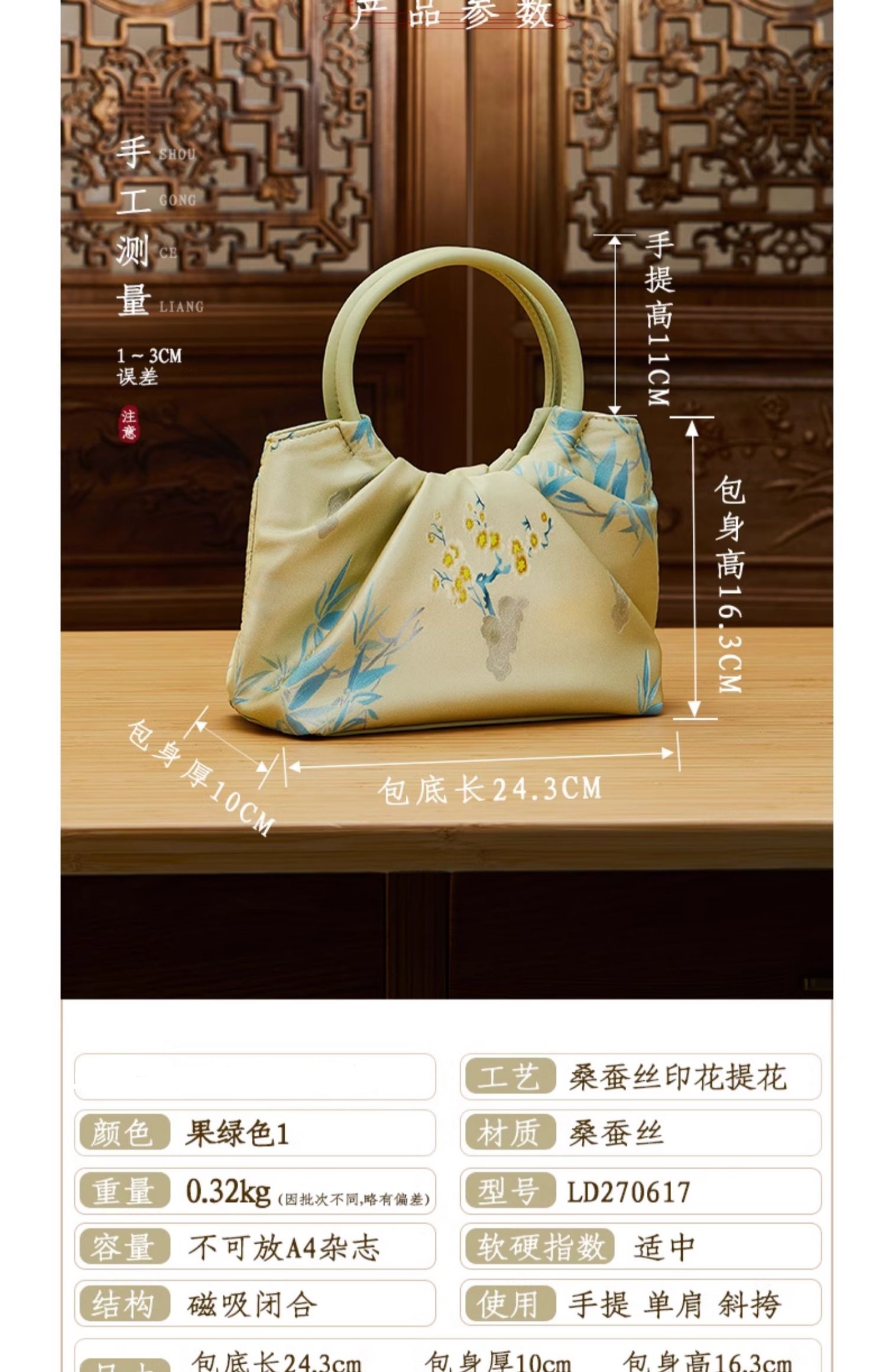 新中式国风非遗香云纱,印花提花桑蚕丝高端大气单肩手提女包TX-LD270617