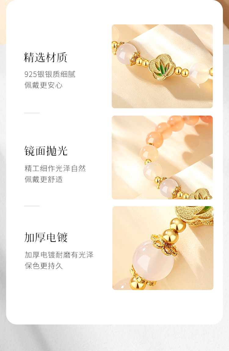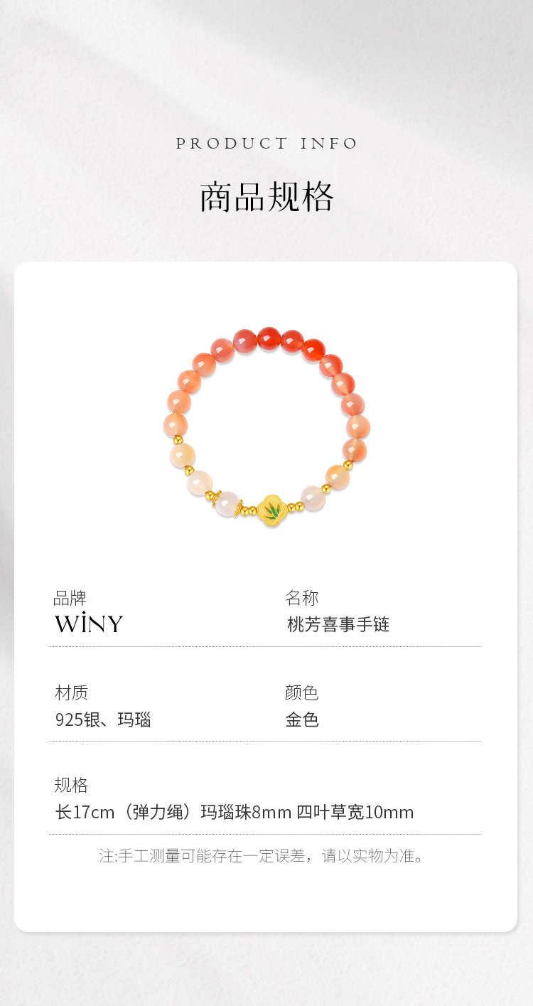 Winy925纯银桃芳喜事手链送女友闺蜜节日生日礼物