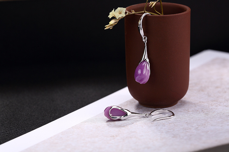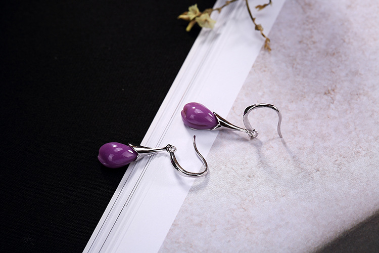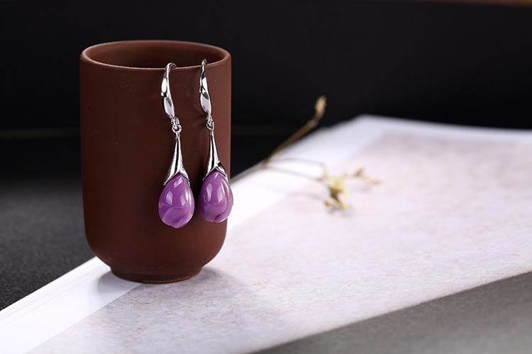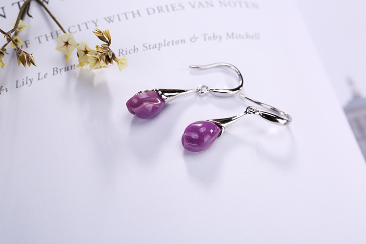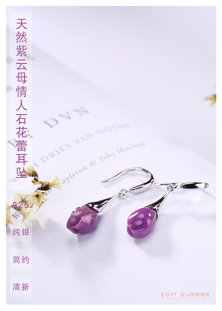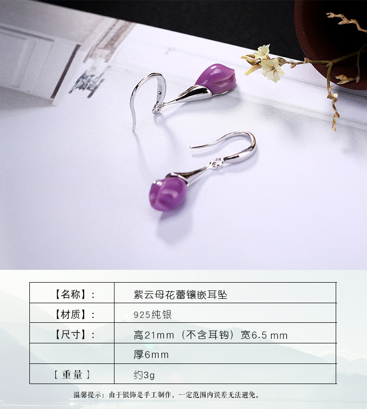 YLY-001紫云母花蕾镶嵌耳坠高档百搭气质优雅女士耳饰