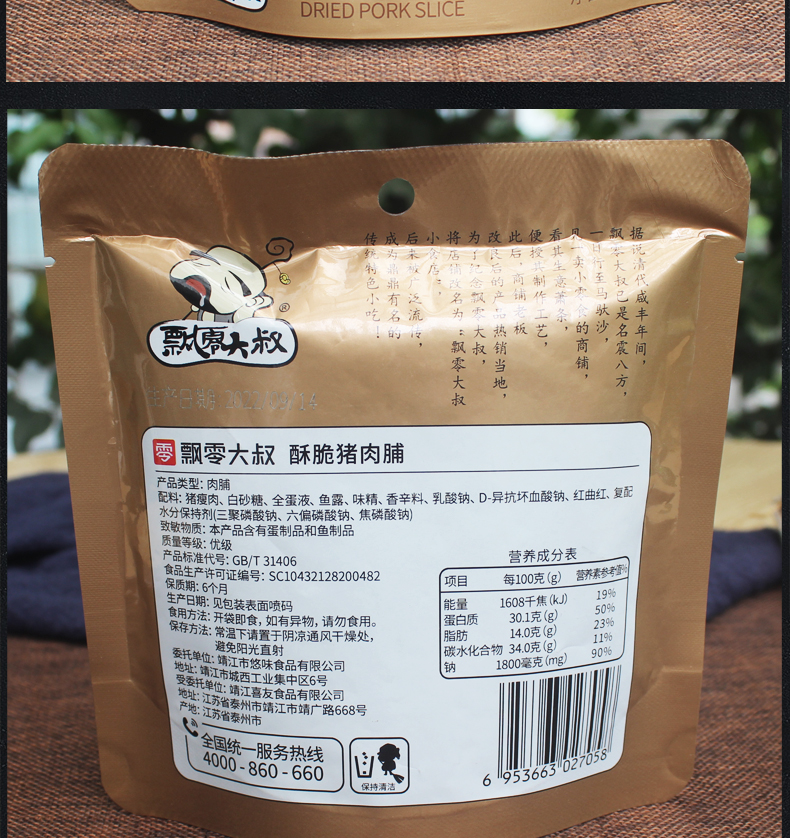 35g飘零大叔酥脆猪肉脯 靖江特产薄脆猪肉干肉片