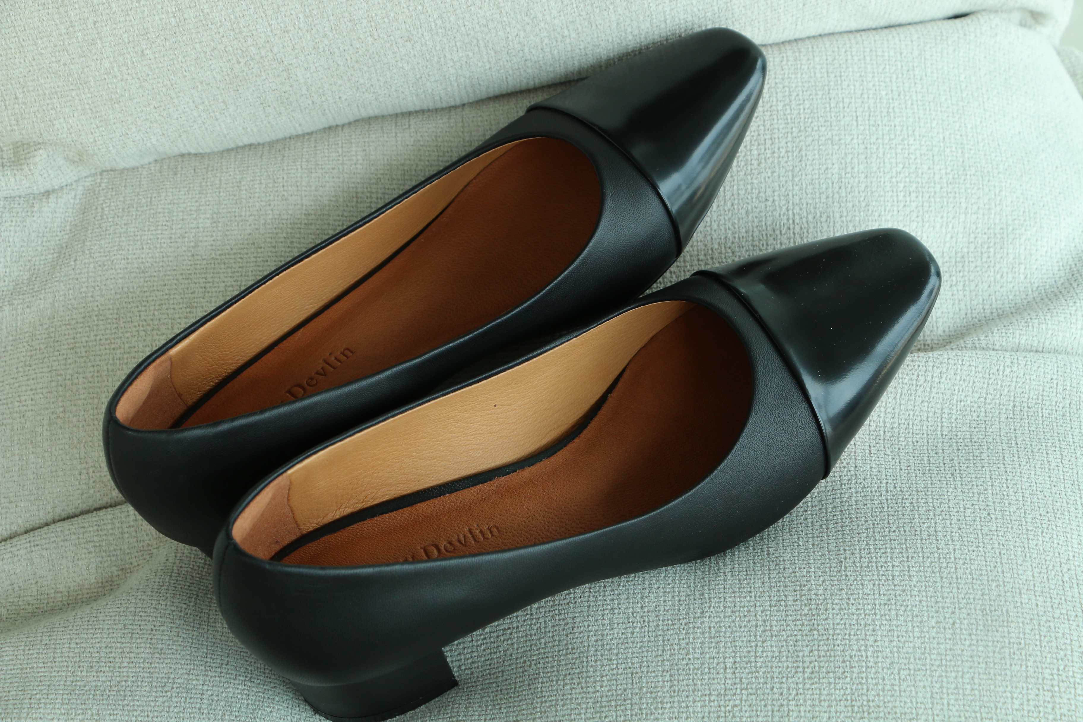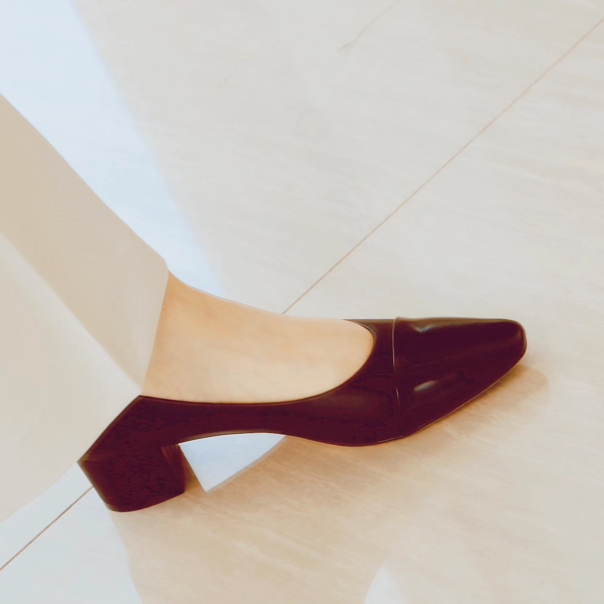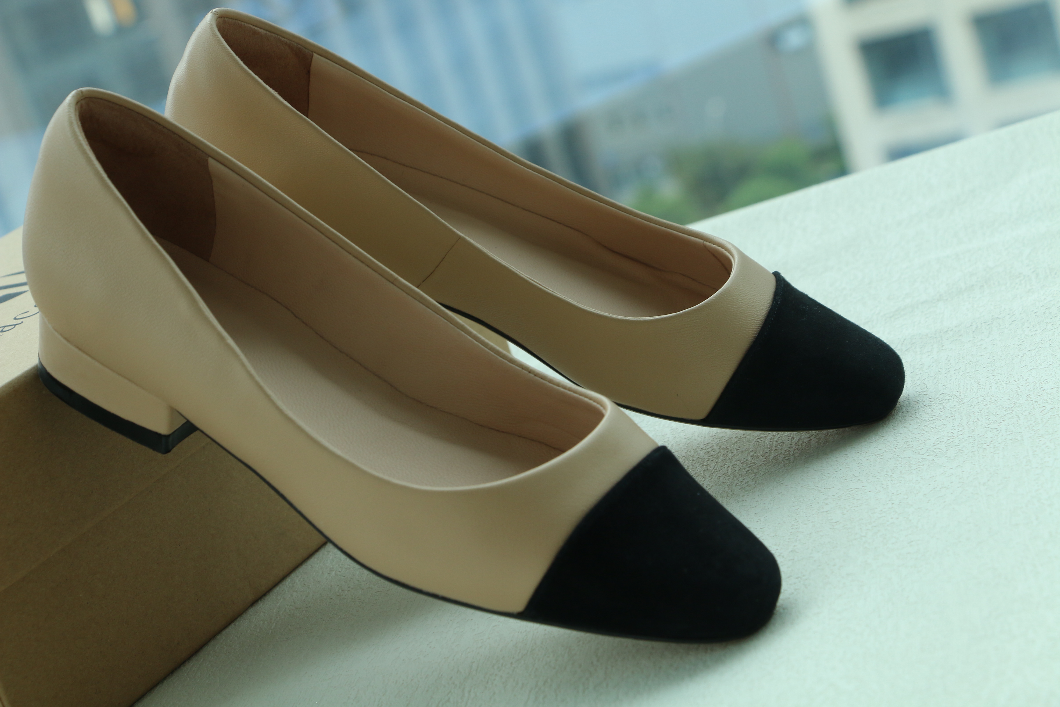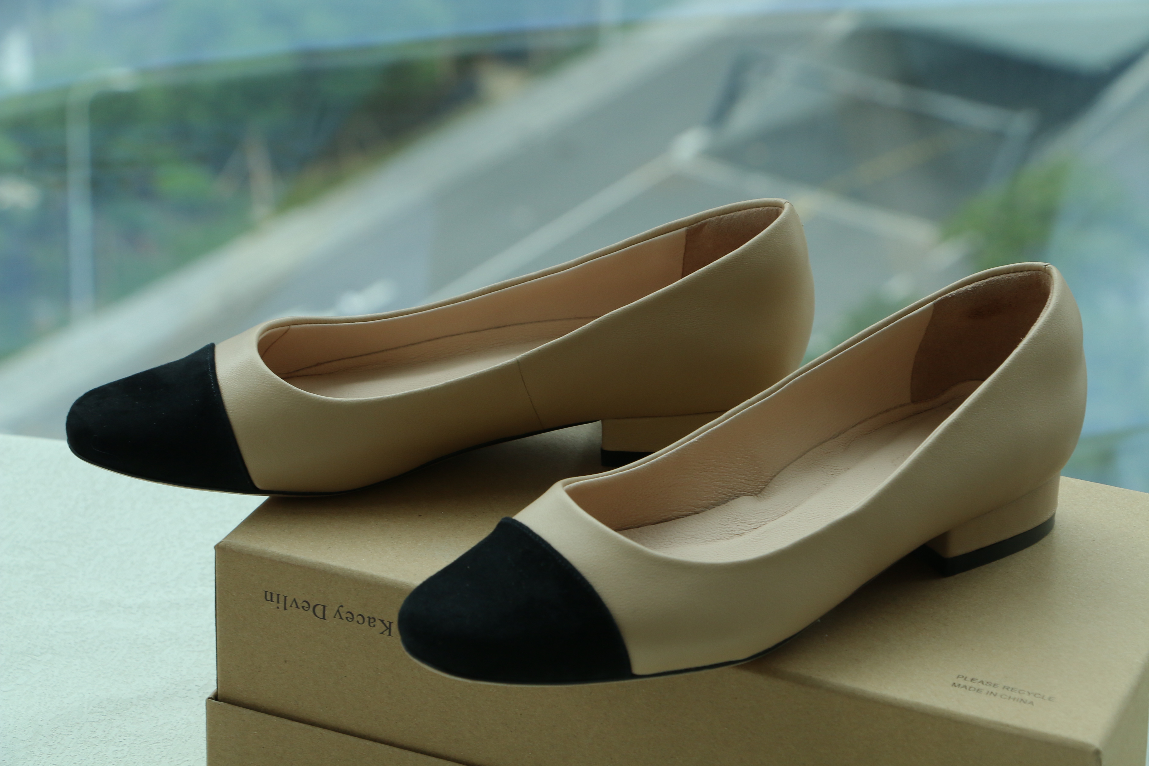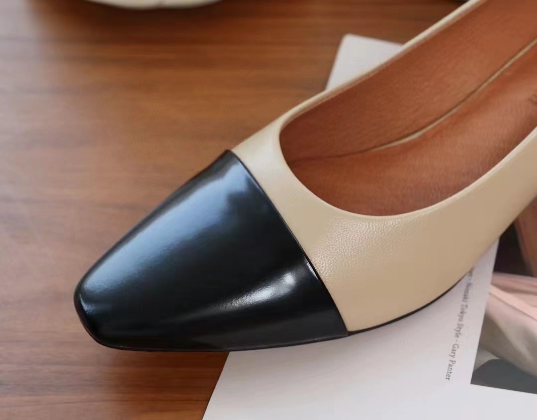 【à perles】小香风拼接头小羊皮2.5cm/4cm粗跟单鞋【清仓,不退不换】