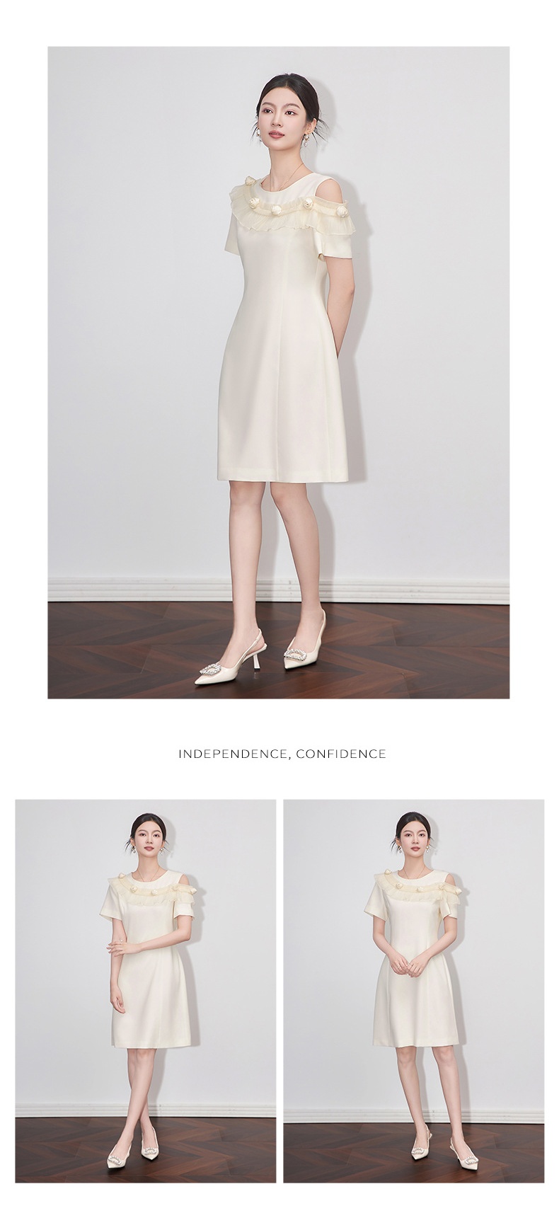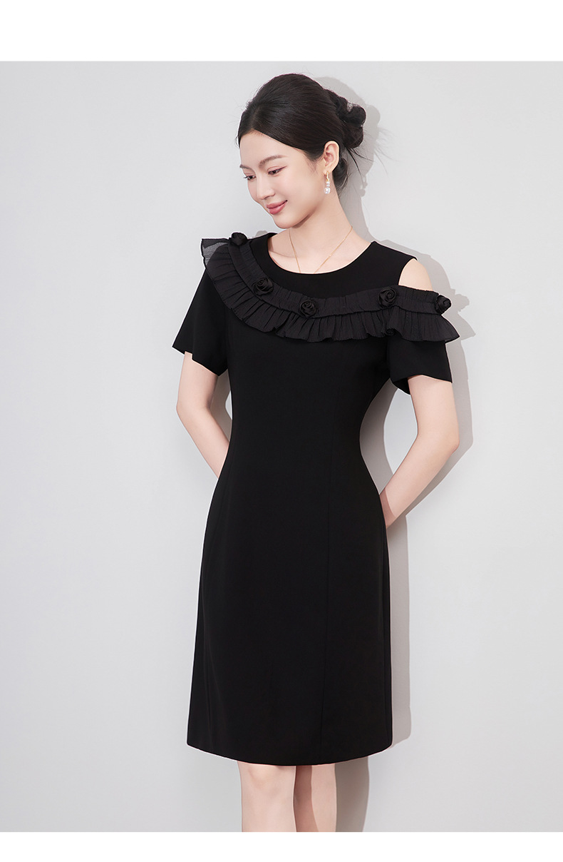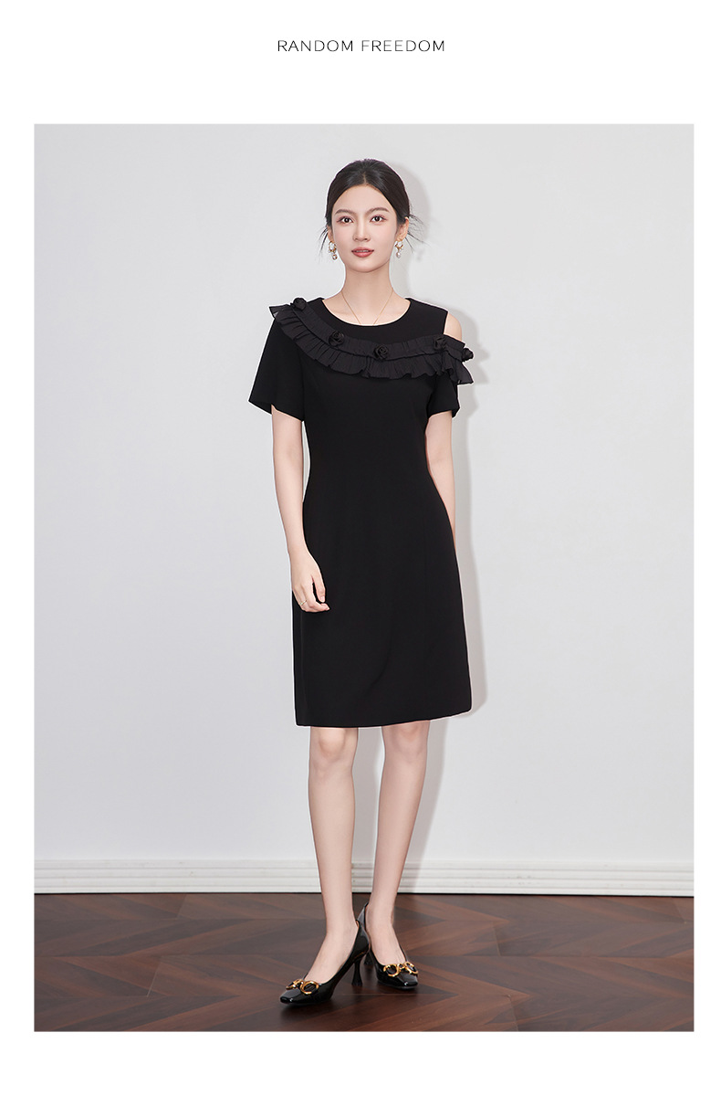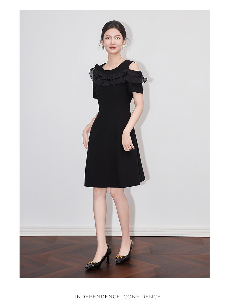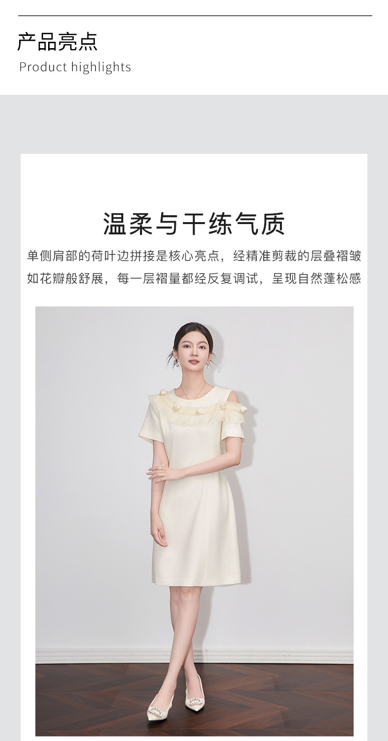 「高货wl」全新升级【铂金会员358/天猫479/差价121】(01301)洛诗琳设计感露肩连衣裙2025夏季新款荷叶边收腰显瘦A字裙