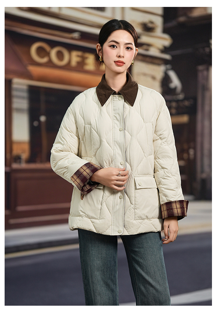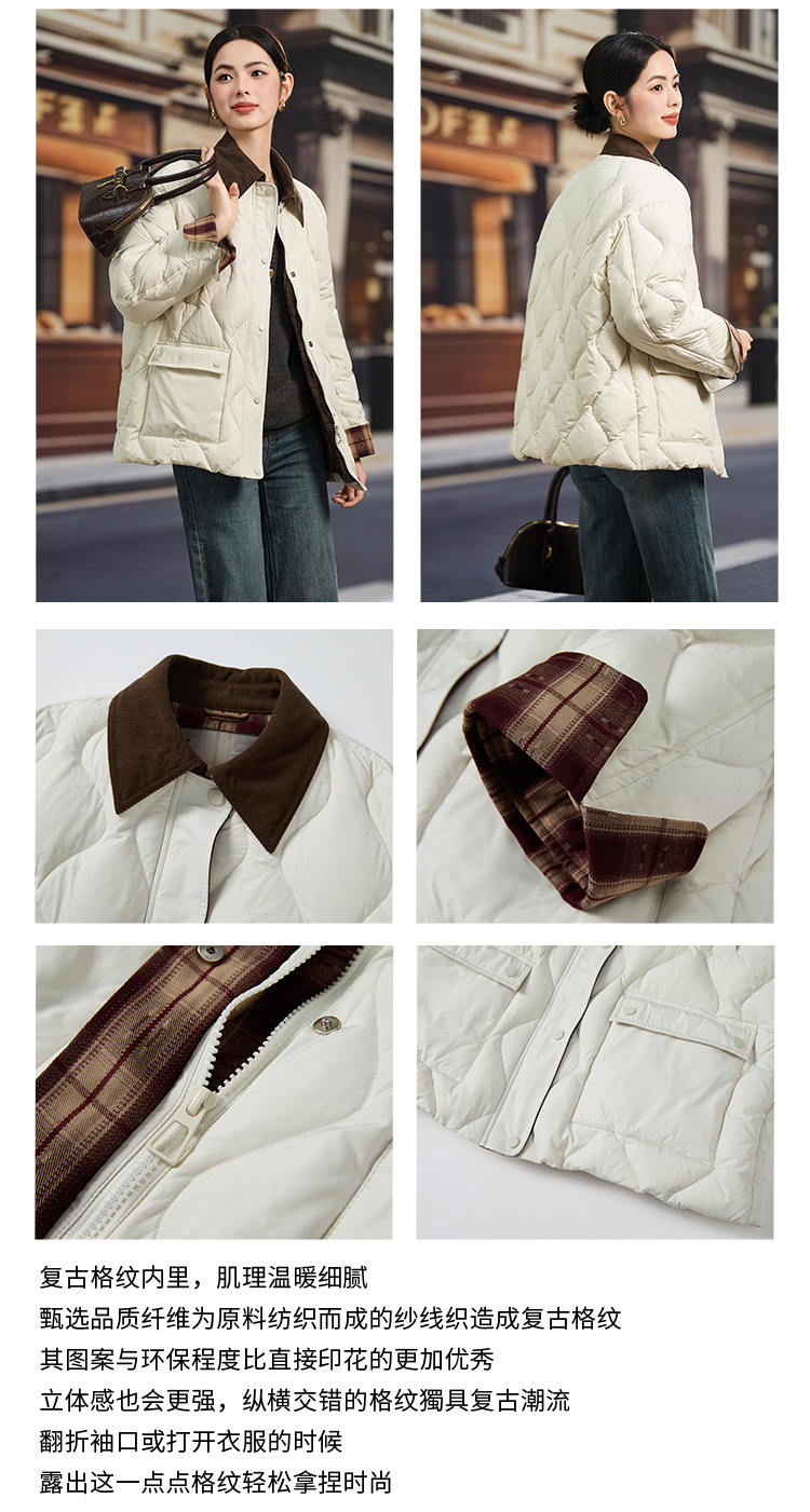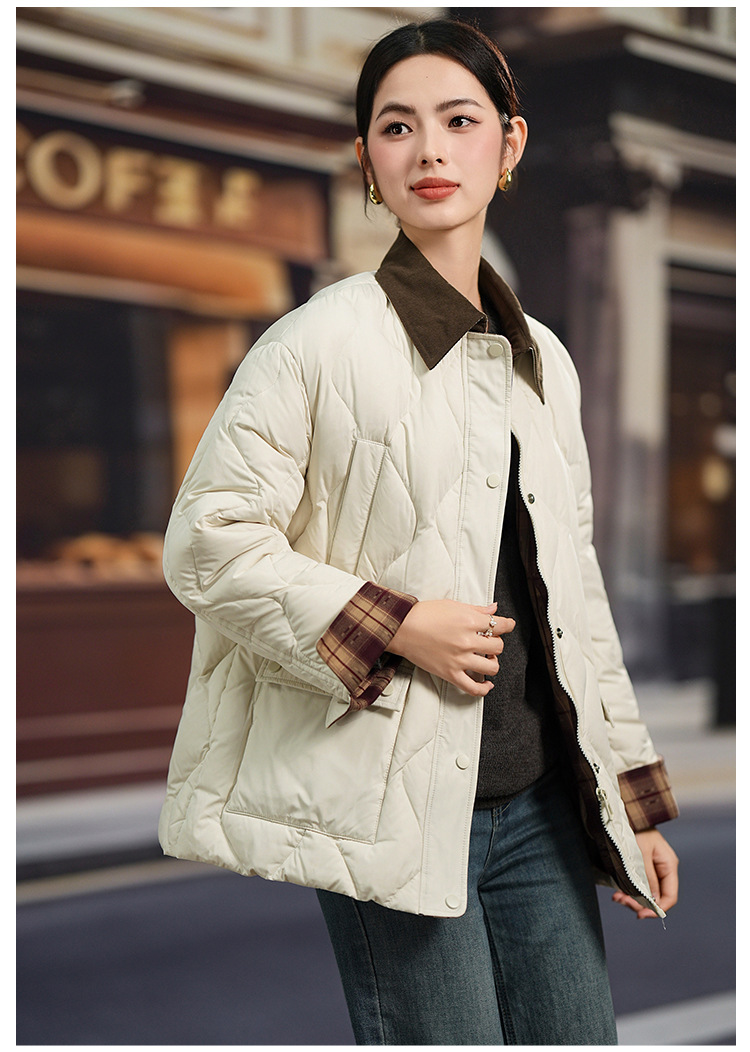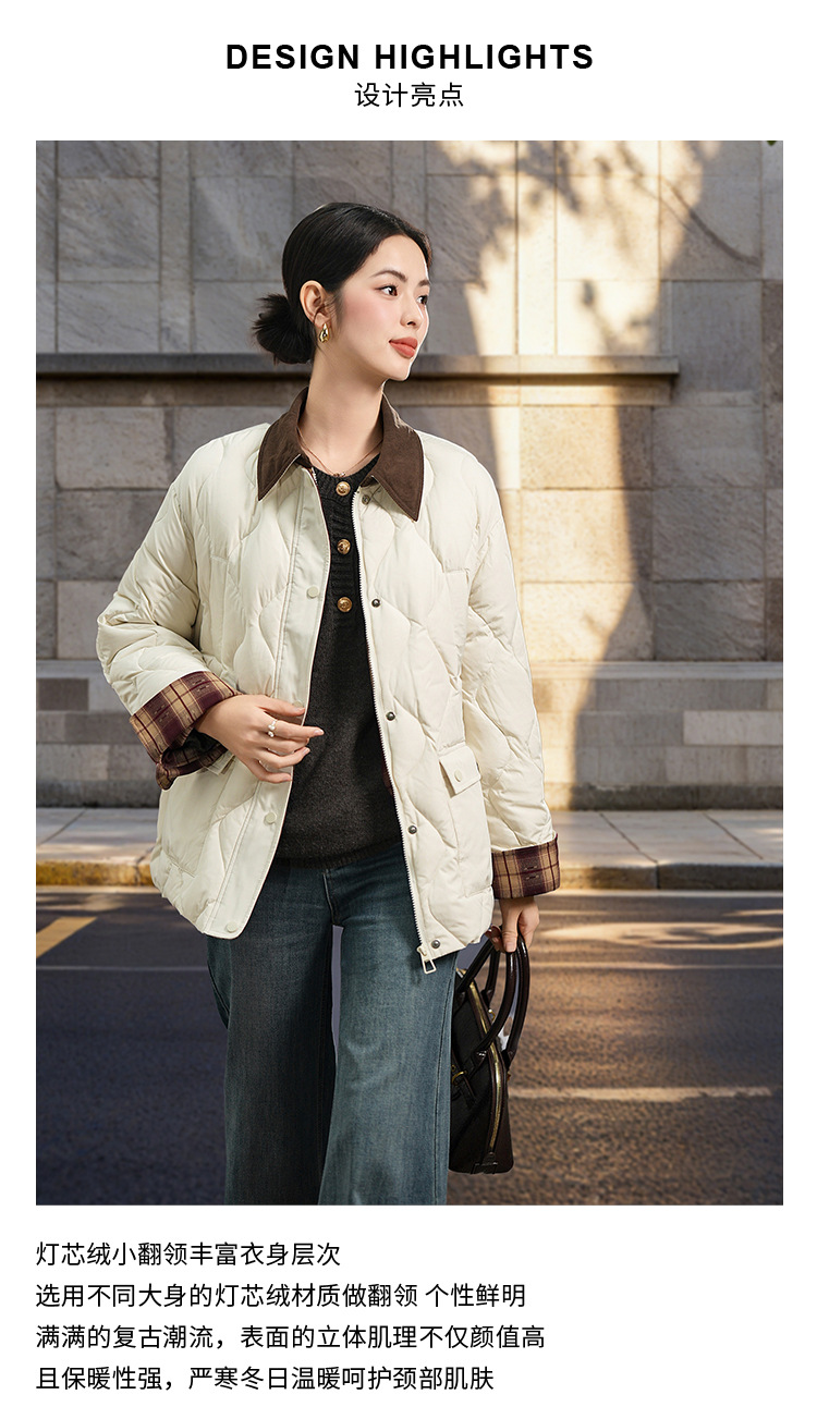 「高货kbnq」全新升级【铂金会员735/天猫999/差价264】(70642)洛诗琳灯芯绒菱格90白鸭绒羽绒服2025冬季保暖外套女