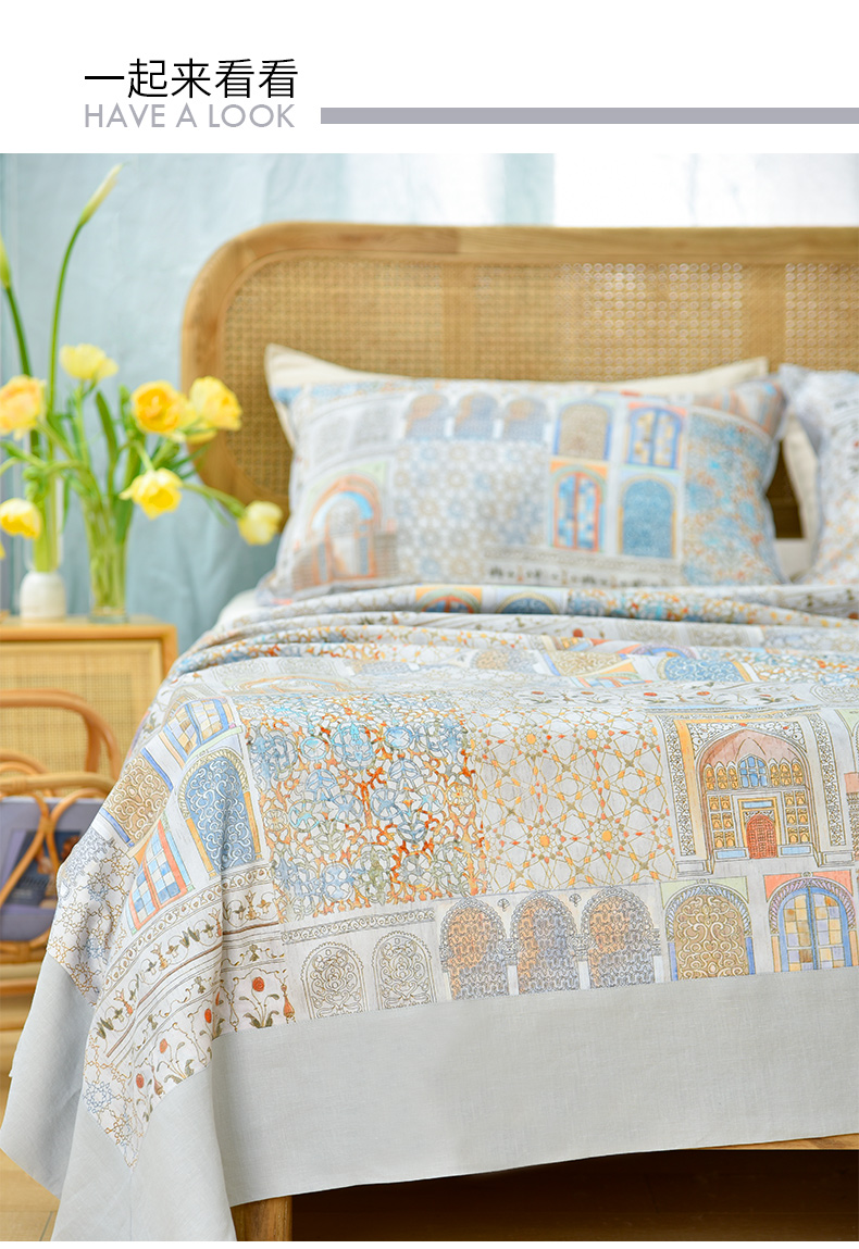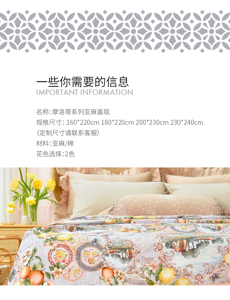 摩洛哥系列亚麻盖毯夏季北欧单双人凉被
