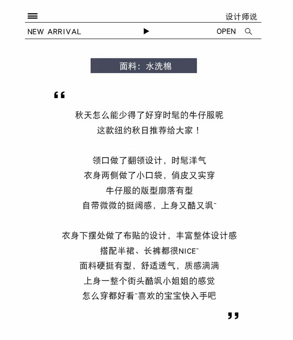 【诗铭洛可】W904牛仔外套超软料水洗牛仔B20-2