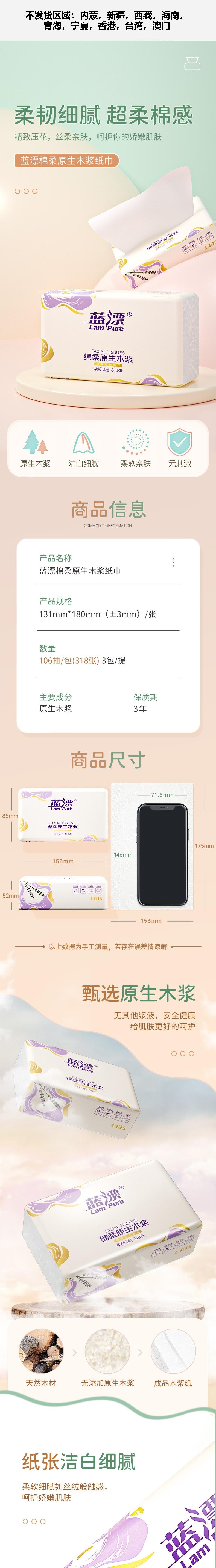 蓝漂 幽兰系列抽纸318张3包一提装 6922454360148-1
