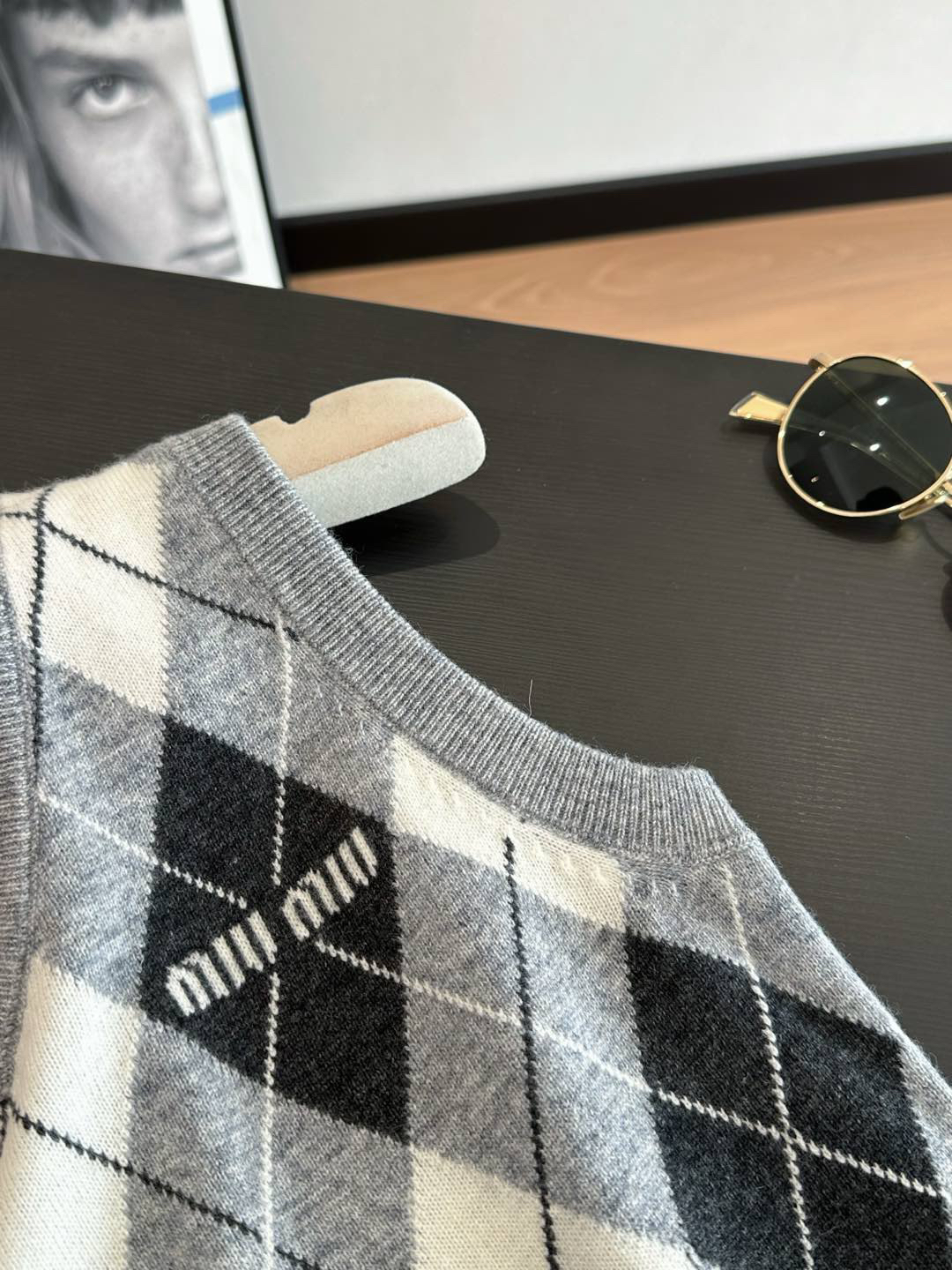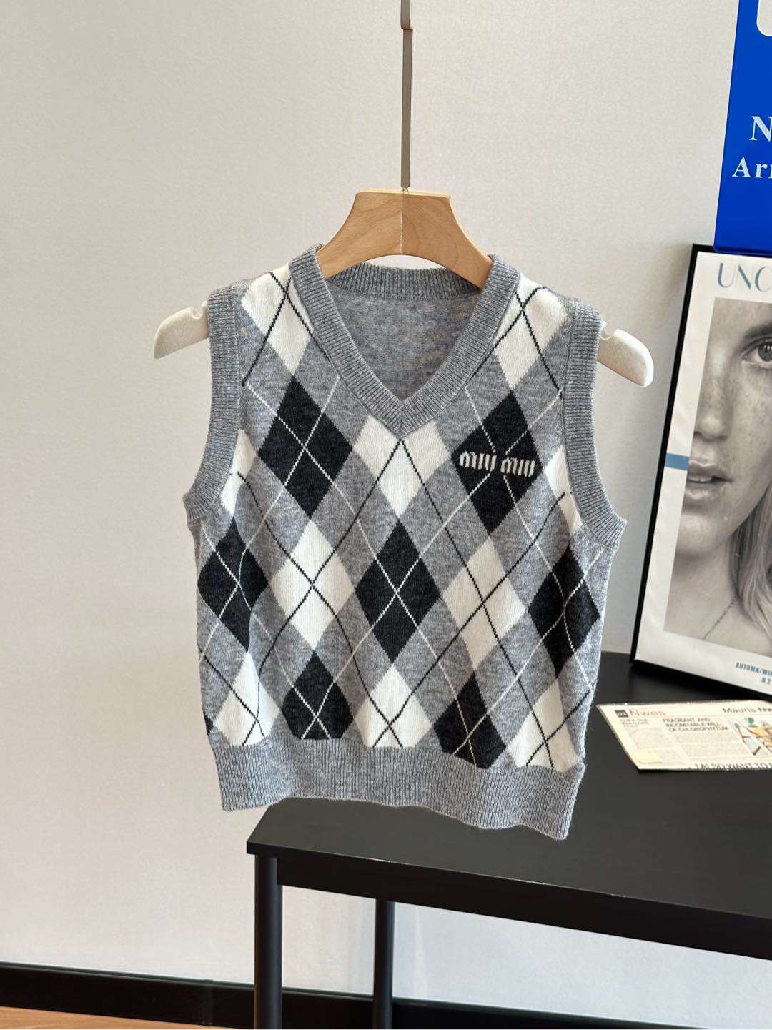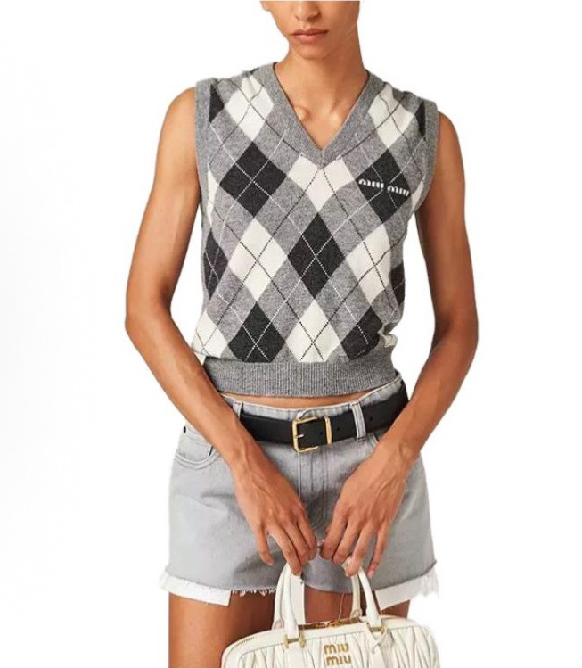 🔺Miu家秀款字母logo菱格羊毛马夹背心