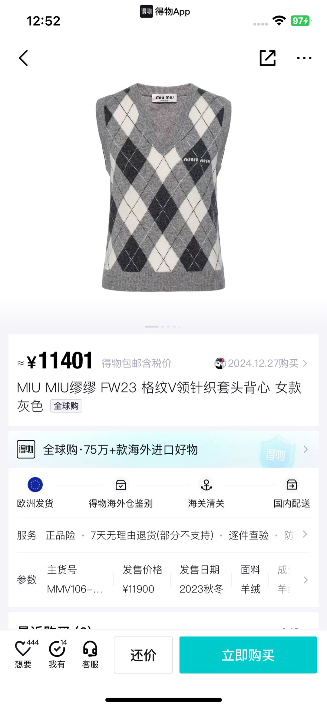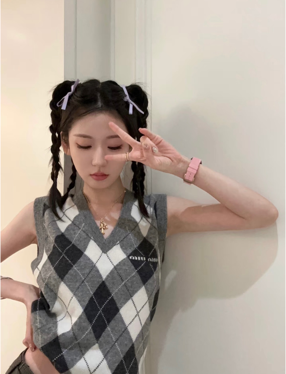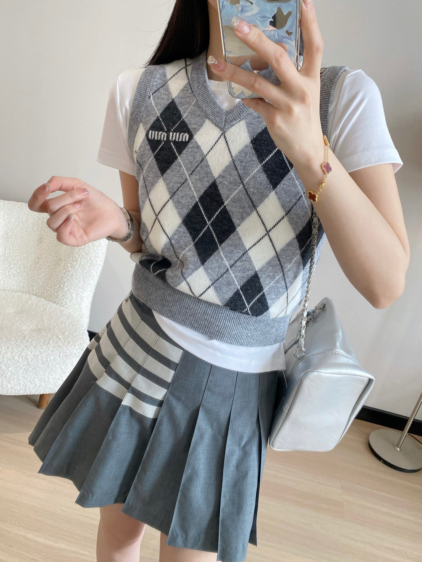 🔺Miu家秀款字母logo菱格羊毛马夹背心