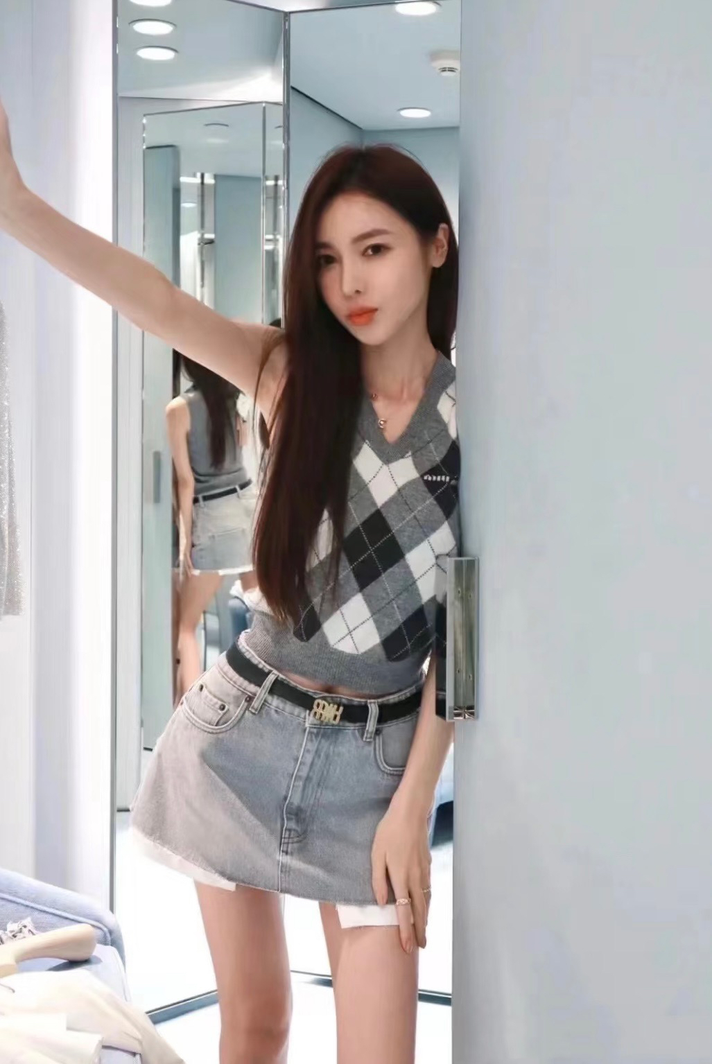 模特166cm 105斤试穿S码小了一点,高个子直接拍大!!搭配各种牛仔裤或者短裙 灰色半身裙都好看😍